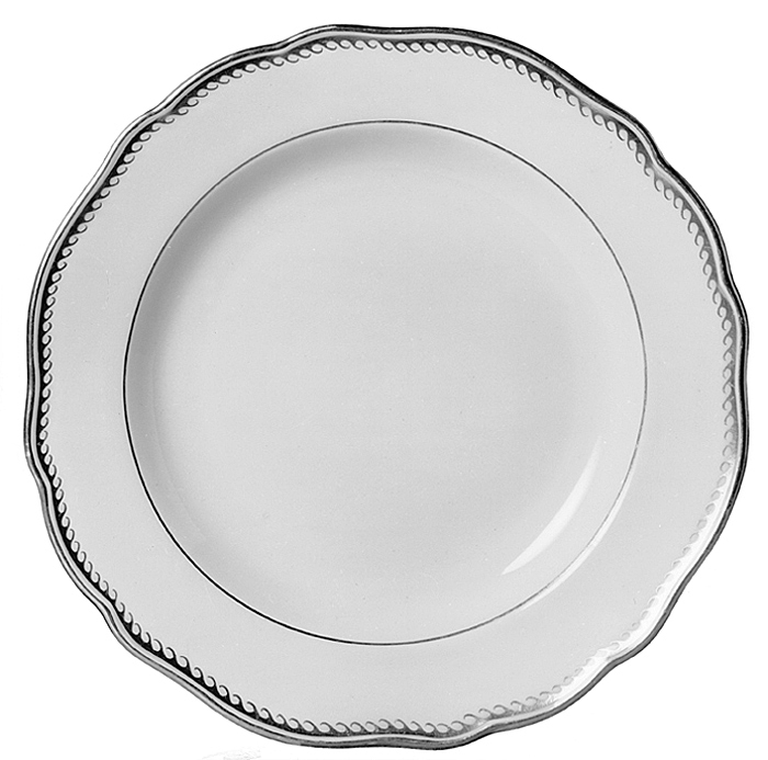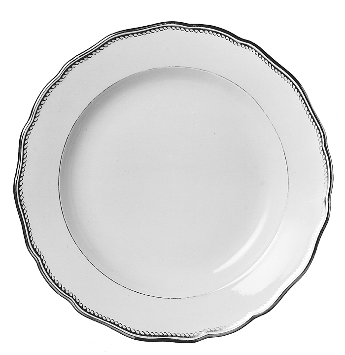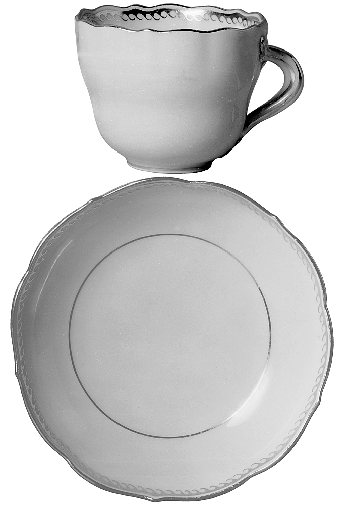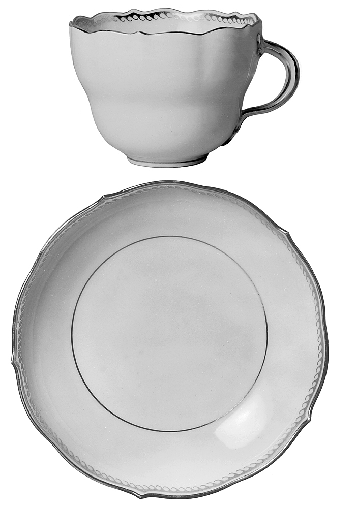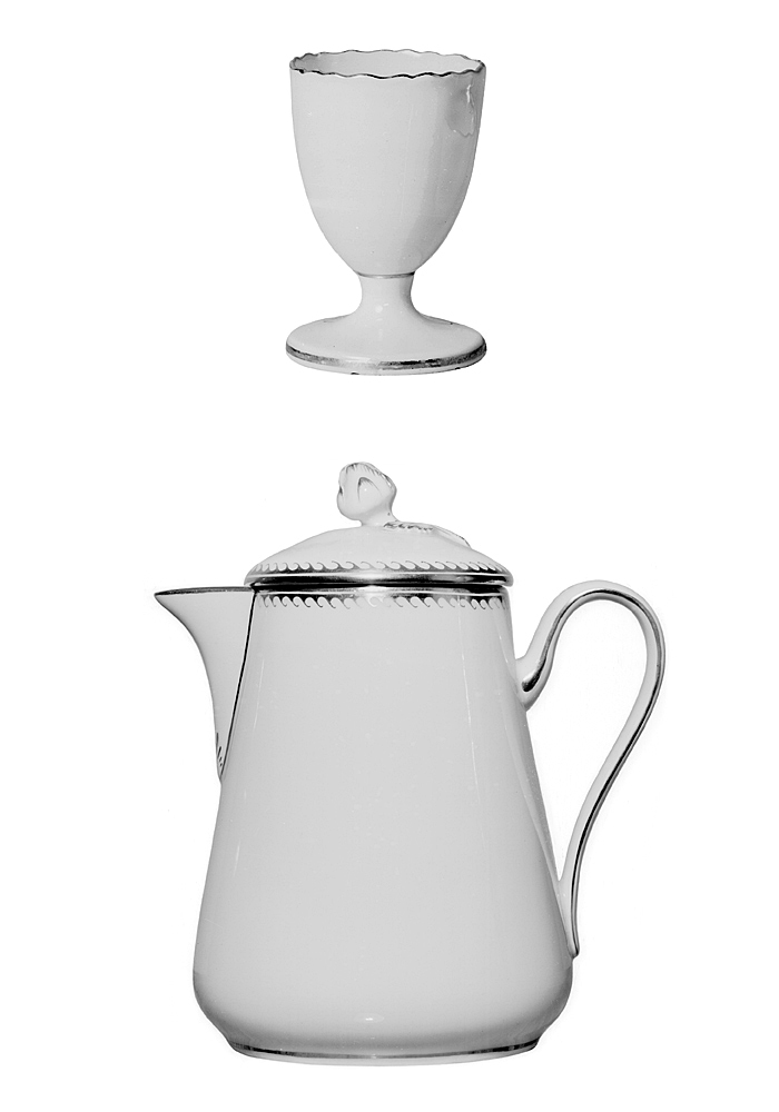 SERVIS ("Vardagsservisen"). Av fältspatäkta porslin. Bestående av 48 flata tallrikar, 18 djupa tallrikar, 18 desserttallrikar, 36 assietter, 18 äggkoppar, 3 varmvattenkannor med lock, 18 kaffekoppar med fat samt 18 tekoppar med fat. Samtliga tallrikar runda, med plan botten och kälformig kep samt konturerad, snett utstående brätte på fotkant. Varmvattenkannor konisk avsmalnande uppåt, nedtill rundad indragna samt på fotkant. Koppar avsmalnande nedåt i två något vulstiga avsatser samt på fotkant, bräddkanten konturerad i lågt uppskutande uddar. Fat lågt skålformiga, med brädden konturerad som kopparna, på fotkant. Dekor i guld. Tallrikar höjd: 3,1-3,5 cm, diameter: 24,7-25 cm. Djupa tallrikar höjd: 4,5-5 cm, diameter: 23,5-23,5 cm. Desserttallrikar höjd: omkring 2,7 cm, diameter: omkring 21,5 cm. Assietter höjd: 2,5 cm, diameter: omkring 16,5 cm. Äggkoppar höjd: 6,7 cm, diameter:4,5 cm. Vattenkannor höjd: 15,5 cm, diameter: omkring 10 cm. Lock höjd: omkring 4 cm, diameter: omkring 7,1 cm. Kaffekoppar höjd: omkring 5 cm, diameter 6,5 cm, fat: 2,5 cm diameter: 10,7 cm. Tekoppar höjd: omkring 6,3 cm, diameter: omkring 8,6 cm, fat: 3,1 cm, diameter: 13,8 cm. Tysk tillverkning Meissen 1912-1929, Die staatliche Porzellanmanufaktur. Inköpt efter beställning av Walther och Wilhelmina von Hallwyl hos Königlich Sächsische Porzellan-Niederlage 1913. Kompletterad 1914 och 1929.