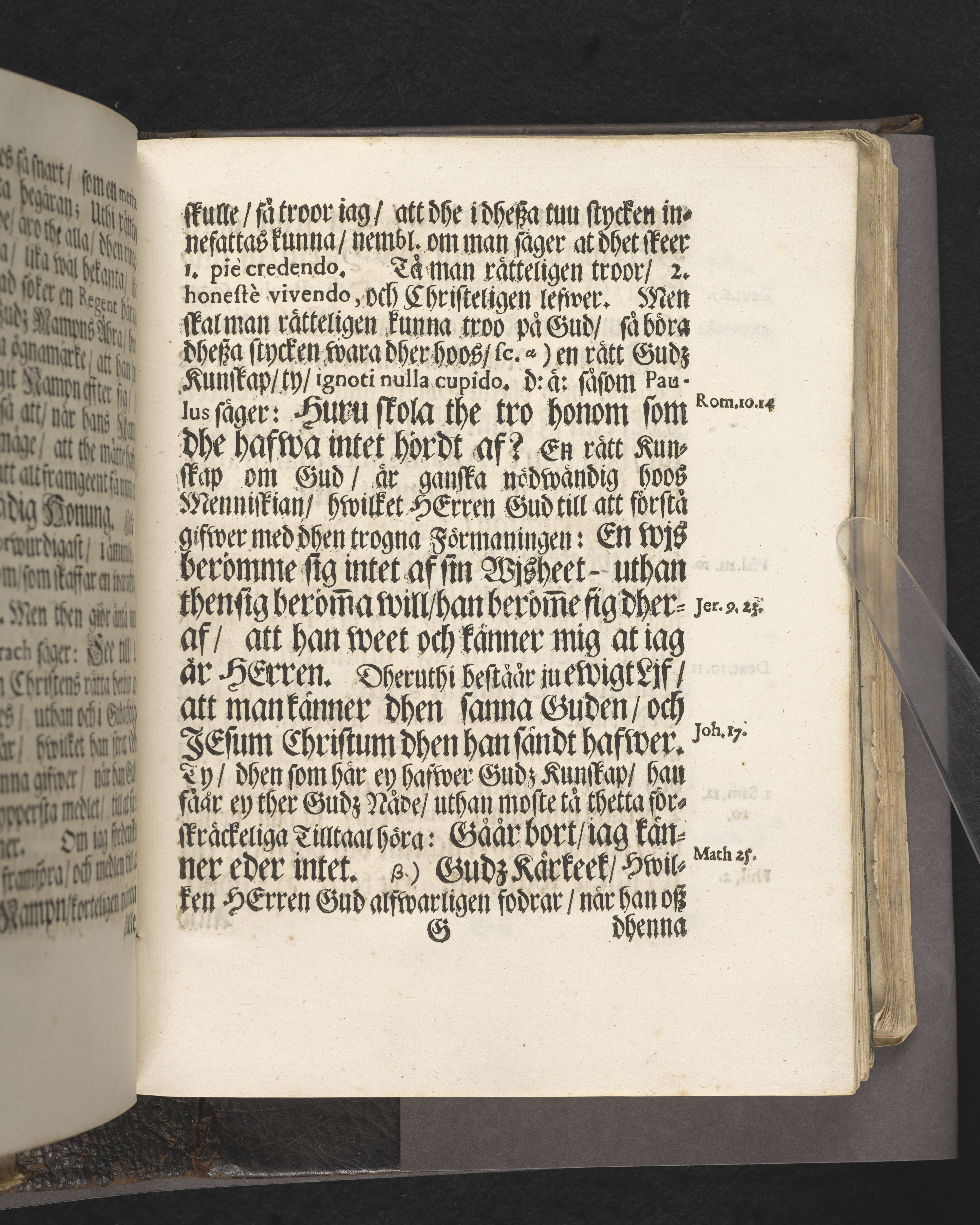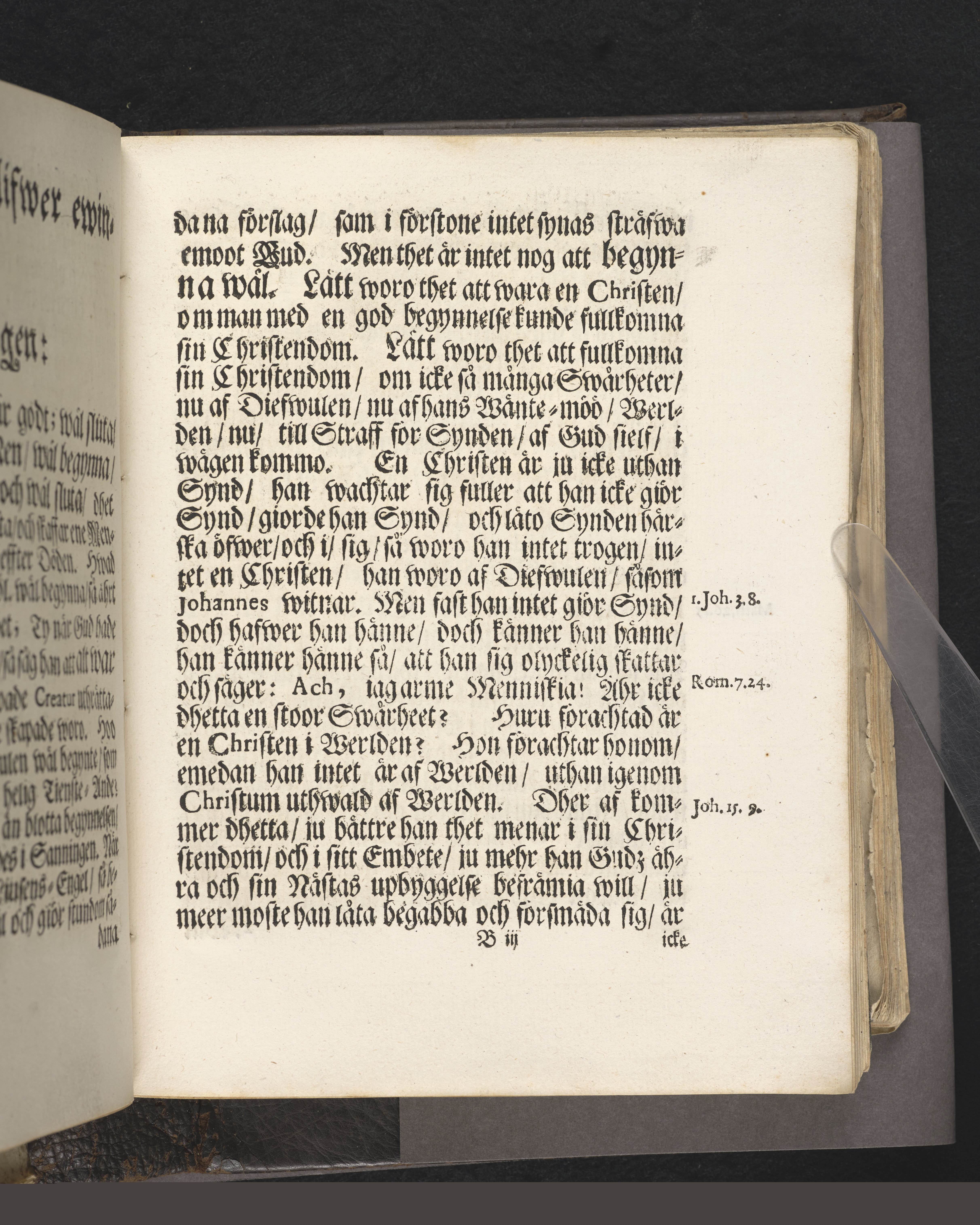 Band av svart kalvskinn dekorerat med blindtryck. Fast rygg. Inlagan består av enskilda skrifter som tillsammans häftats på tre bind, fast rygg. Variationer i papperskvalitet och storlek.11 skrifter samlade i en volym.