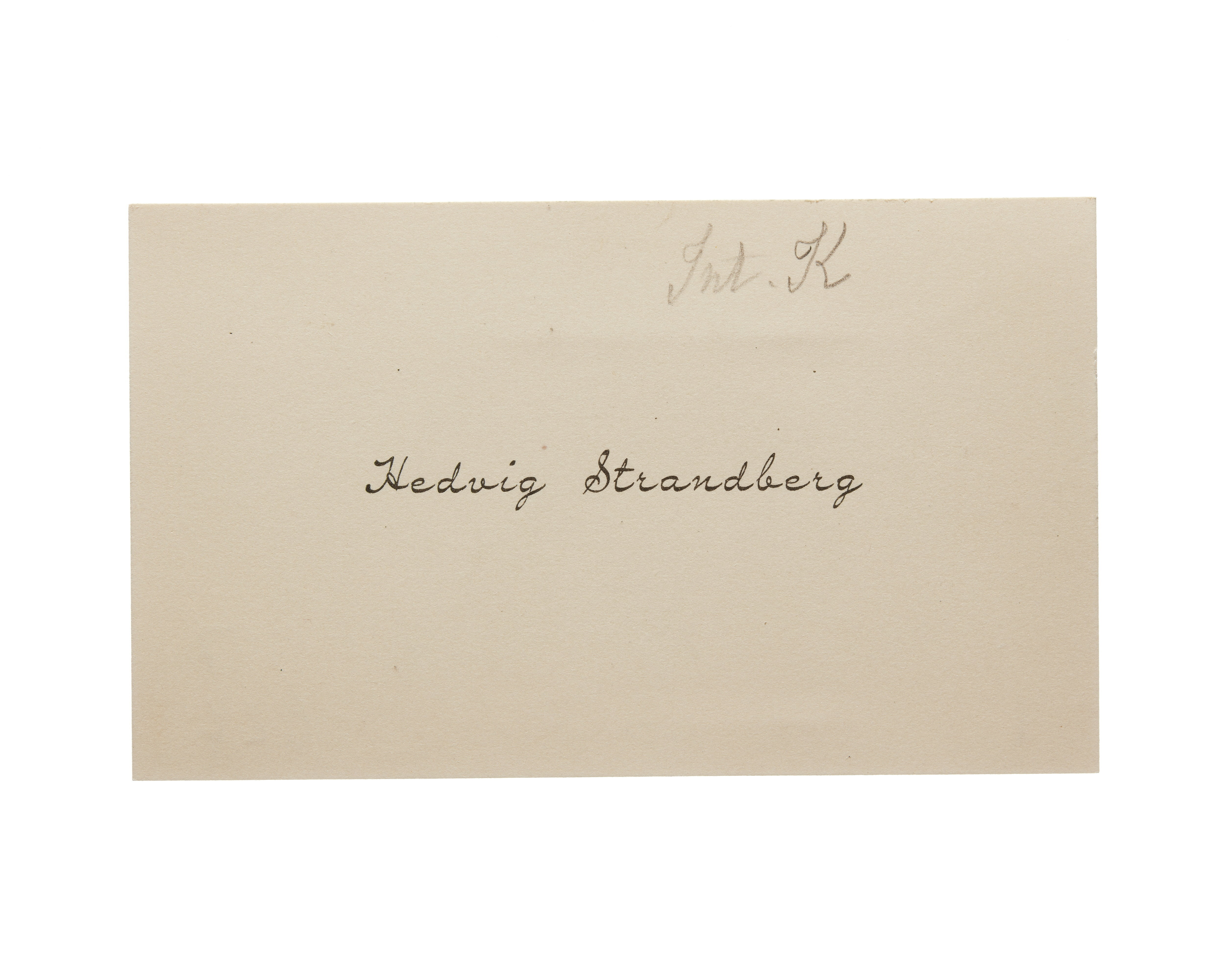 Ett visitkort från målarinna Hedvig Strandberg, daterat 1911. Överlämnat i samband med Internationella kvinnoförbundets kongress i Stockholm 1911.