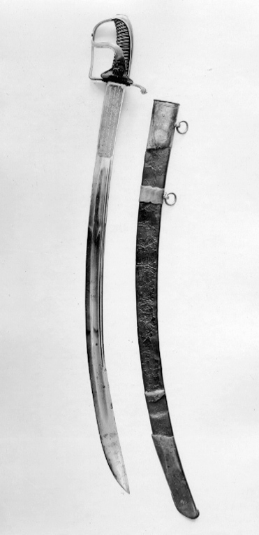Balja av svärtat skinn med beslag av förgylld mässing. Munbleck och mellanband med koppelringar av stål. Doppsko med släpsko av stål.