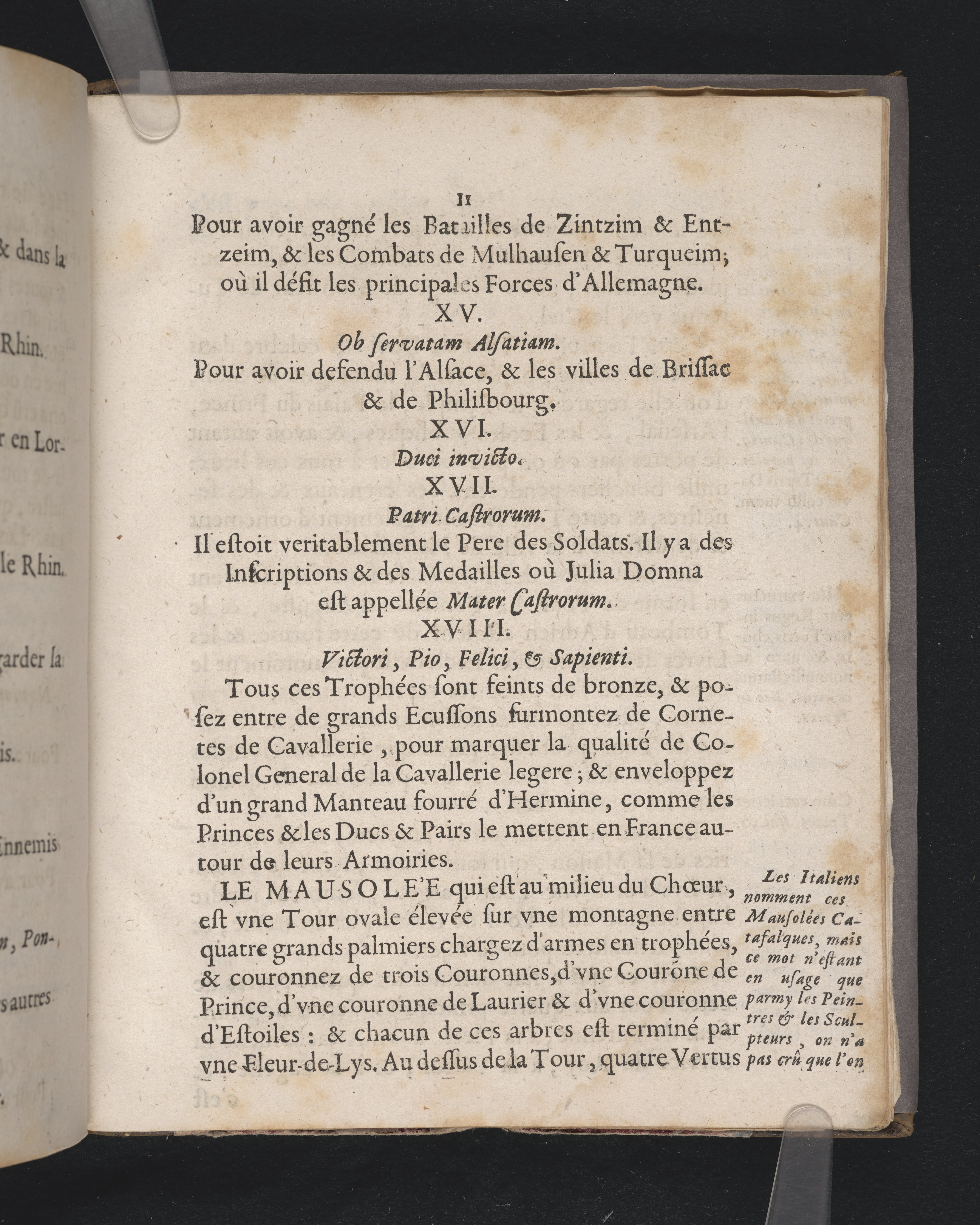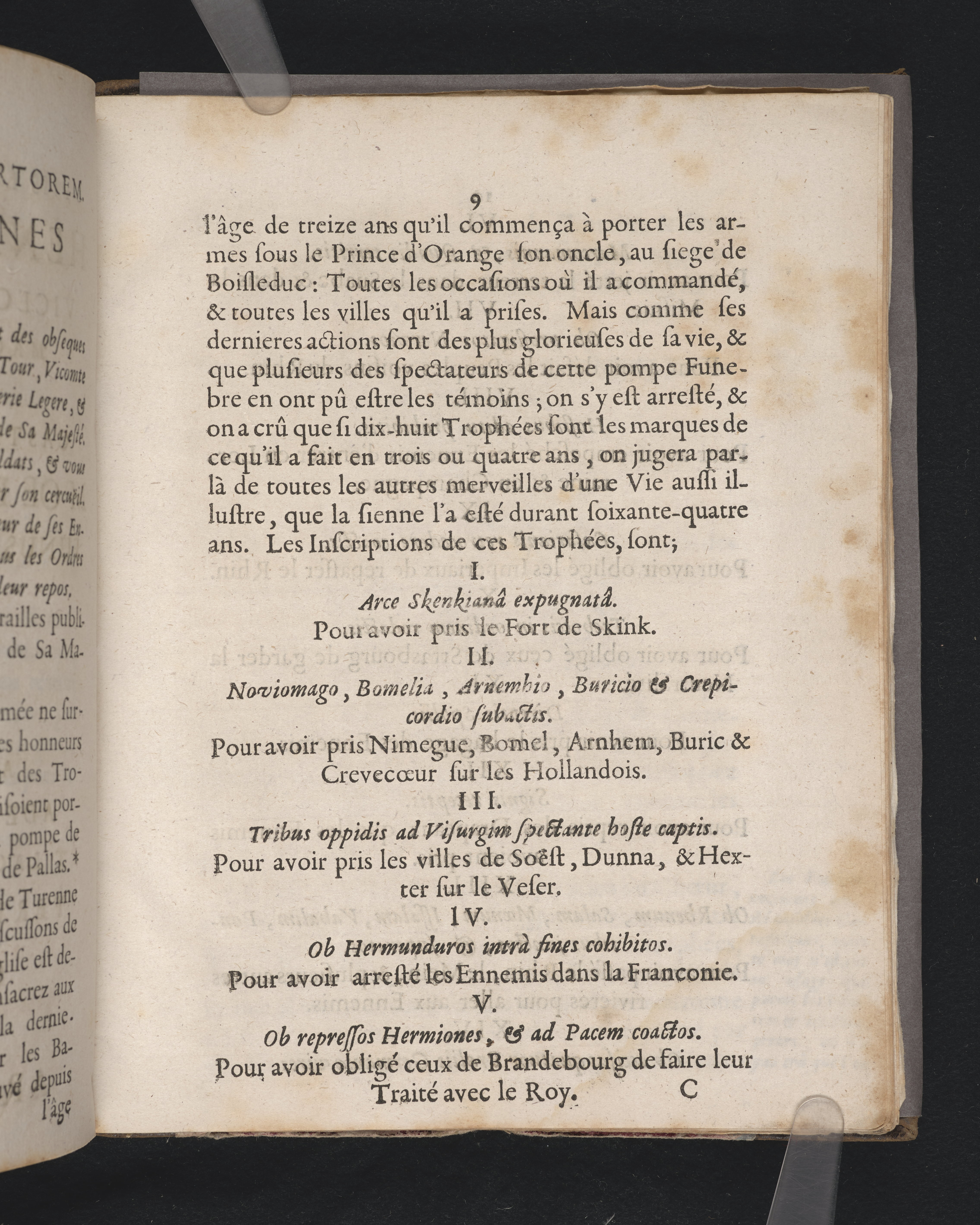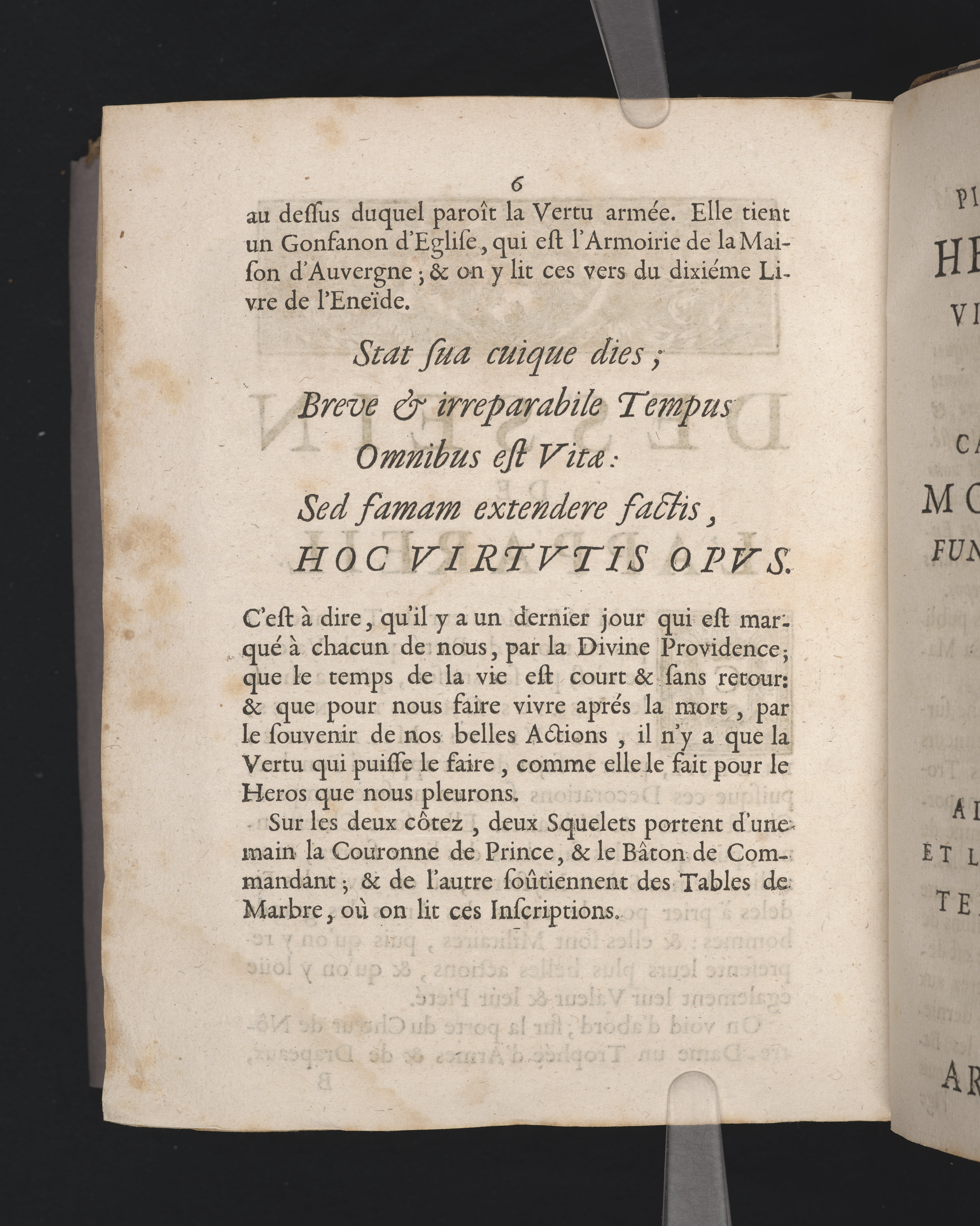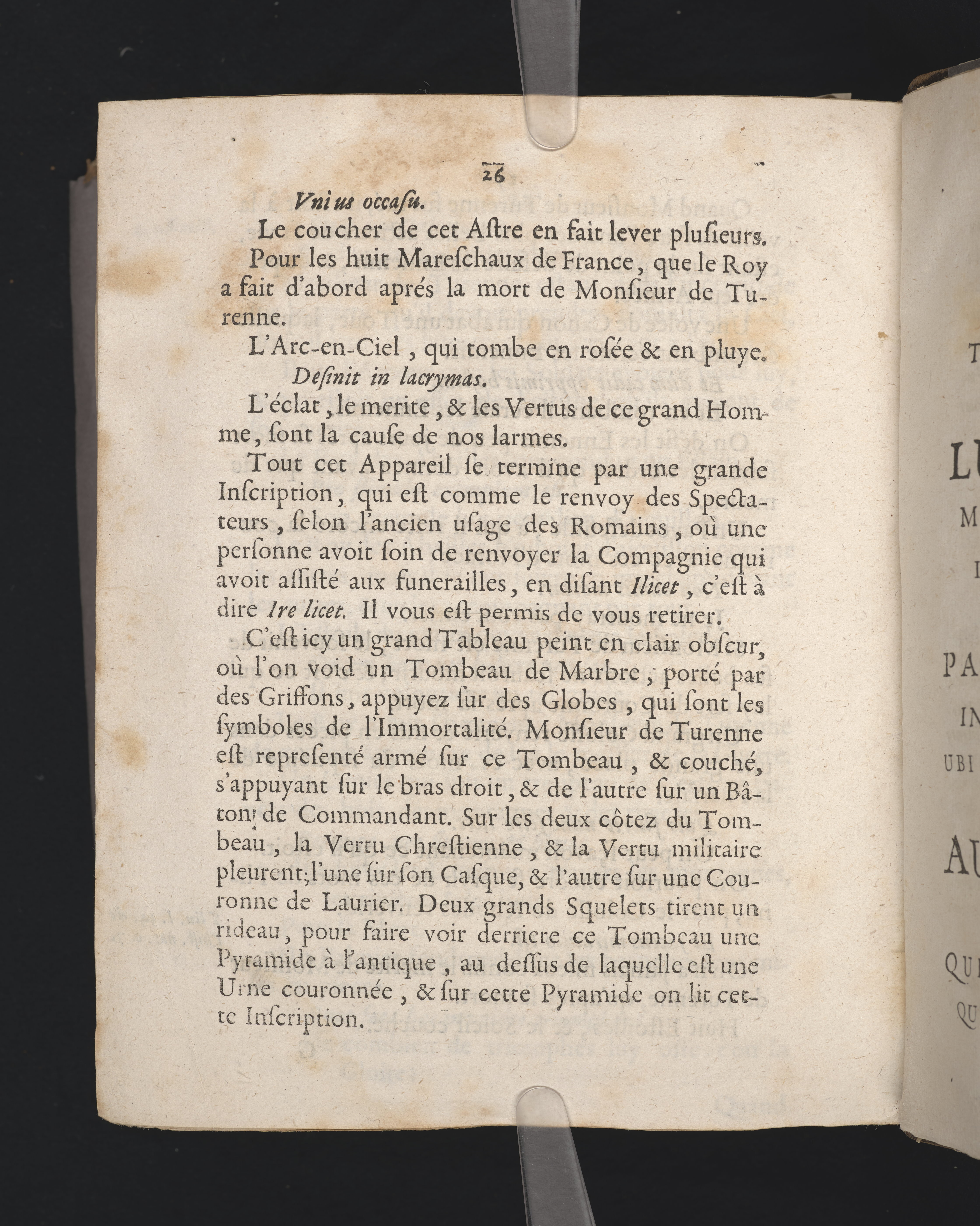 Les vertus chrestiennes et les vertus militaires en deüil. Dessein de l'appareil funebre ... dans l'eglise de Nostre-Dame de Paris, le neuviéme septembre 1675. Povr la ceremonie des obseqves de ... Henry de la Tour d'Auvergne, vicomte de Turenne ... A Paris, chez Estienne Michallet ... MDCLXXV.