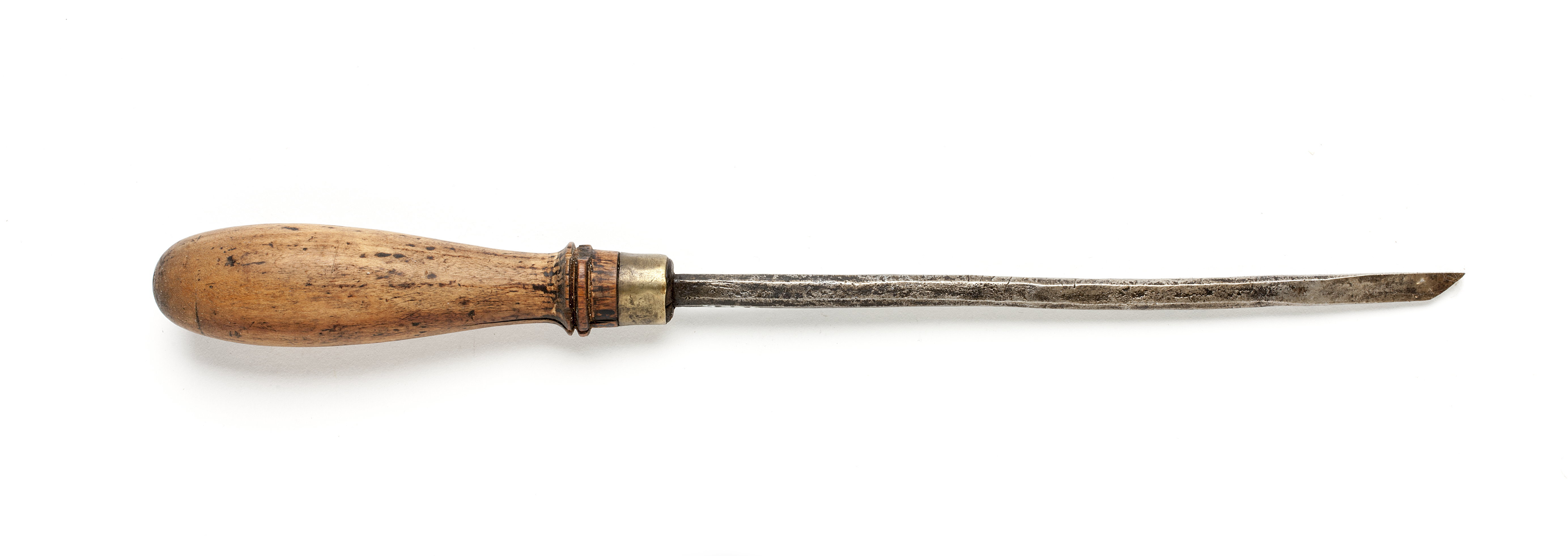 4756:1 stickstål. Grovt smidd klinga med åttsidig genomskärning. Svarvat skaft av lövträ med en vulst nedtill. Mässingsring. 4756:2 stickstål, upprymningsstål? l 175, b 4,2 mm. Klinga med rektangulär genomskärning. Något sned egg.