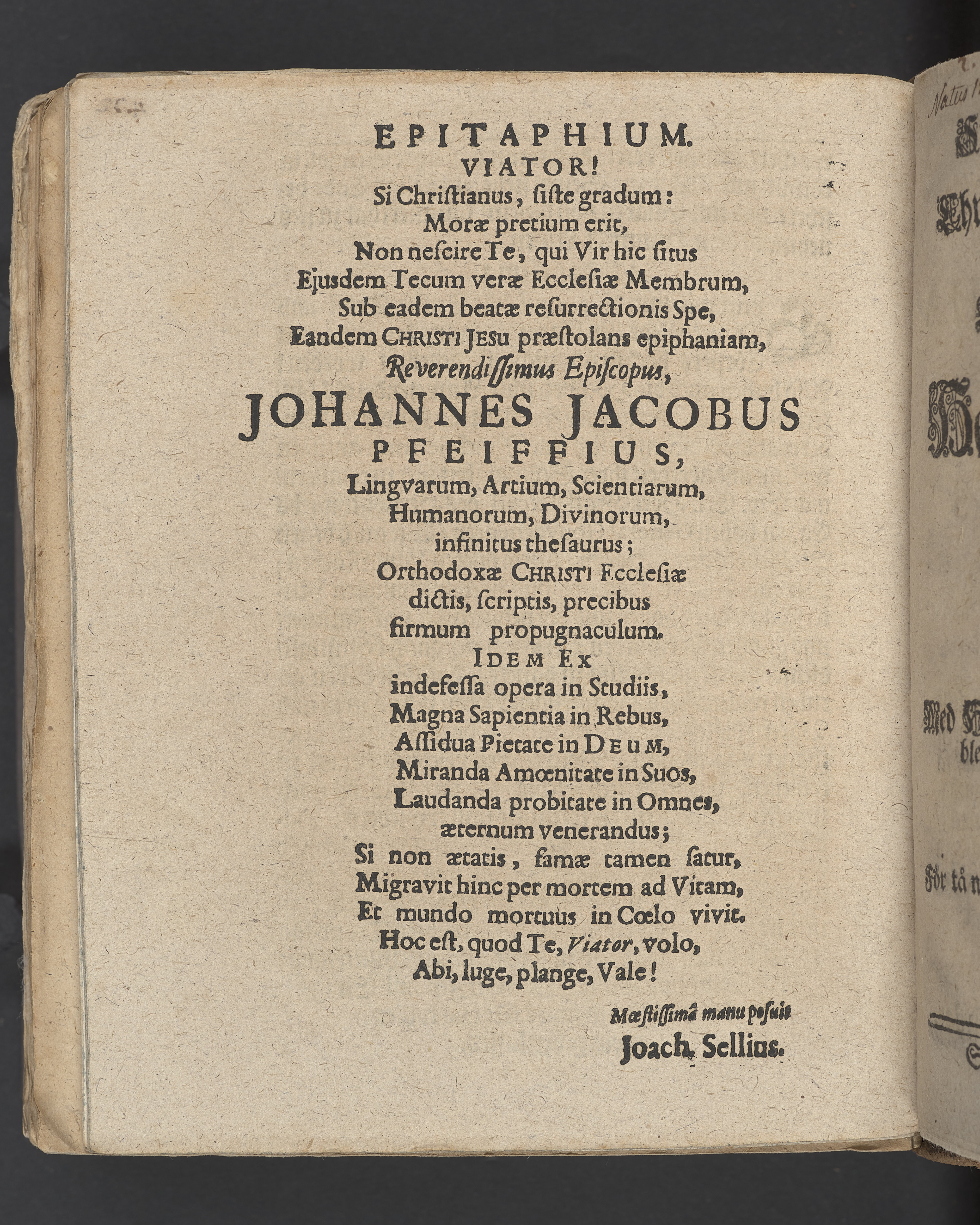 Begravningen av Johann Jacob Pfeiff (Omnämnd på/i)