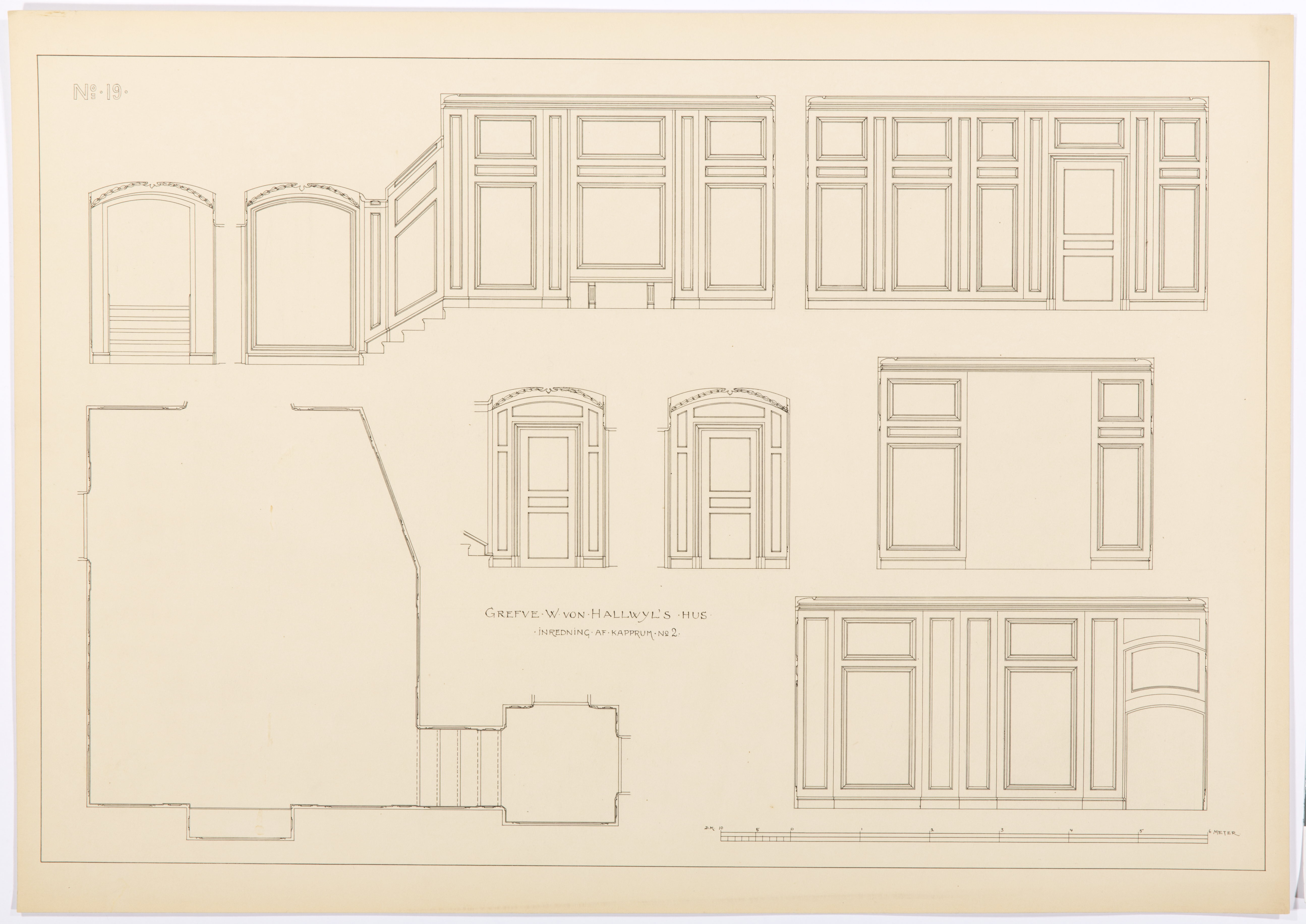 Nr 2. Inrednign af kapprum N:o 2. Huvudritningar
