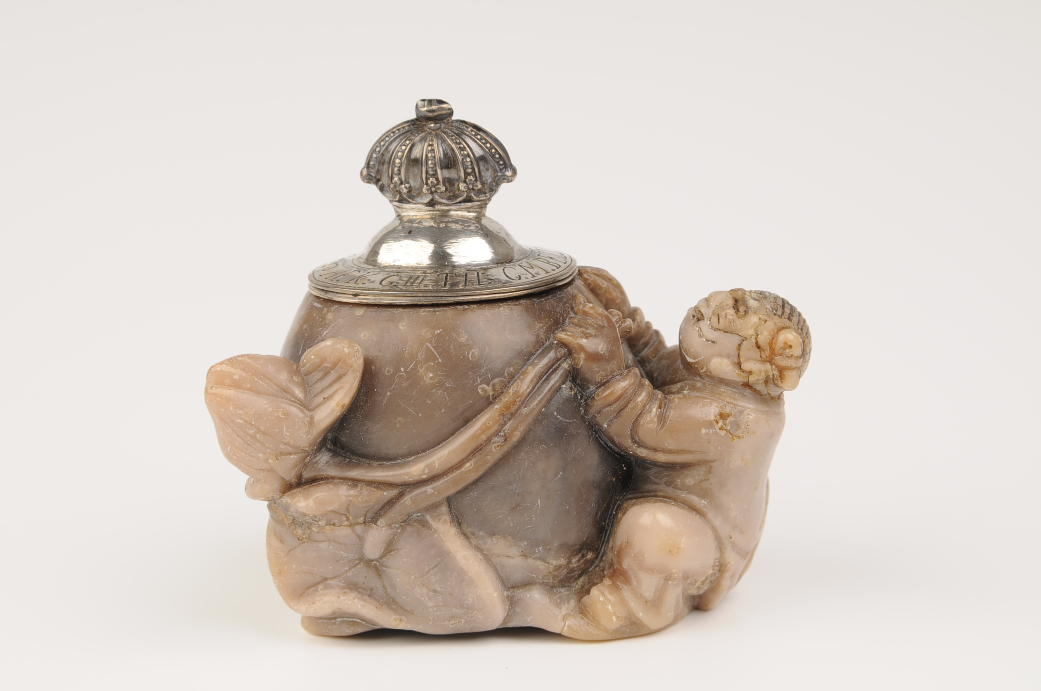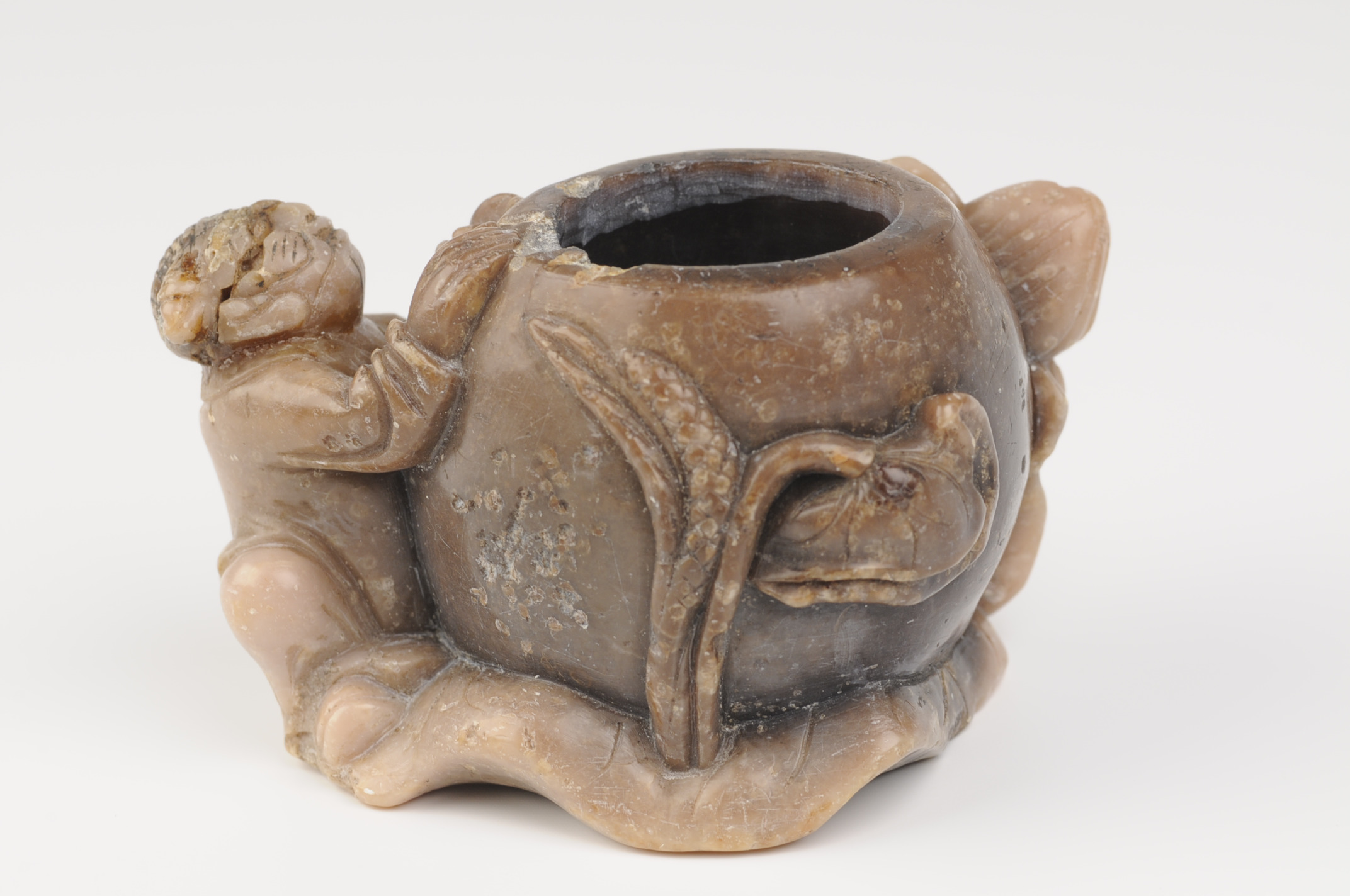 Bläckhorn av rödgul såpsten (agaltomalit) med mynningsrand och lock av silver. Föreställer en pojke som omfamnar en behållare flankerad av lotusblommor. På mynningsranden inskriptionen "NECKEN.HAN.TITTAR.UR.HAFVET.UPP.".På locket står "AF K:G III TIL. C.M. BELLMAN. ANNO 1776". Föremålet kan ursprungligen ha fungerat som penselbad tillverkat i Kina omkring 1700-talets mitt. Locket tillkom sannolikt då Gustav III skänkte föremålet till Carl Michael Bellman, som utnämndes till hovsekreterare 1776. Stämplar finns på lockets insida. Figurens ansiktsdrag har ändrats sekundärt till ett mer "tigerlikt" utseende. Möjligen för att anspela på ett väsen som Näcken.