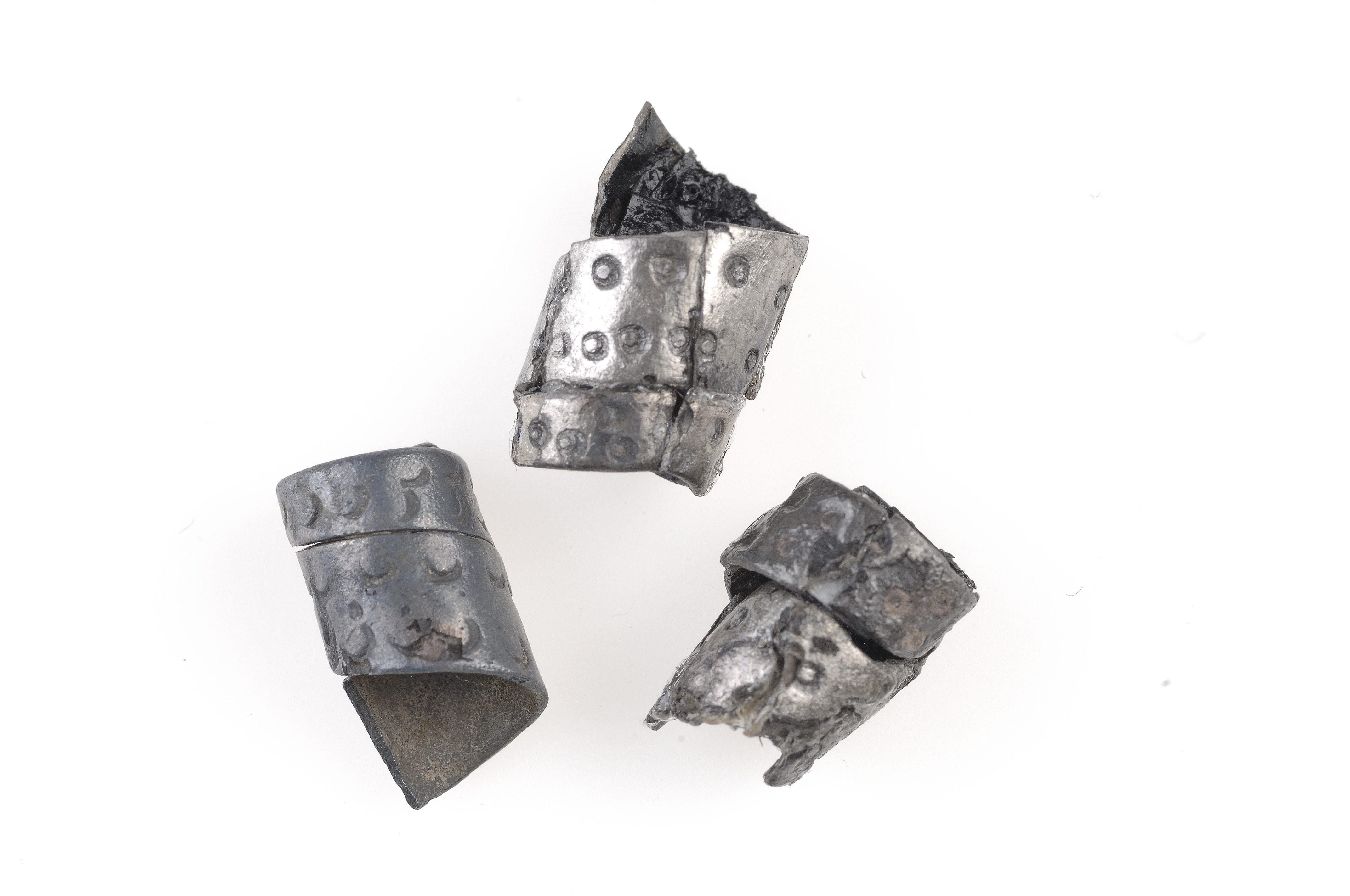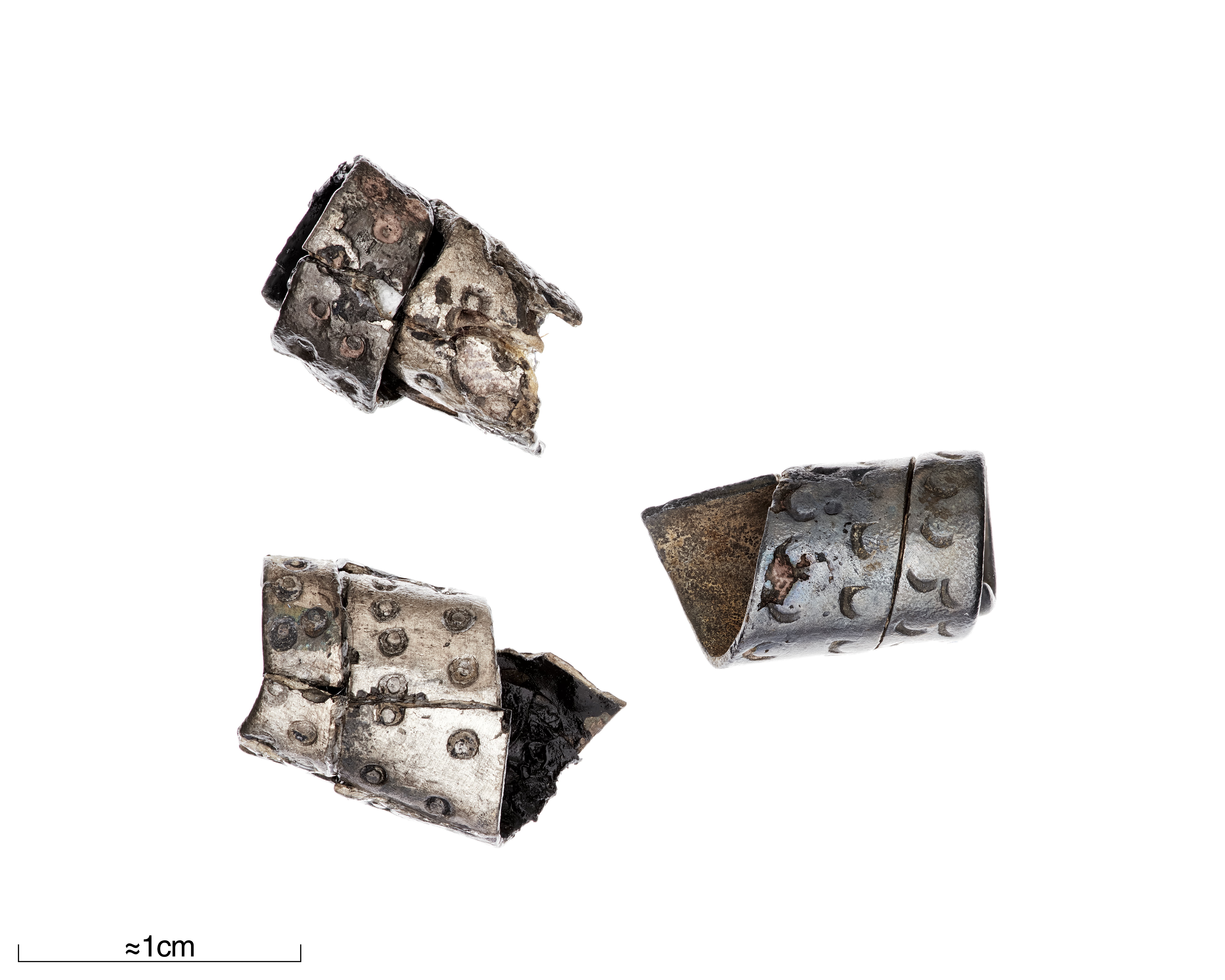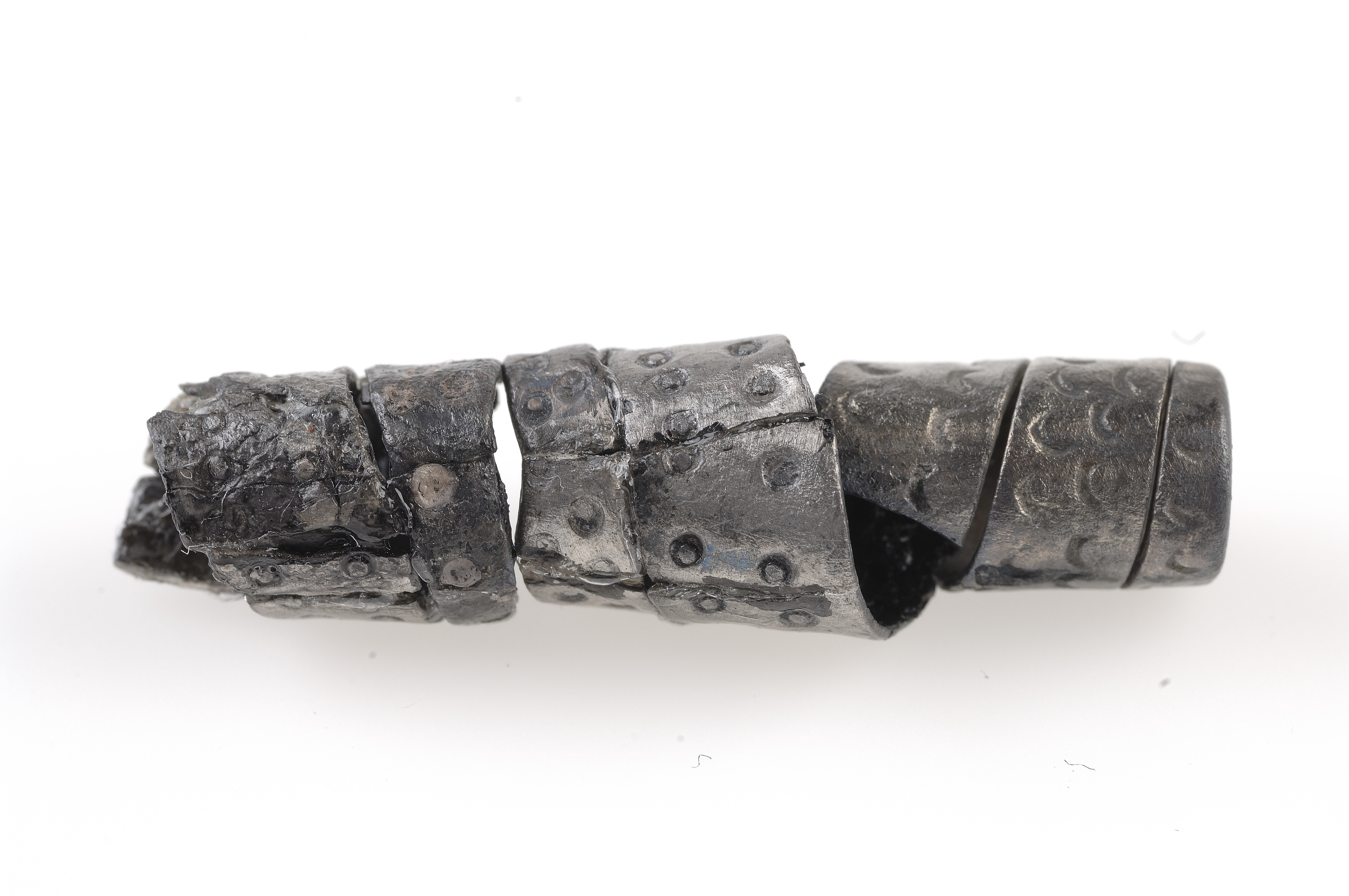 Spiralpärlor av silverband med punsornamentik