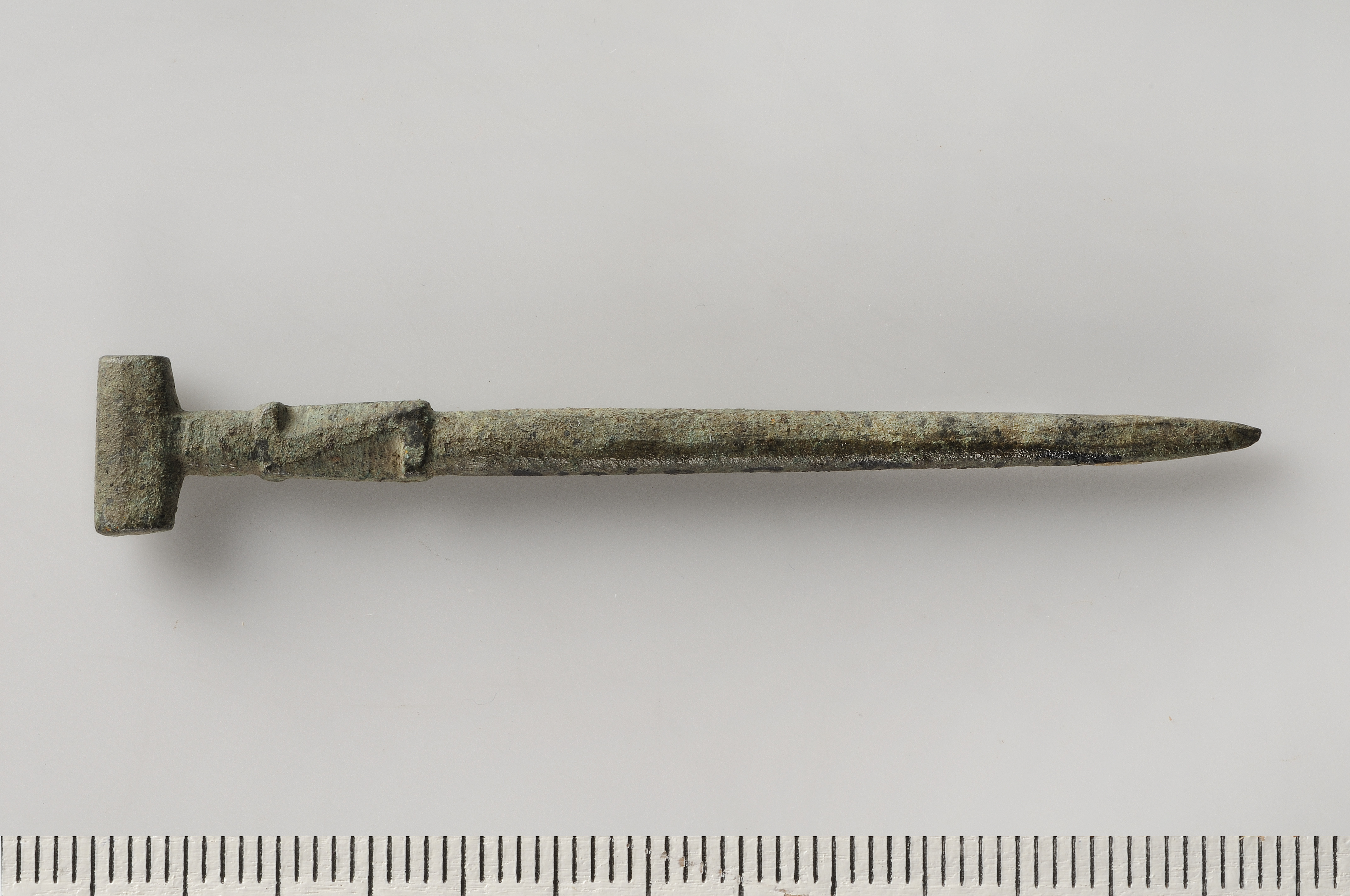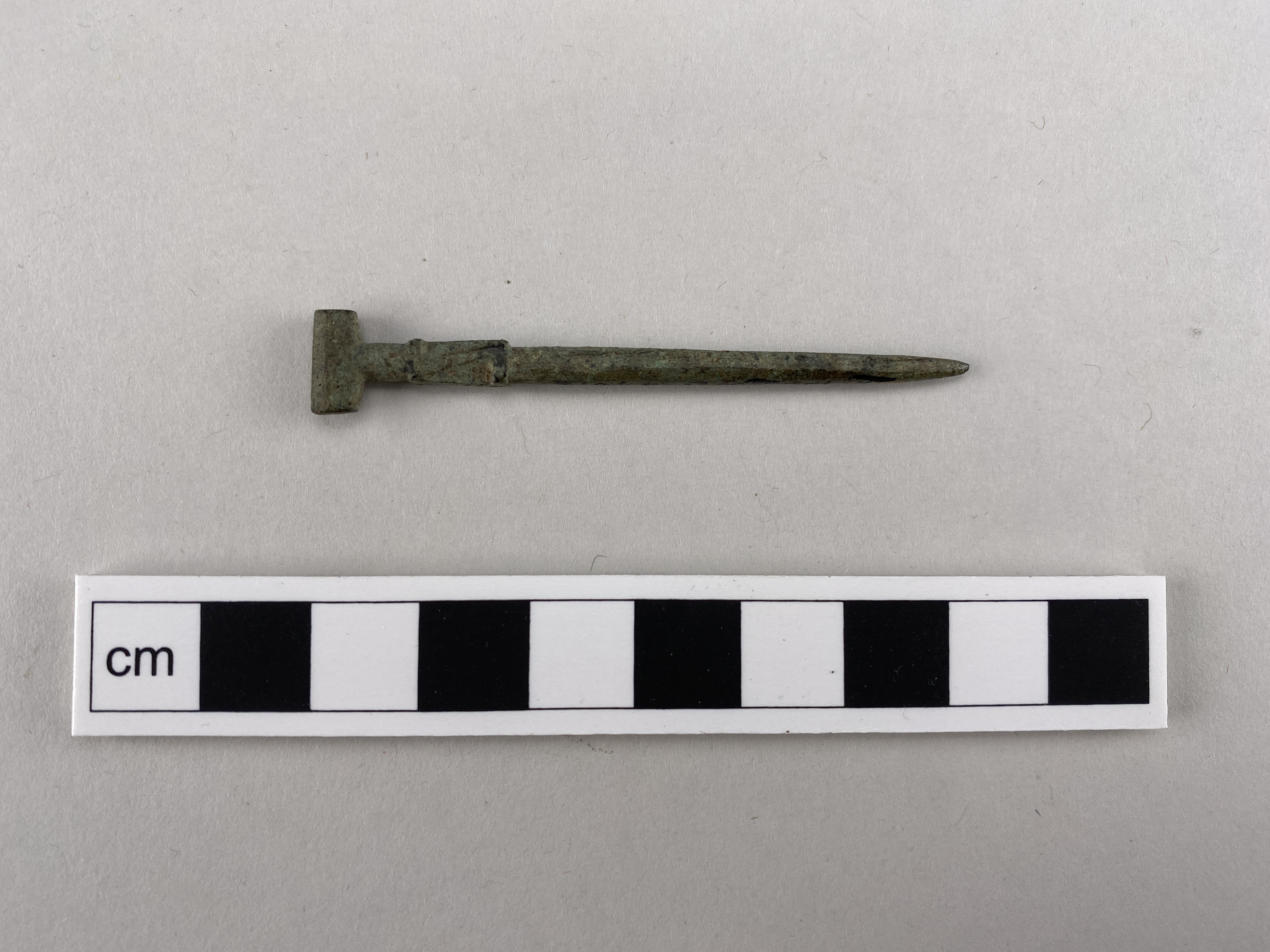 Stift med runt tvärsnitt och konisk spets. Huvudet samtidigt raderare i form av tvärstång.