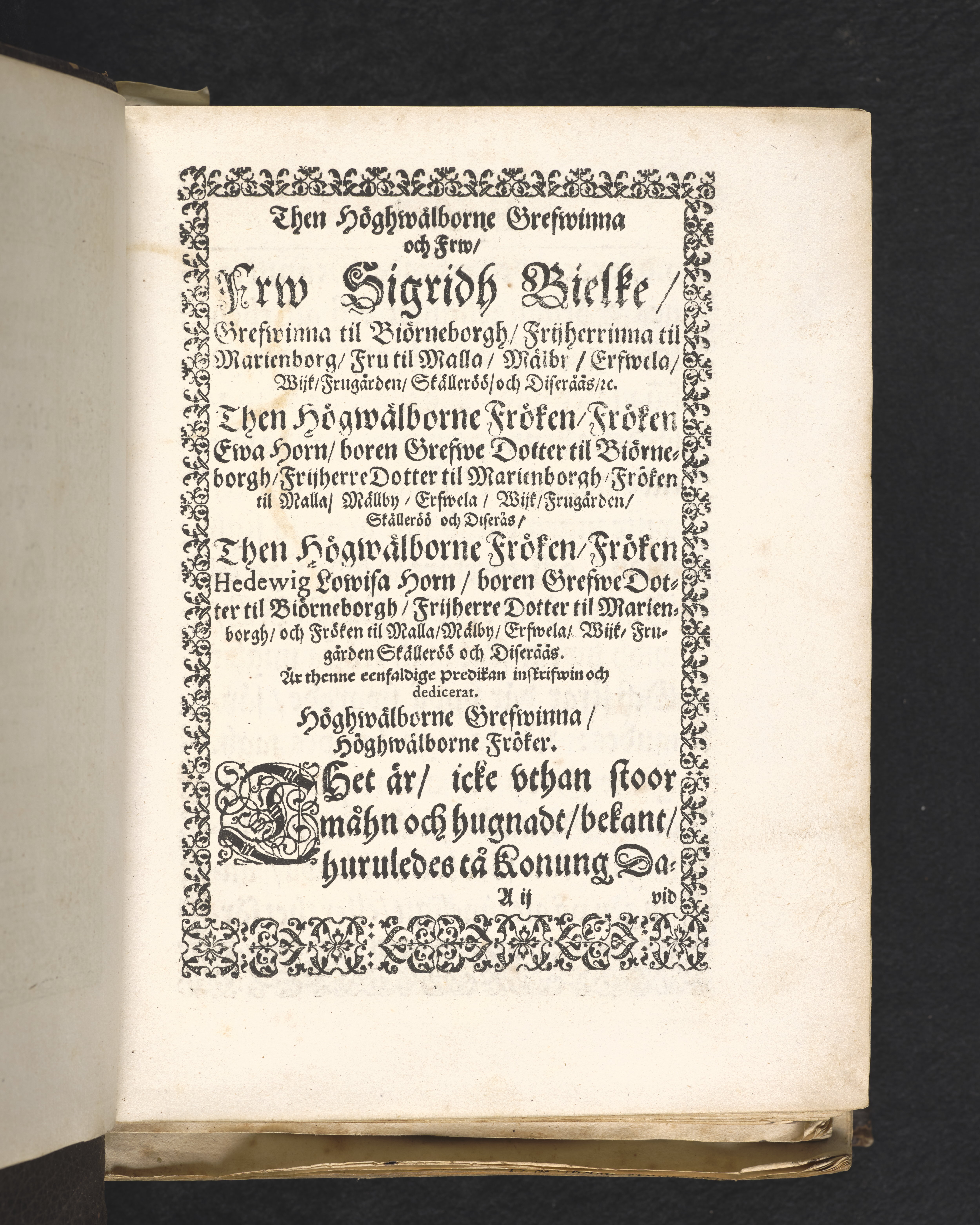 Christeligh lijkpredikan som närwarande funtlighe personer, sampt Sweriges rijkes regering ... bleff hållen vth i S. Jacobs kyrkio på thet åhret Christi MDCLX den XII. Aug.tå ... Gustaff Horn, grefwe til Biörneborg ... bleff begrafwen. Aff Erico Gab. Emporagio ... Tryckt i Stockholm aff Ignatio Meurer.