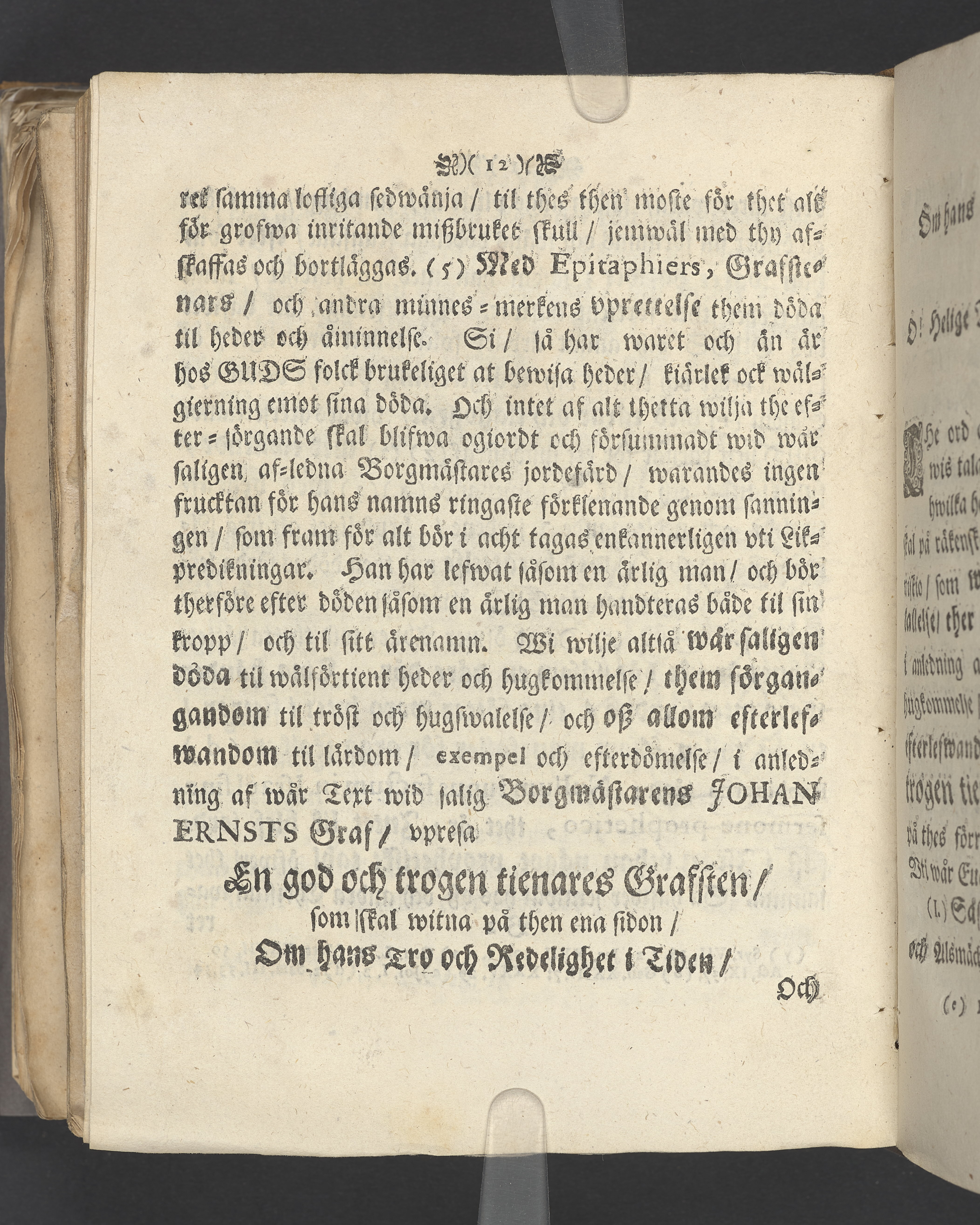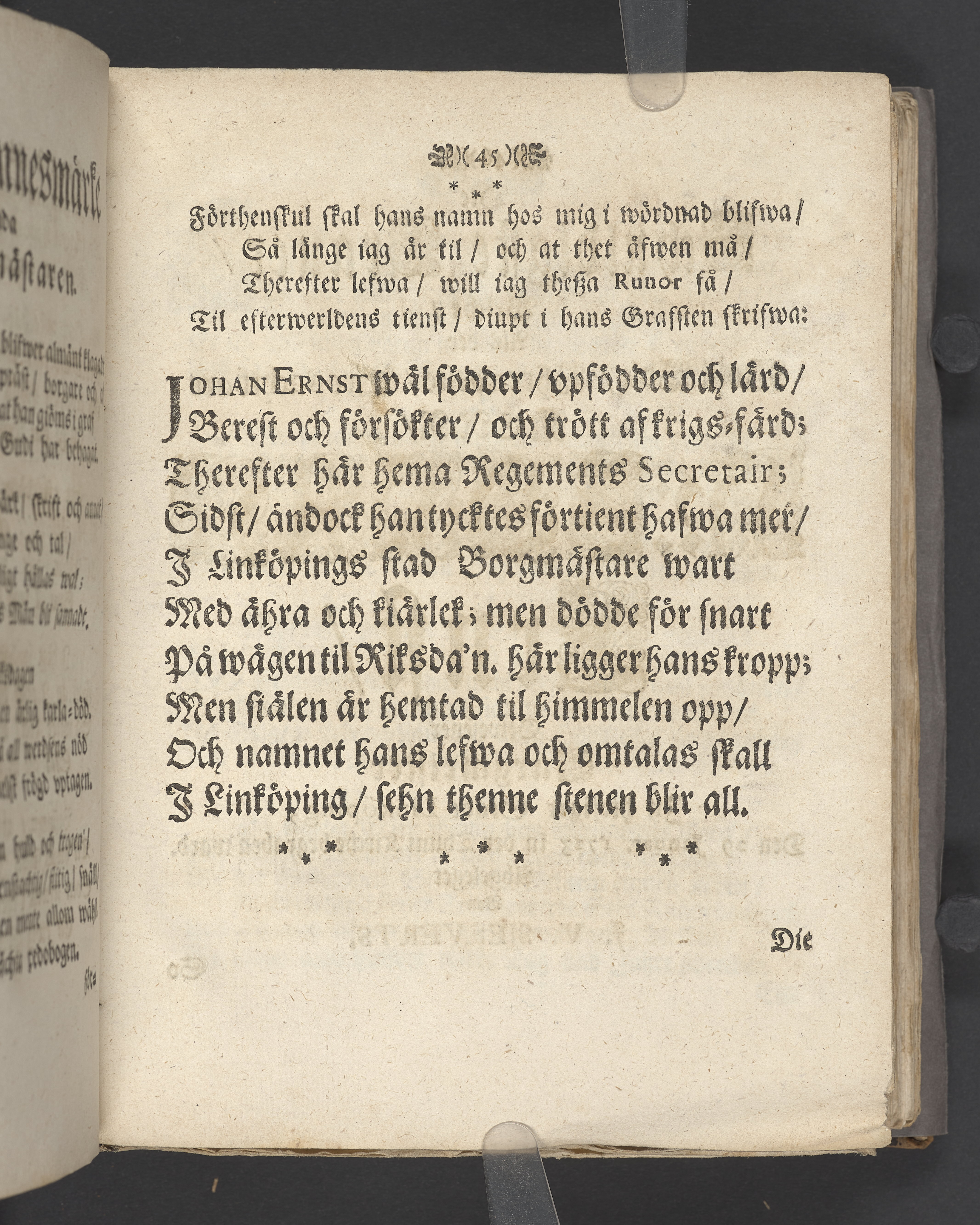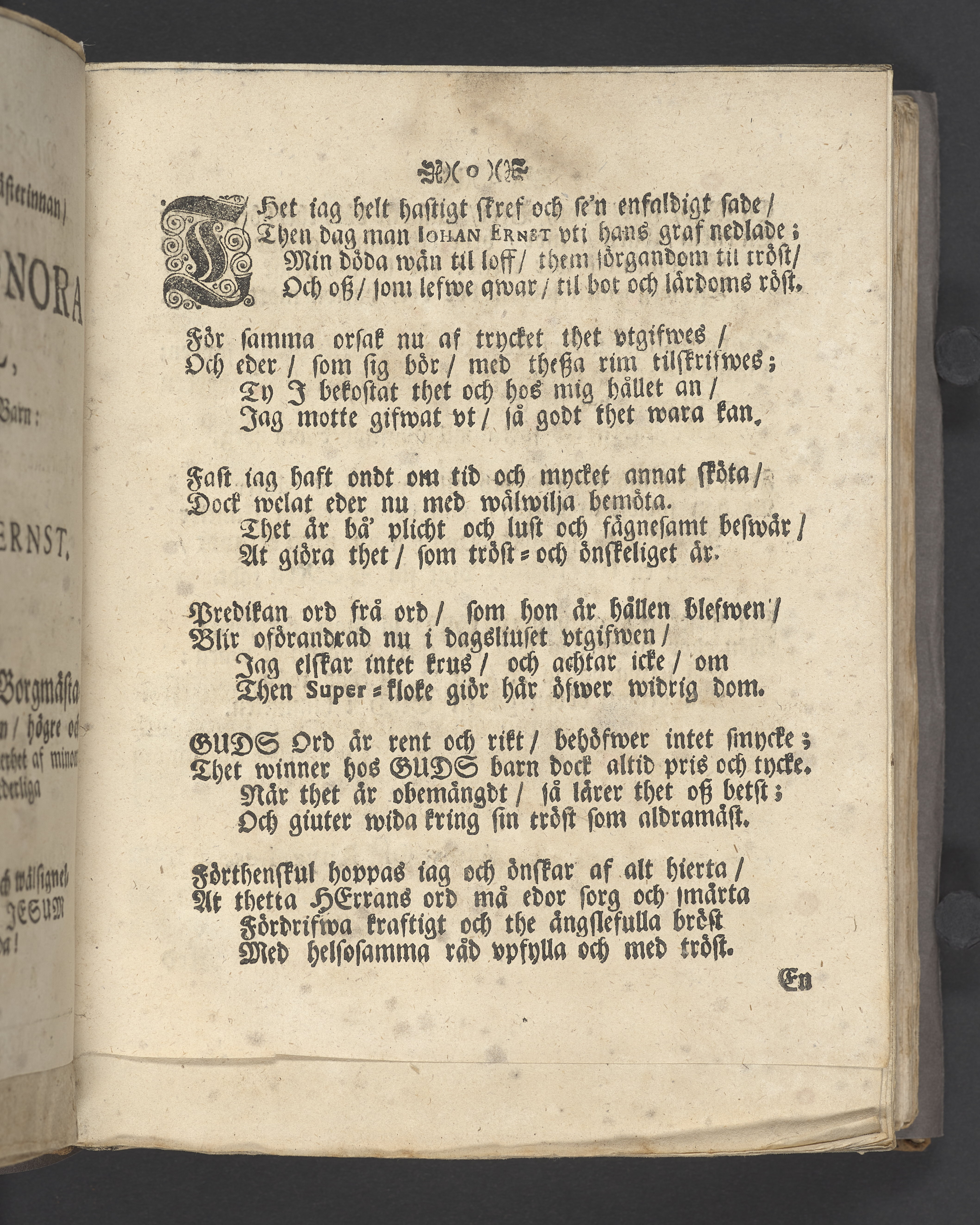 En god och trogen tienares graf-sten, witnandes å then ena sidon om hans tro och redelighet i tiden, och å then andra sidon om hans glädie efter döden; vti anledning af Christi ord i Matthæi evangelistens tiugonde femta capitels, tiugonde första vers. Wid borgmästarens i Linköping ... nu hos Gud salig, hr. Johan Ernsts christeliga begrafning, then 29 jan. 1723, vti Linköpings domkyrkio, vprest och enfaldigt förestäld af Andrea Ol. Rhyzelio ... Linköping, tryckt af Petr. Pilecan.