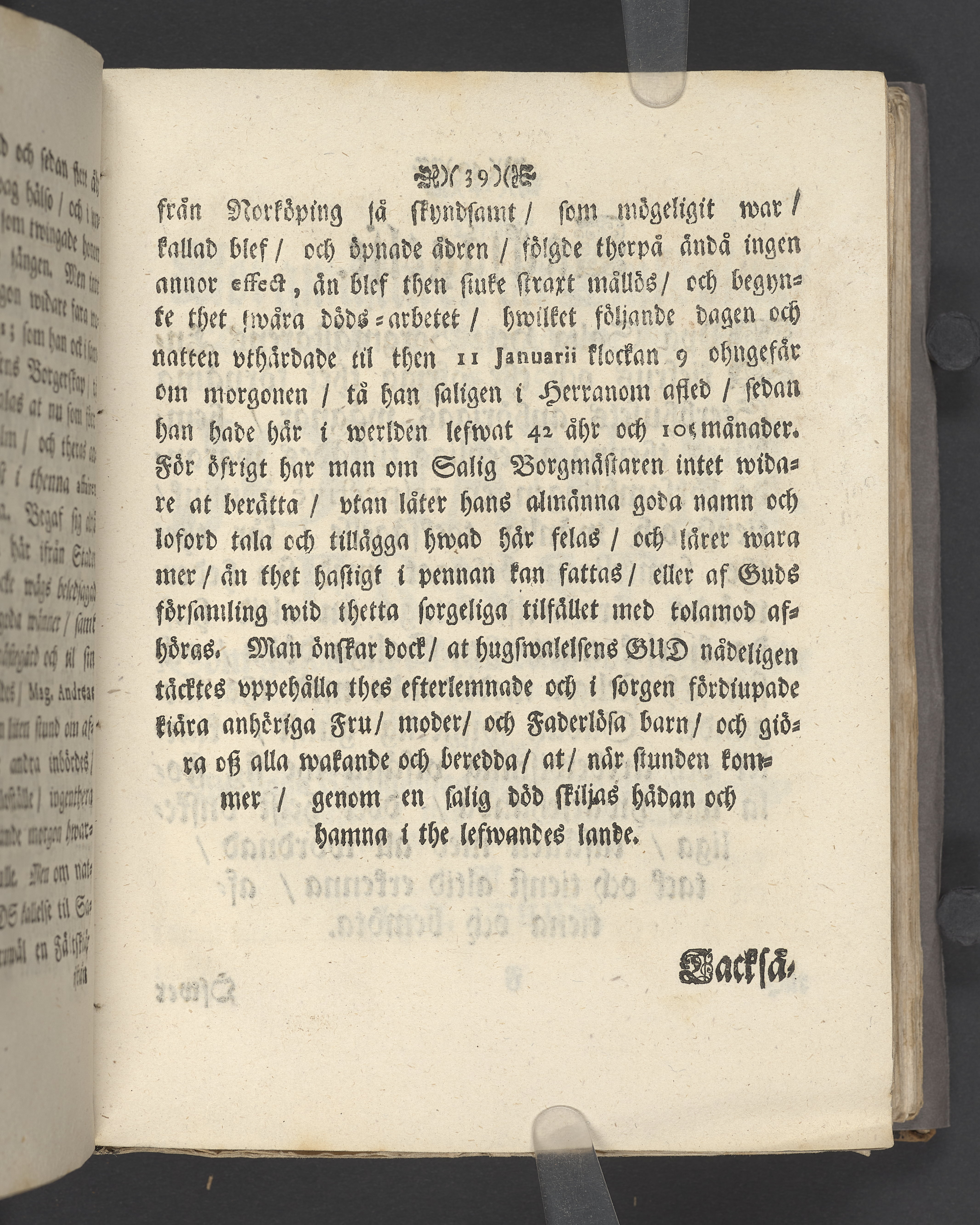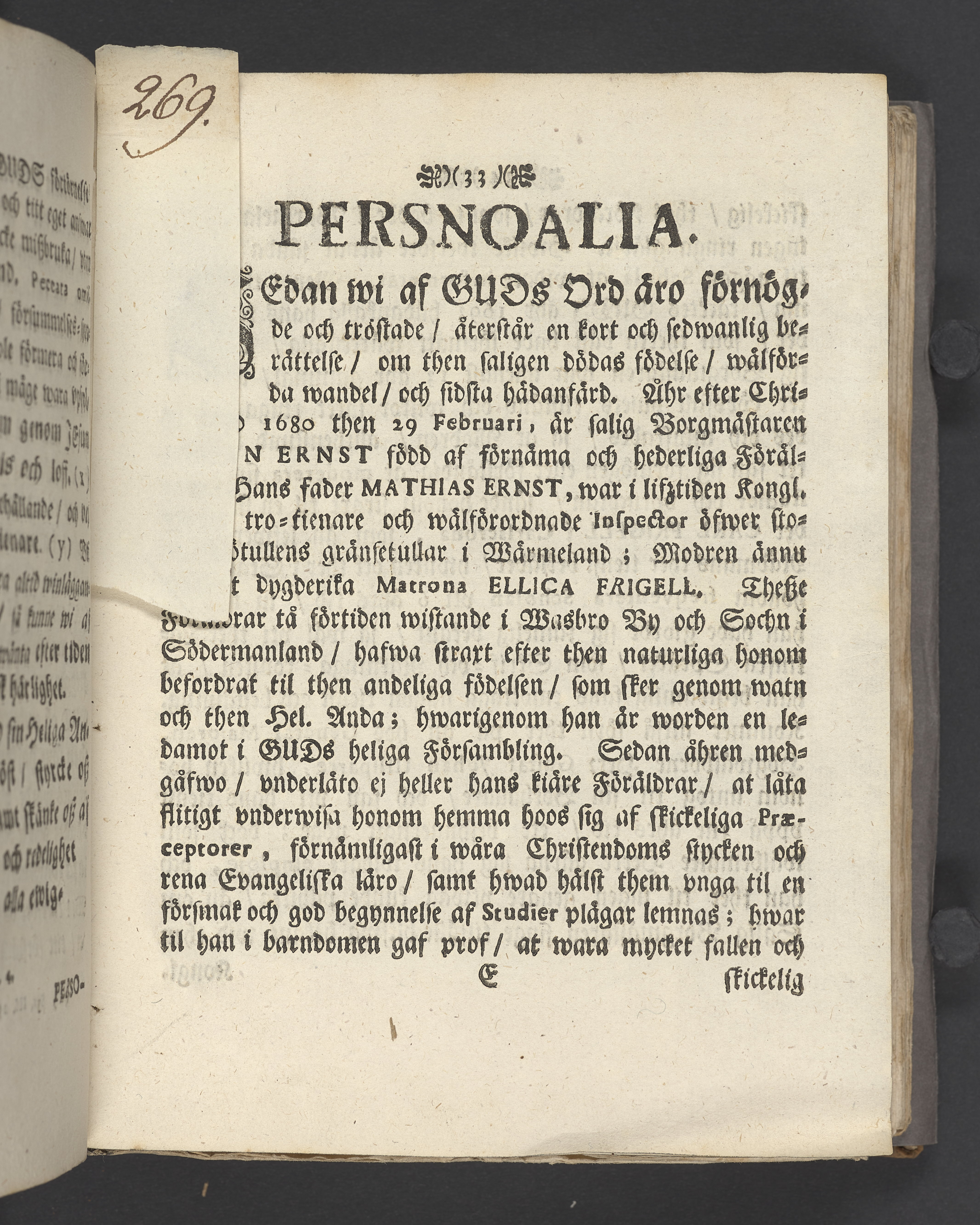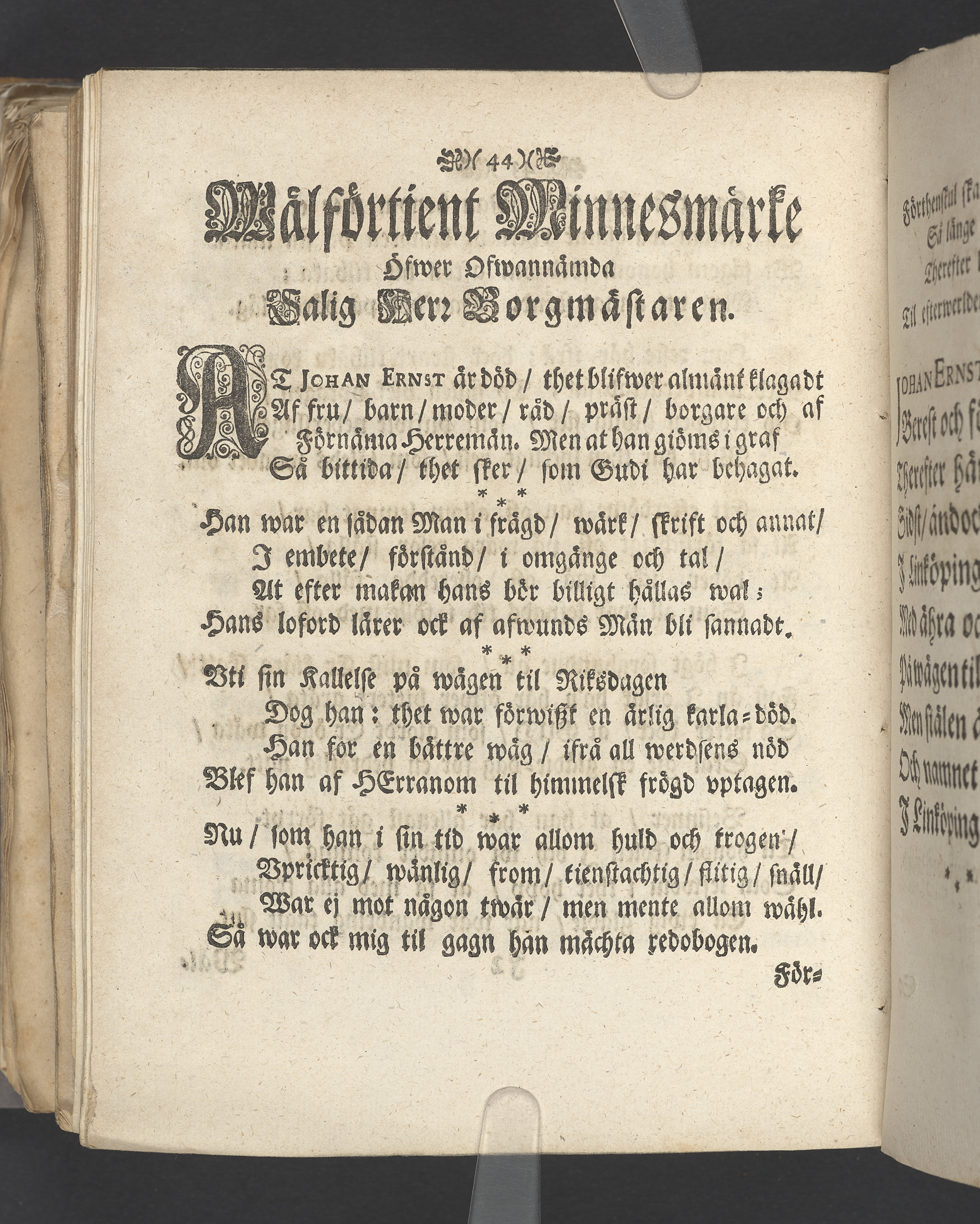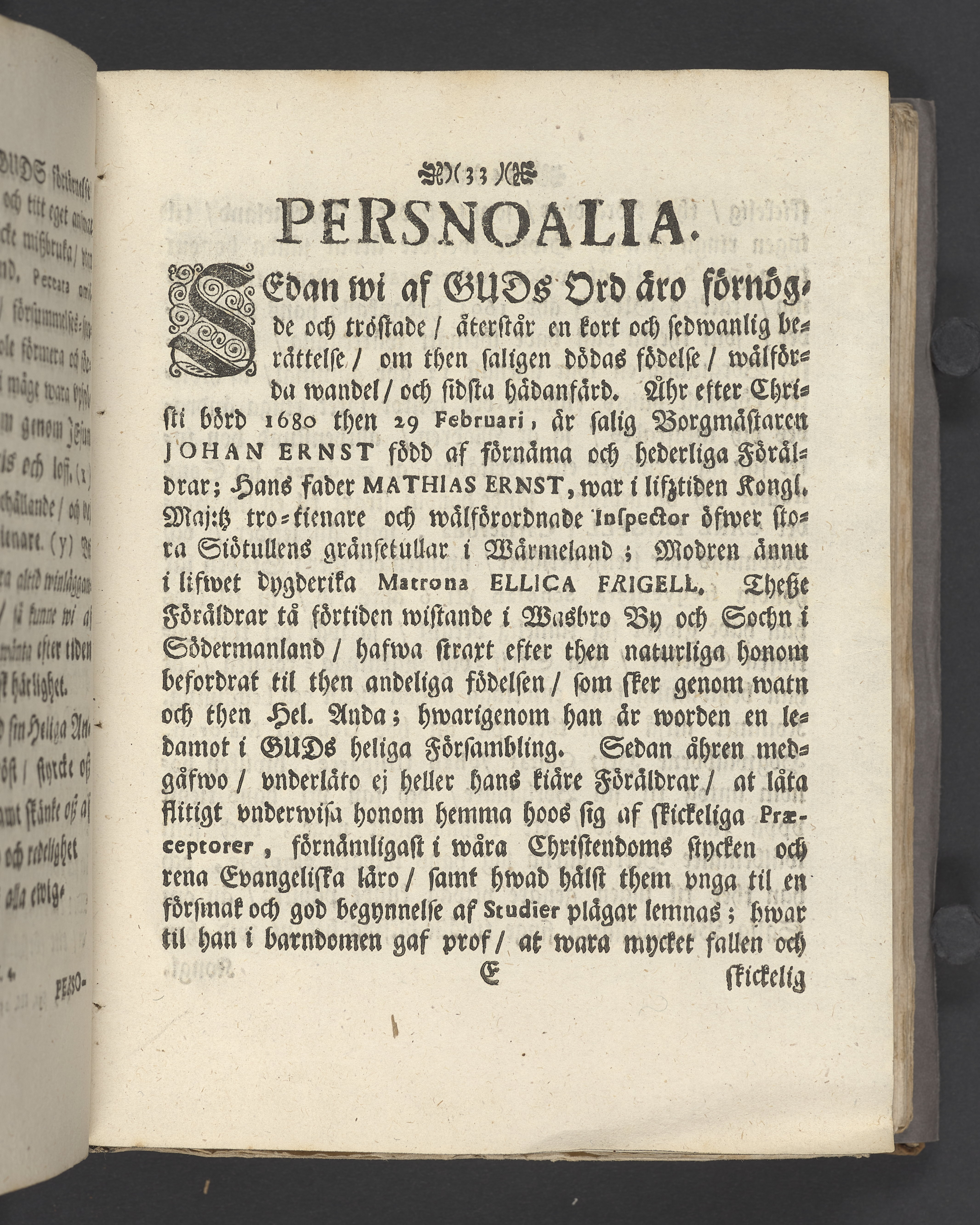 En god och trogen tienares graf-sten, witnandes å then ena sidon om hans tro och redelighet i tiden, och å then andra sidon om hans glädie efter döden; vti anledning af Christi ord i Matthæi evangelistens tiugonde femta capitels, tiugonde första vers. Wid borgmästarens i Linköping ... nu hos Gud salig, hr. Johan Ernsts christeliga begrafning, then 29 jan. 1723, vti Linköpings domkyrkio, vprest och enfaldigt förestäld af Andrea Ol. Rhyzelio ... Linköping, tryckt af Petr. Pilecan.