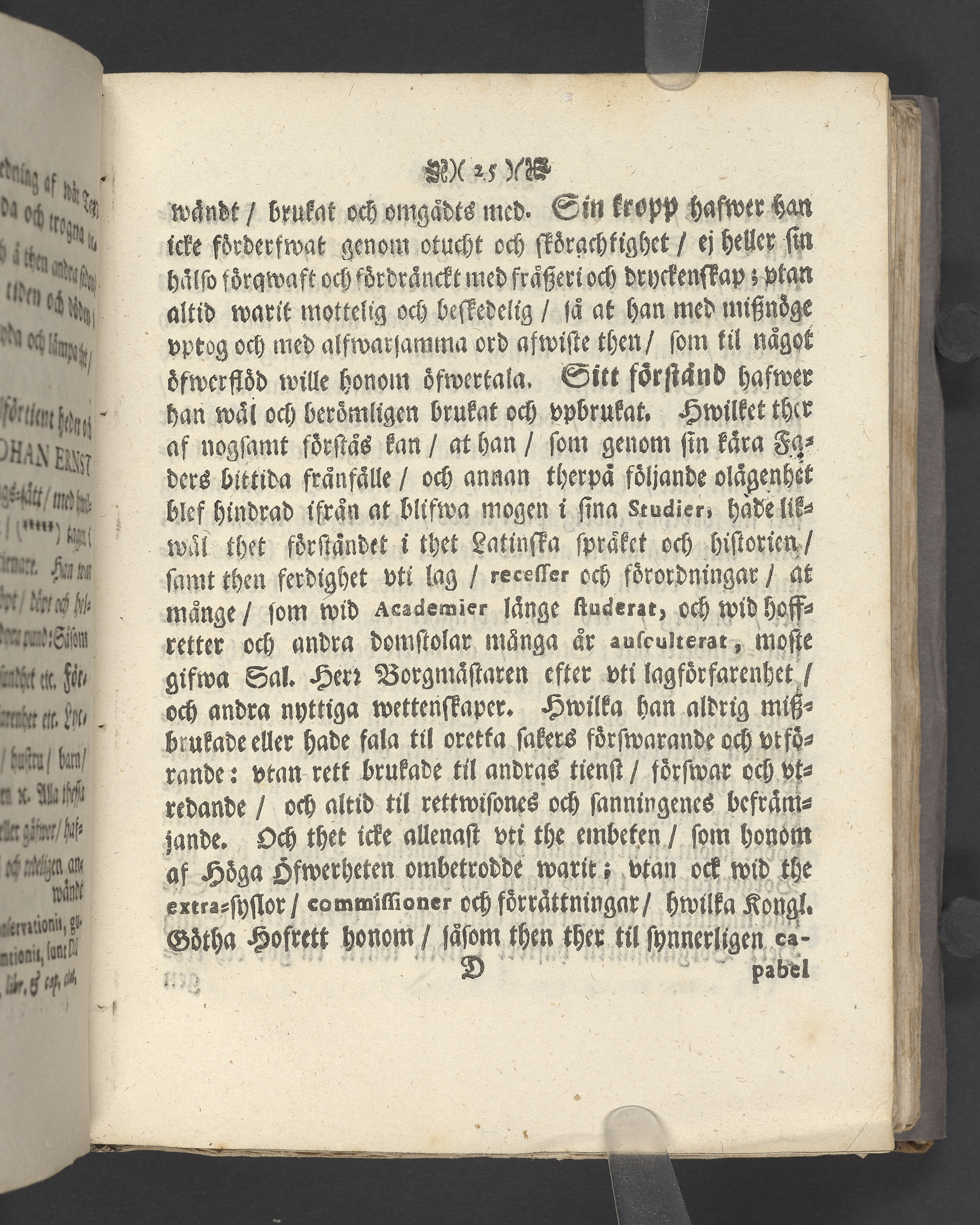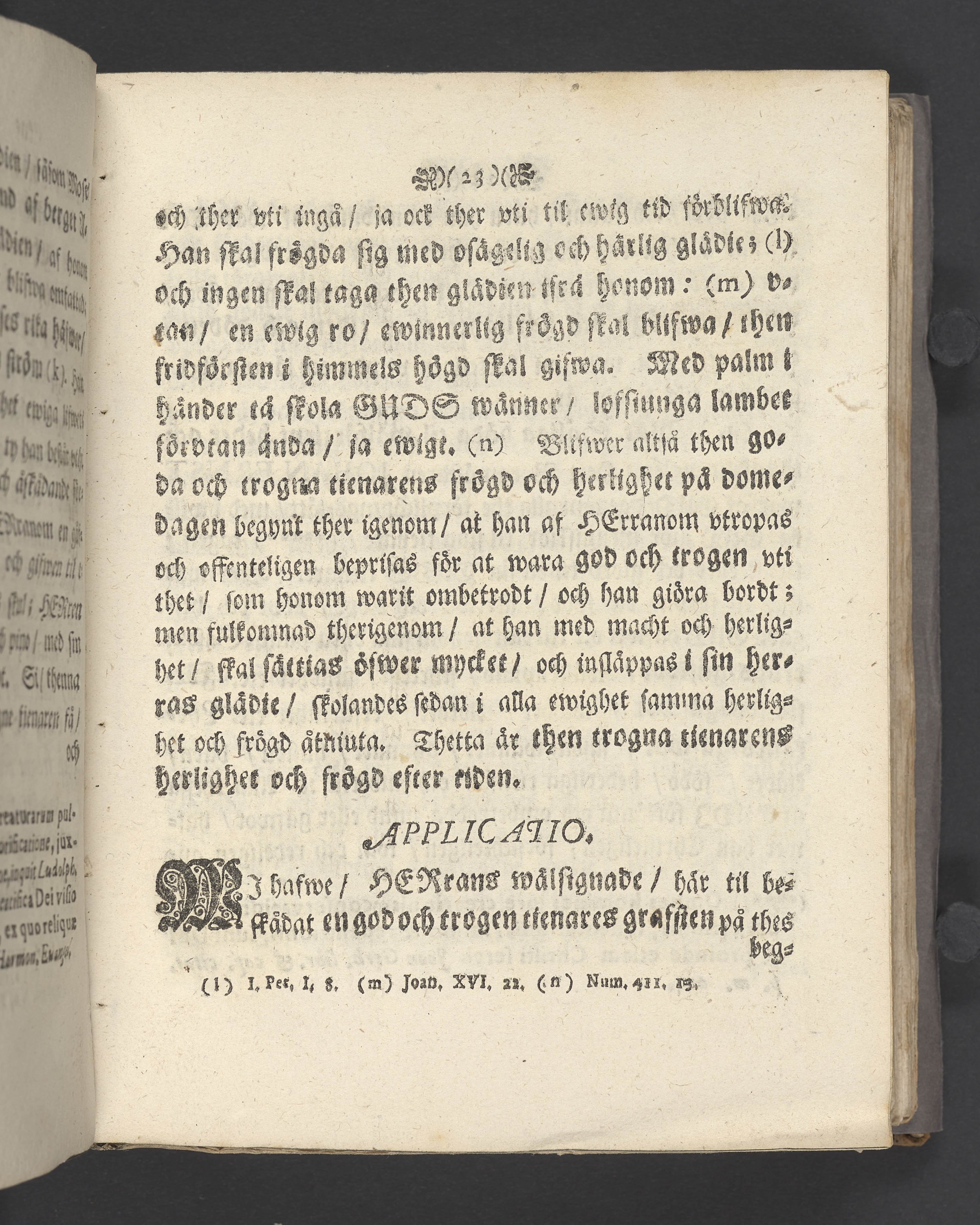 Band m. pärmar av marmorerat papper, rygg och hörn av kalvskinn. Pärmfyllnad: papp. Inlagan består av enskilda lunthäftade skrifter som tillsammans häftats på tre bind, fast rygg. Variationer i papperskvalitet och storlek. 23 skrifter samlade i en volym.