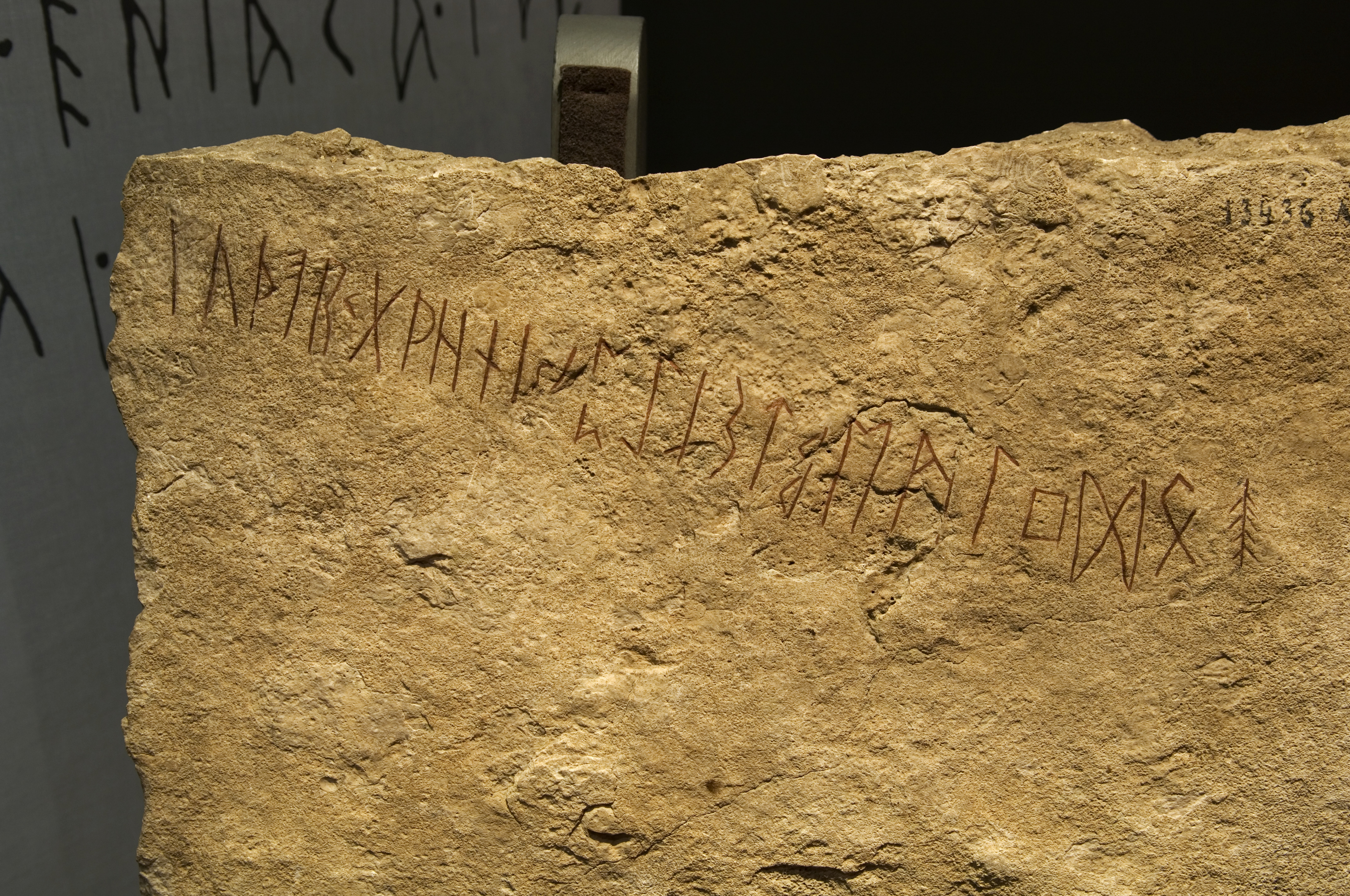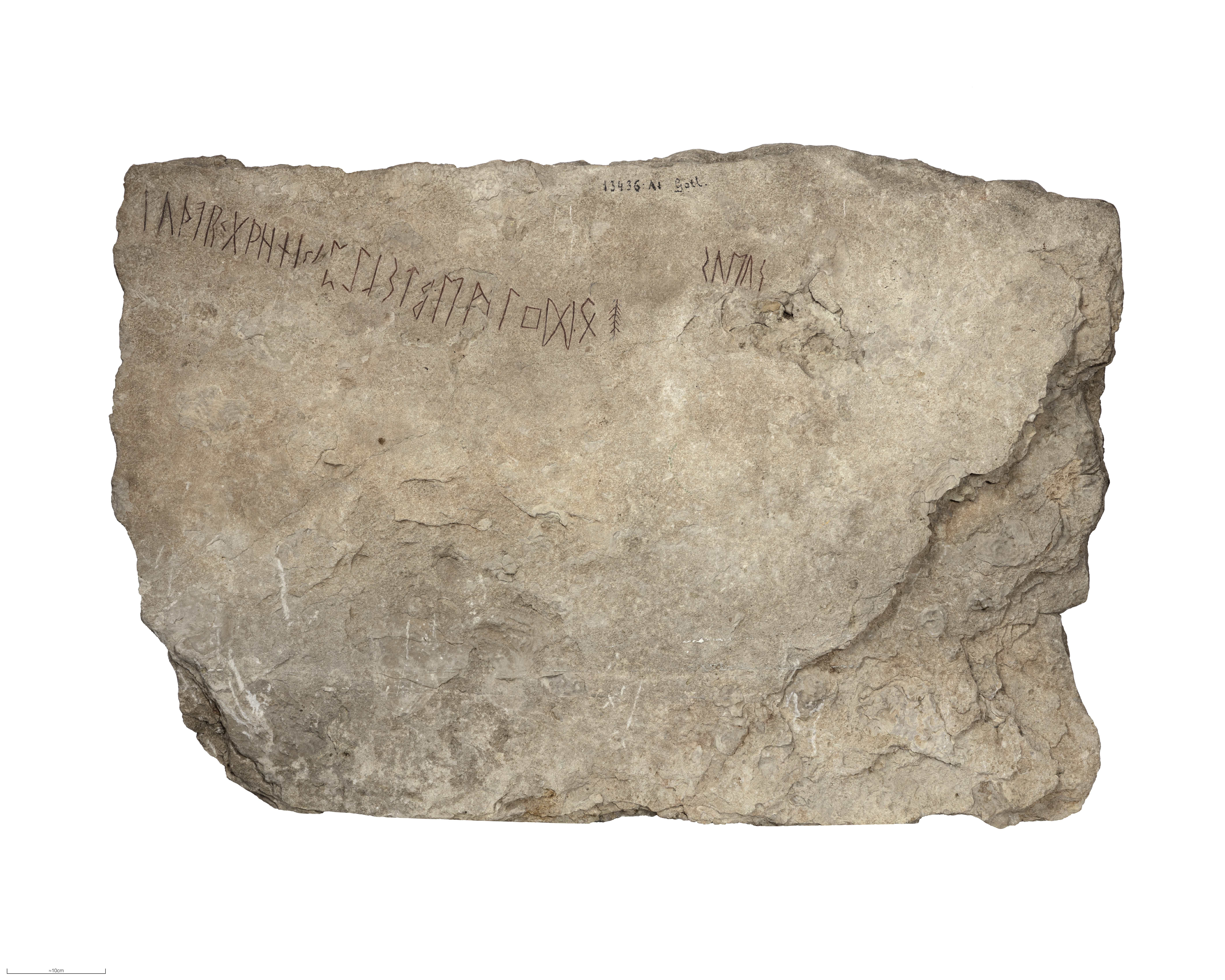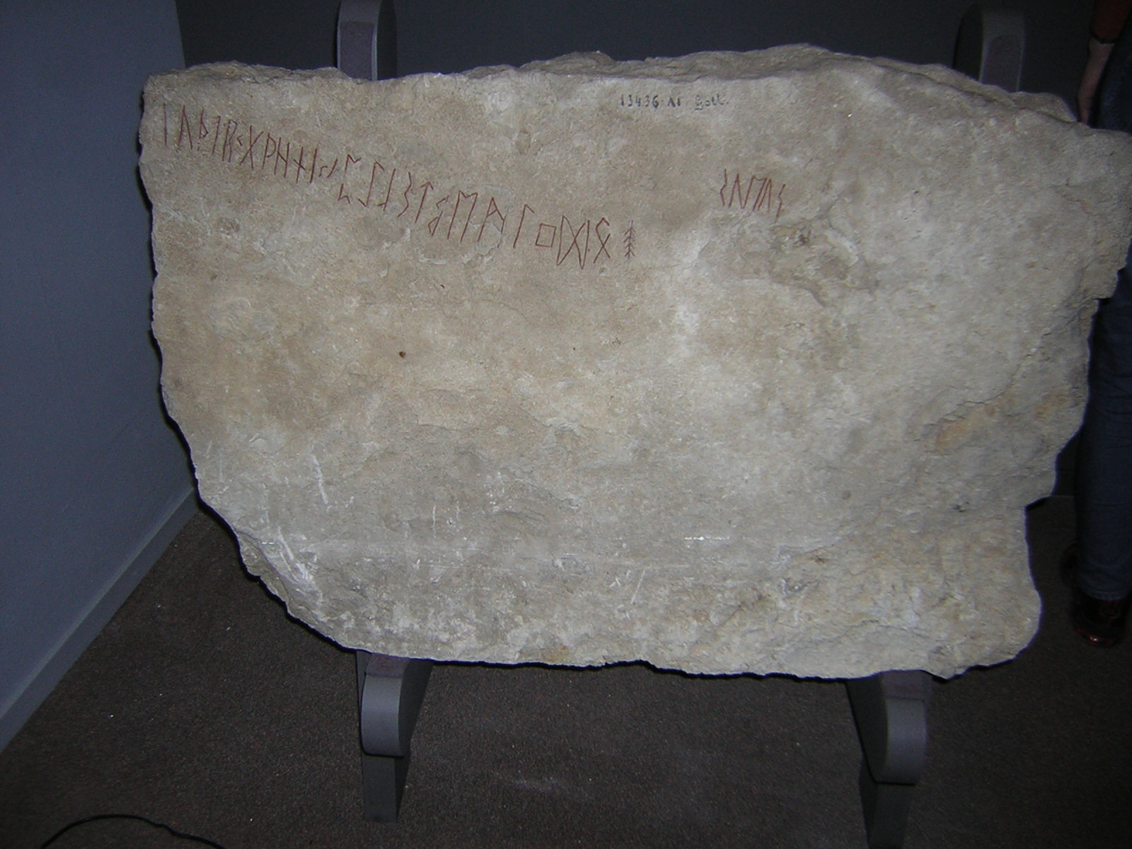 Sten till hällkista/skelettgrav vars utsida är prydd med runinskrift, bla hela den 24-radiga futharken, ett grankvistliknande tecken samt ordet "sueus". Äldre runor. Utsidan är prydd med runskrift, bland annat hela runalfabetet. Inskriften tolkas som: (f)uþarkg(w)hni(j)pïzstbemlŋdo+"grankvist" och upptill su(e)us