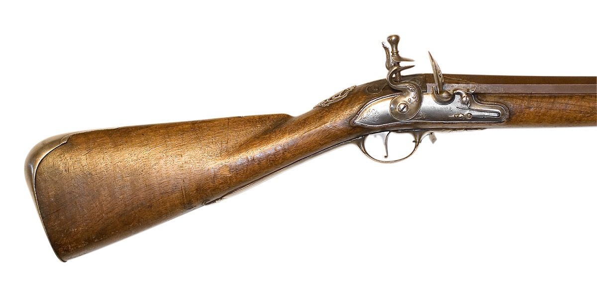 Flintlåsbössa, Frankrike?, stocken senare, ändras till halvstock.