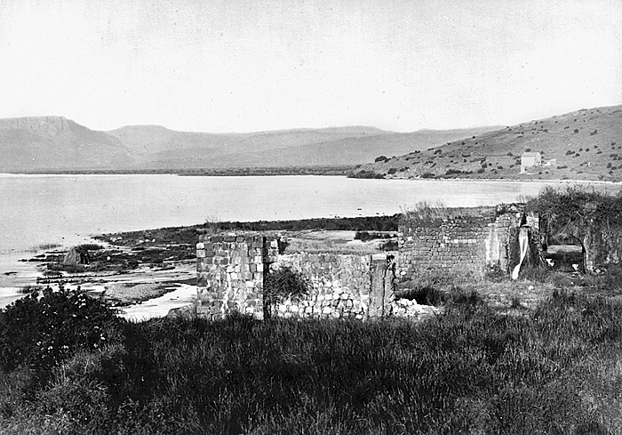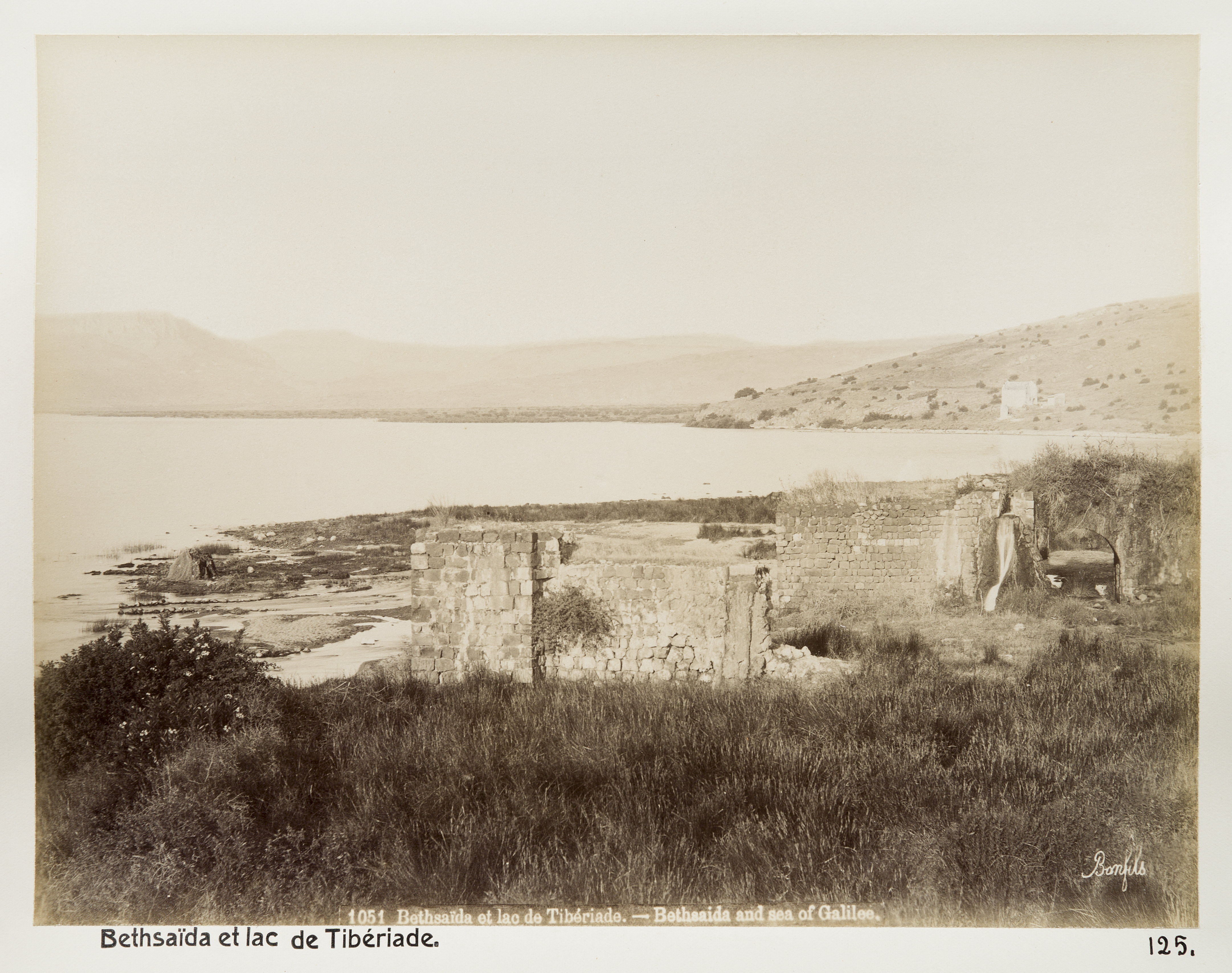 Betesda och Gennesaretsjön (Tiberiassjön). Text på originalet: "Bethsaida et lac de Tibériade./Bethesda and sea of Galilee." Fotografierna LXVI:N.01.-180. kommer från resan till Palestina och Syrien som Wilhelmina och Walther von Hallwyl gjorde den 30 mars-27 april 1901. De lämnade Sverige den 5 november 1900 för Egypten, där de stannade till den 28 mars 1901, då de fortsatte till Palestina. Med på resan var Wilhelminas sällskapsdam, fröken Ida Uhse. Den 27 april fortsatte de till Turkiet och Mindre Asien. De mindre fotografierna (utom de från Samos) LXVI:N.90.-100. är tagna av Wilhelmina själv, under en resa till häst från Jerusalem till Damaskus 8-20 april 1901. Övriga fotografier är inköpta av Wilhelmina i Jerusalem, Damaskus och Beirut. Alla uppgifter kommer från Ida Uhses reseanteckningar.
