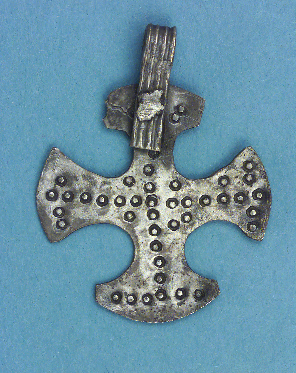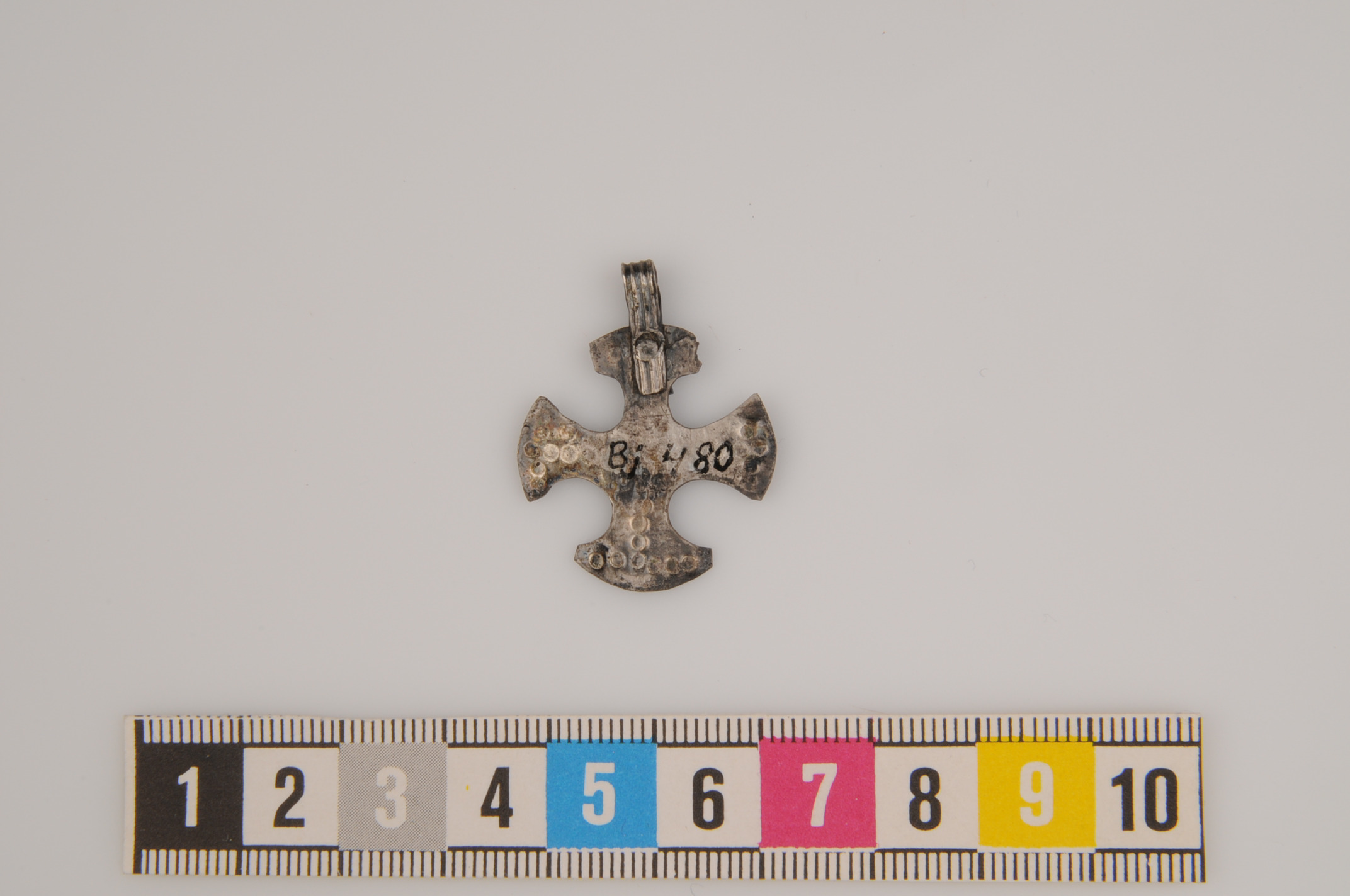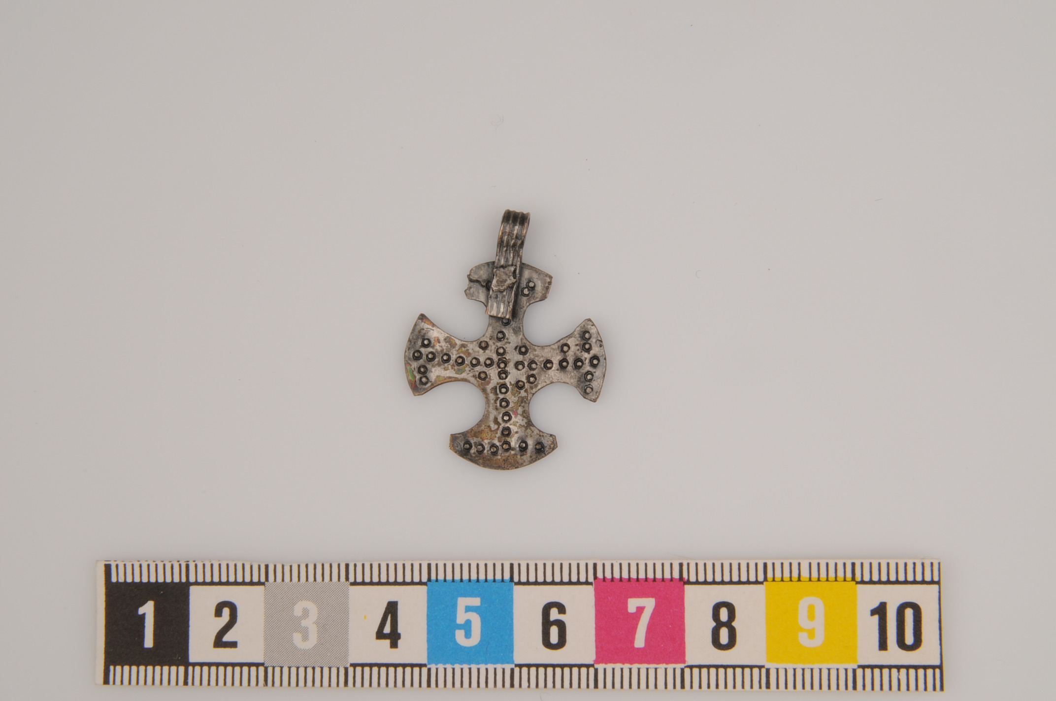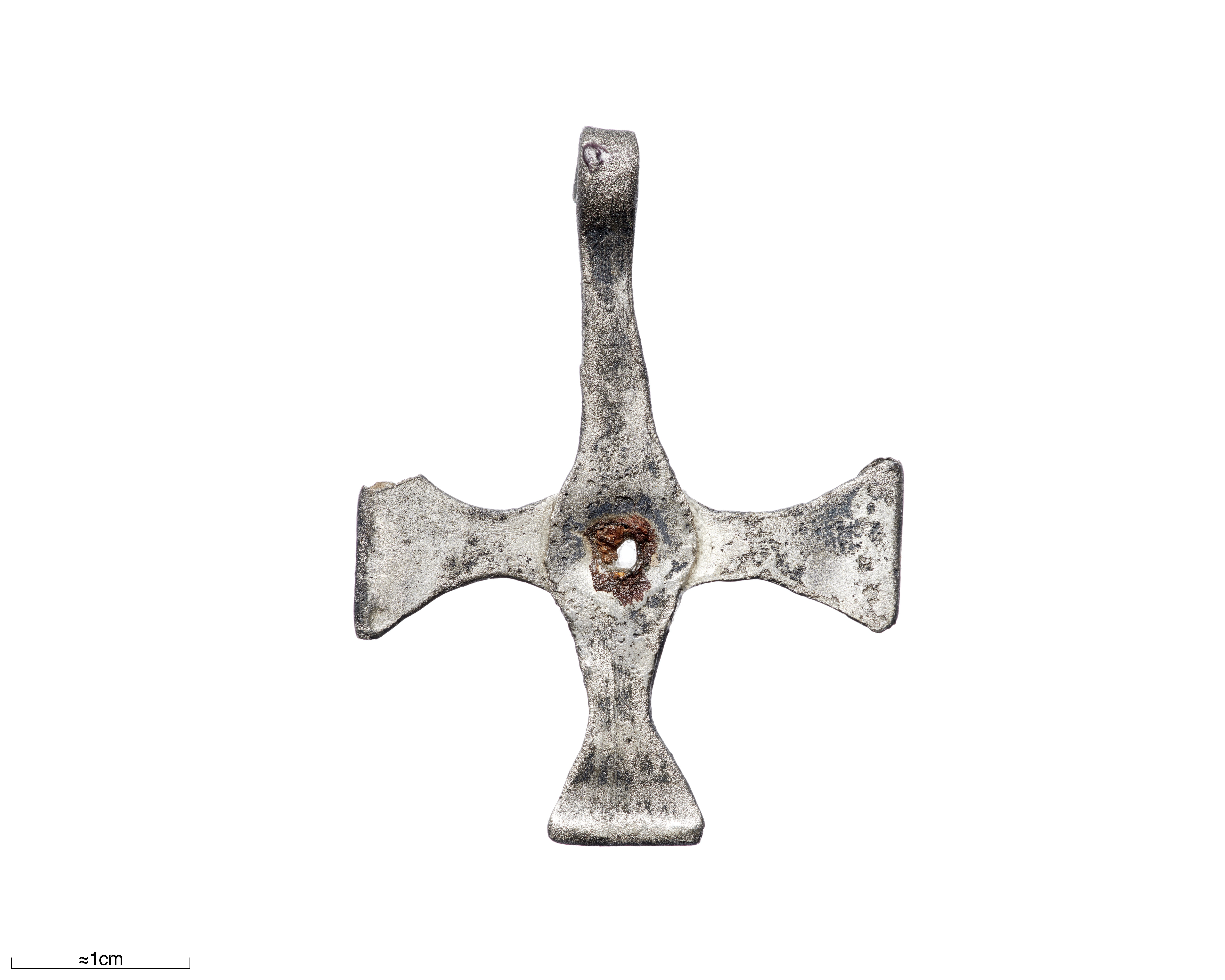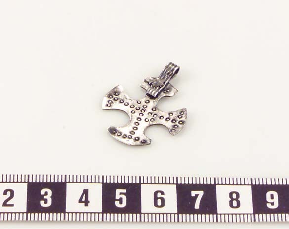 Hängkors av silver med cirkelornament.