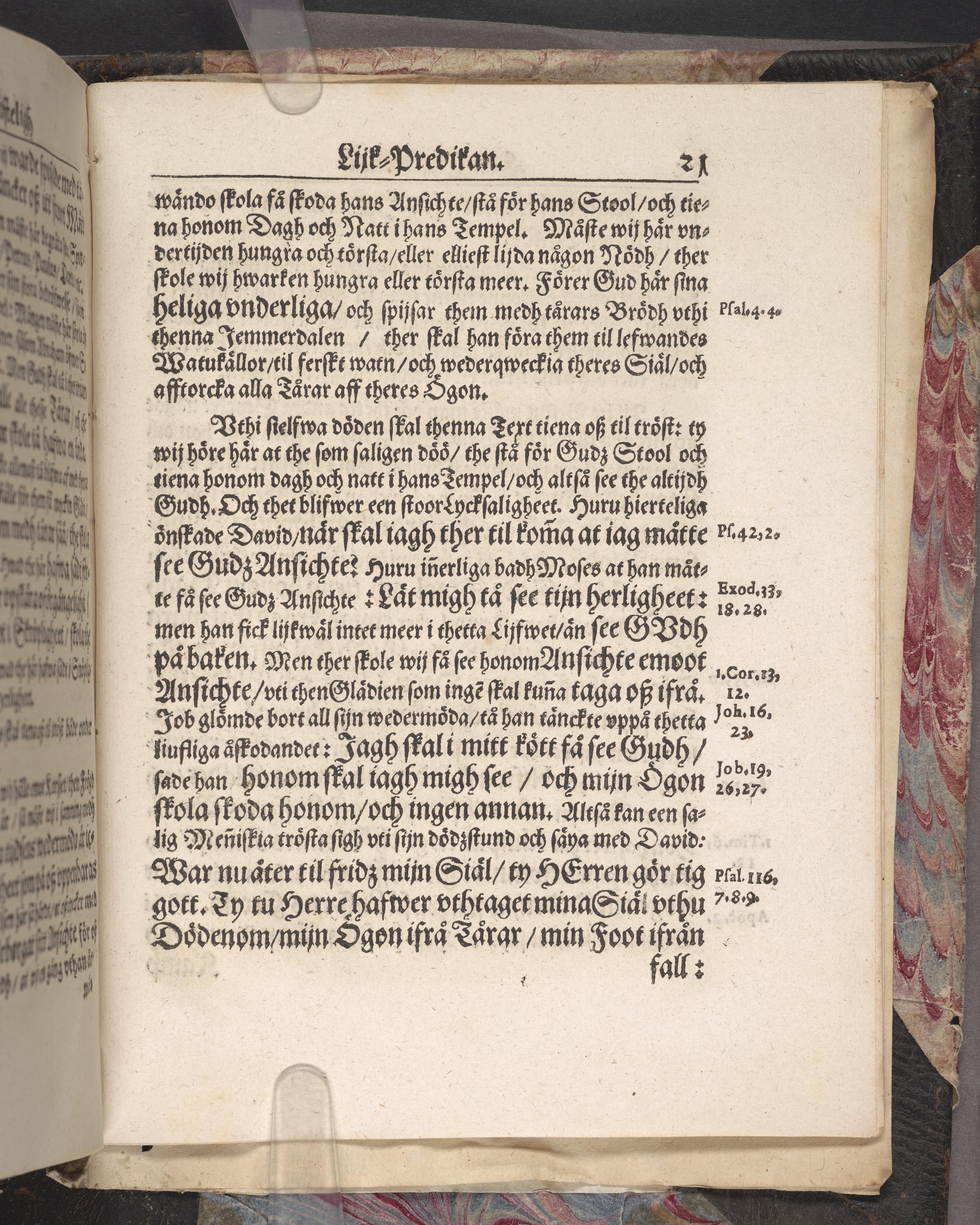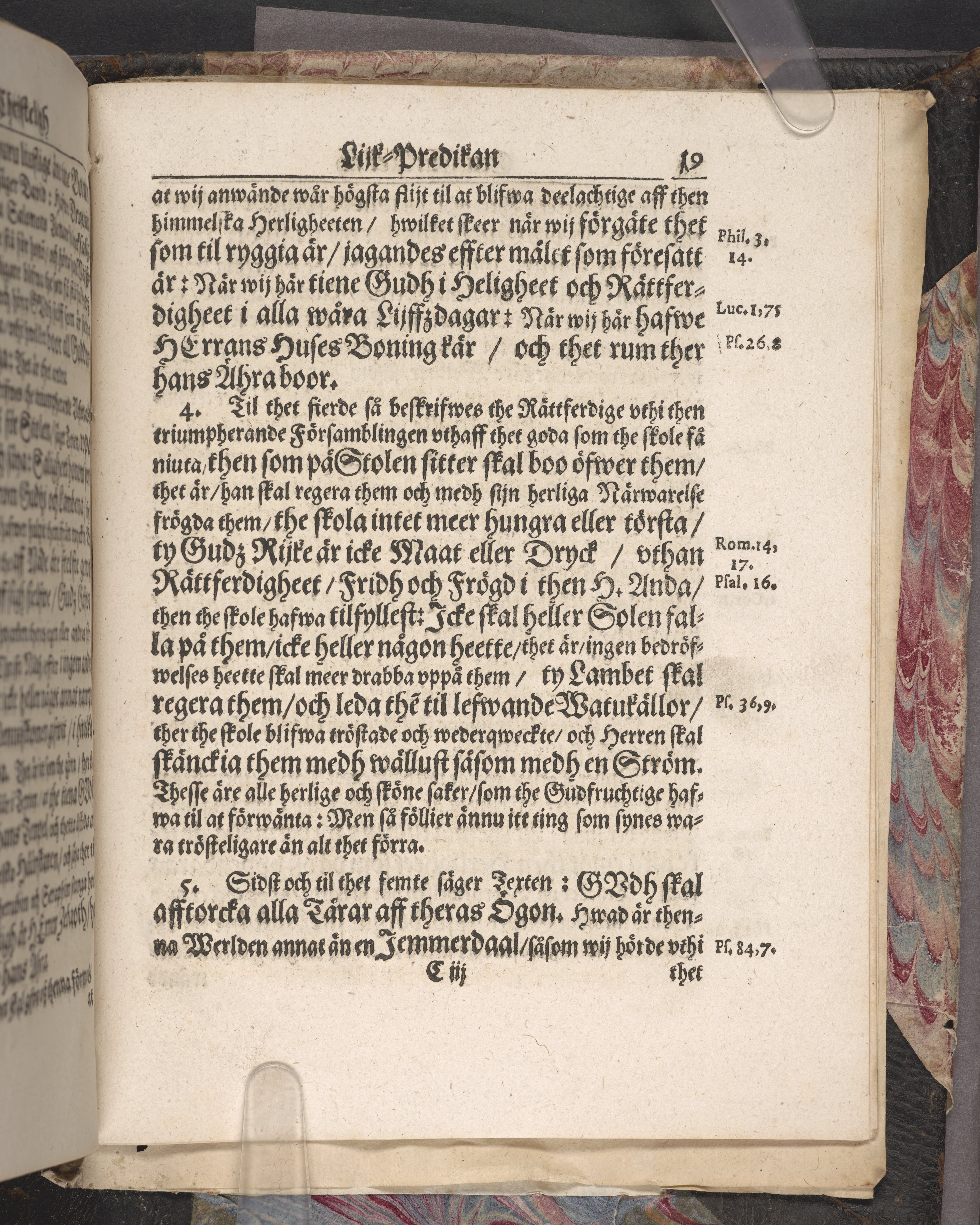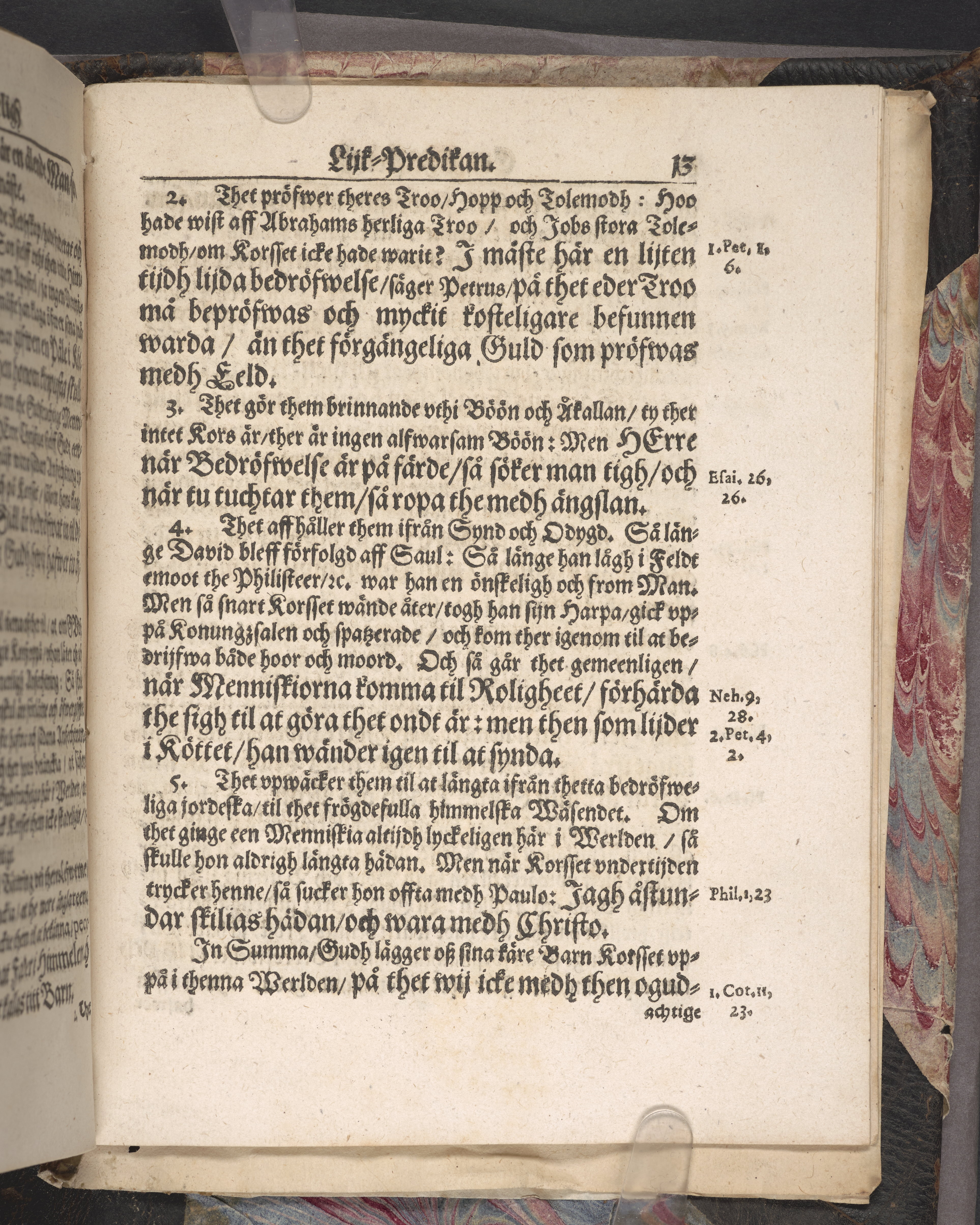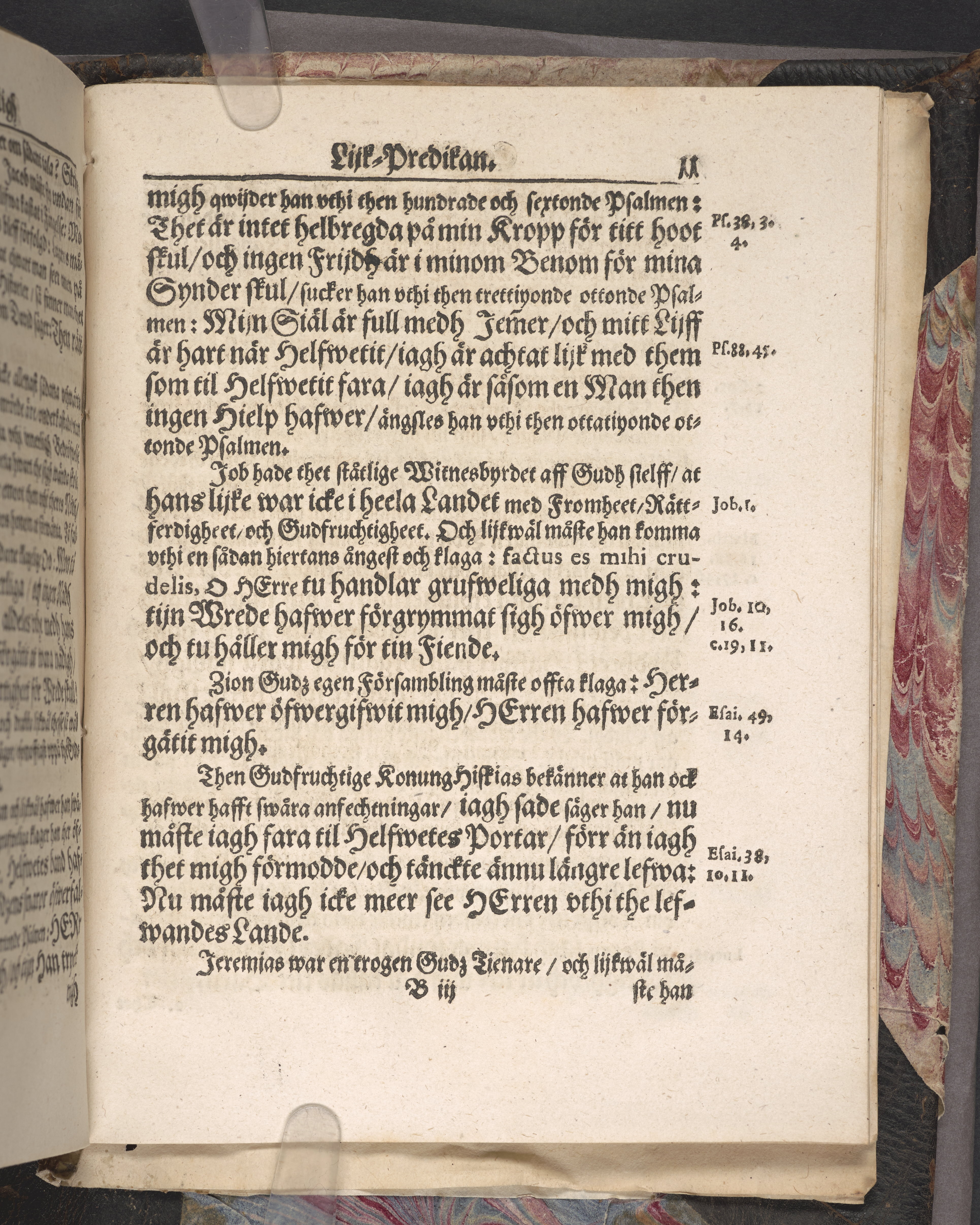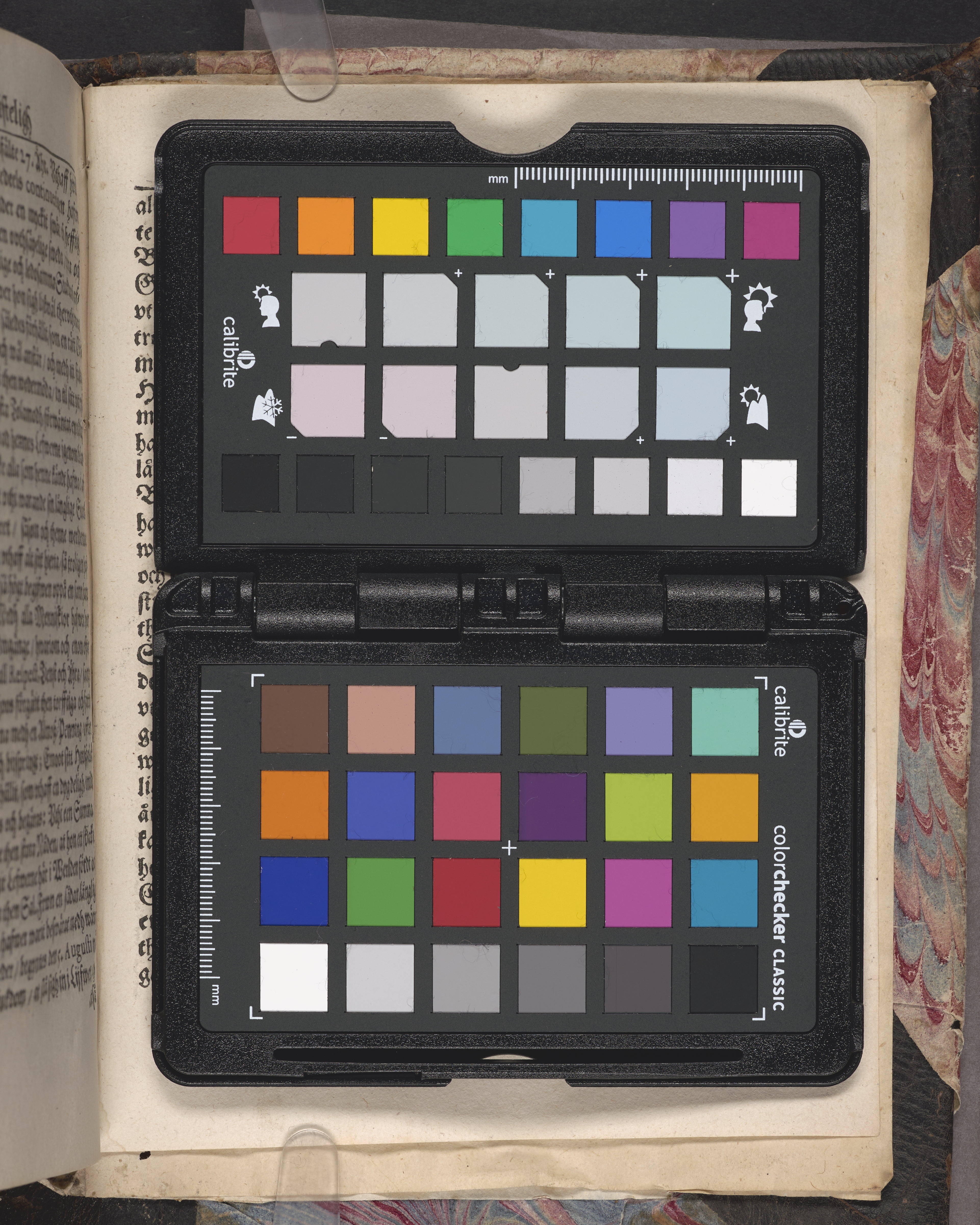 Band m. pärmar av marmorerat papper, rygg och hörn av getskinn. Pärmfyllnad: papp.