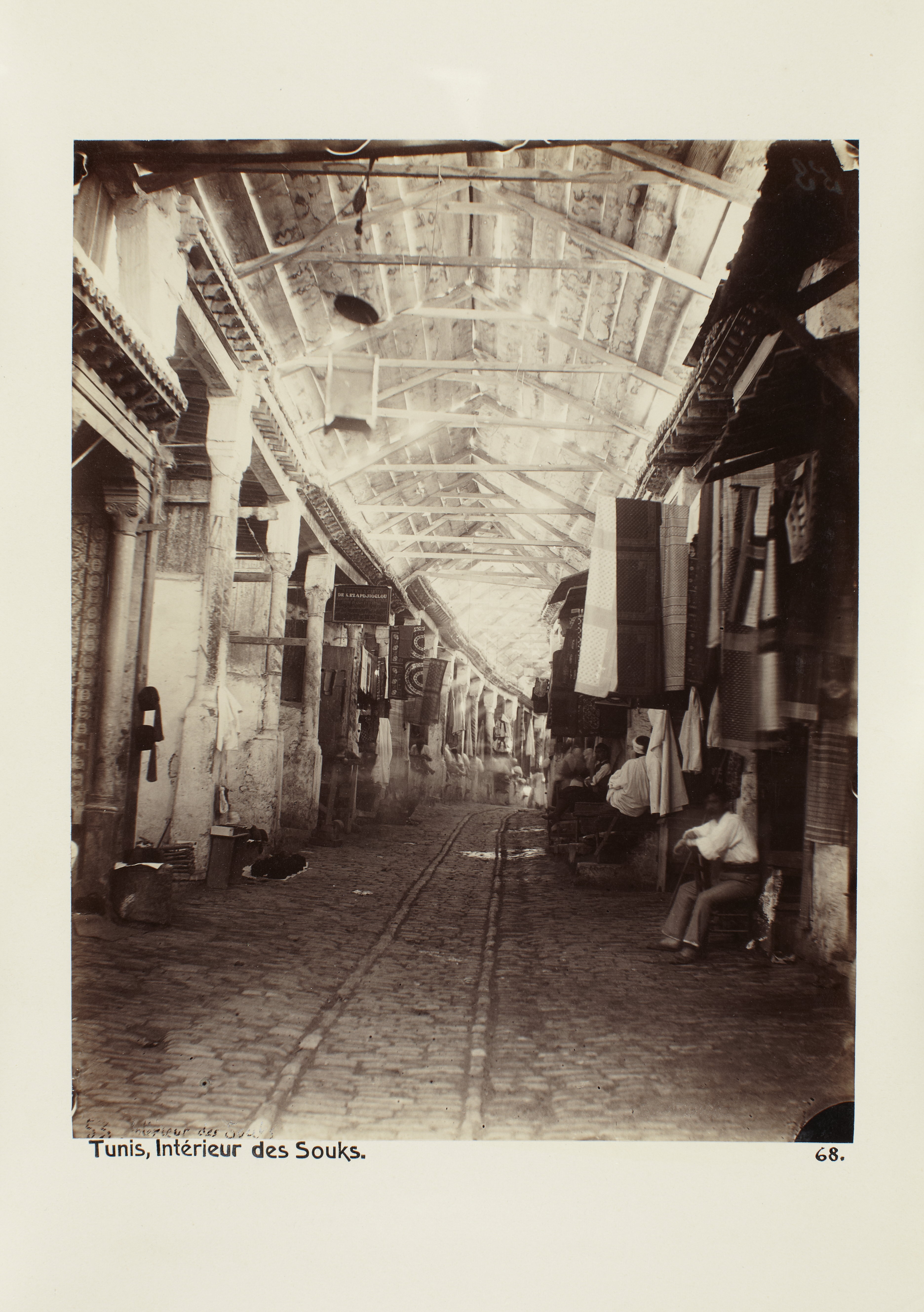 TUNIS, Tunisien. I Souken. Foto från resa genom Algeriet och Tunisien samt åter över Schweiz, 11 februari - 19 maj 1889. Samtliga foton i gruppen LXVI:F. är inköpta av Wilhelmina von Hallwyl i Alger, Biskra, Tunis, Constantine, Oran och Blidah vid hennes vistelse i nämnda städer tillsammans med sin make, Walther von Hallwyl, sin mor, Johanna Kempe, f. Wallis, dottern Irma samt fröknarna Caroline Pflaum och Ida Uhse. Uppgifterna kommer från fröken Ida Uhses reseanteckningar.