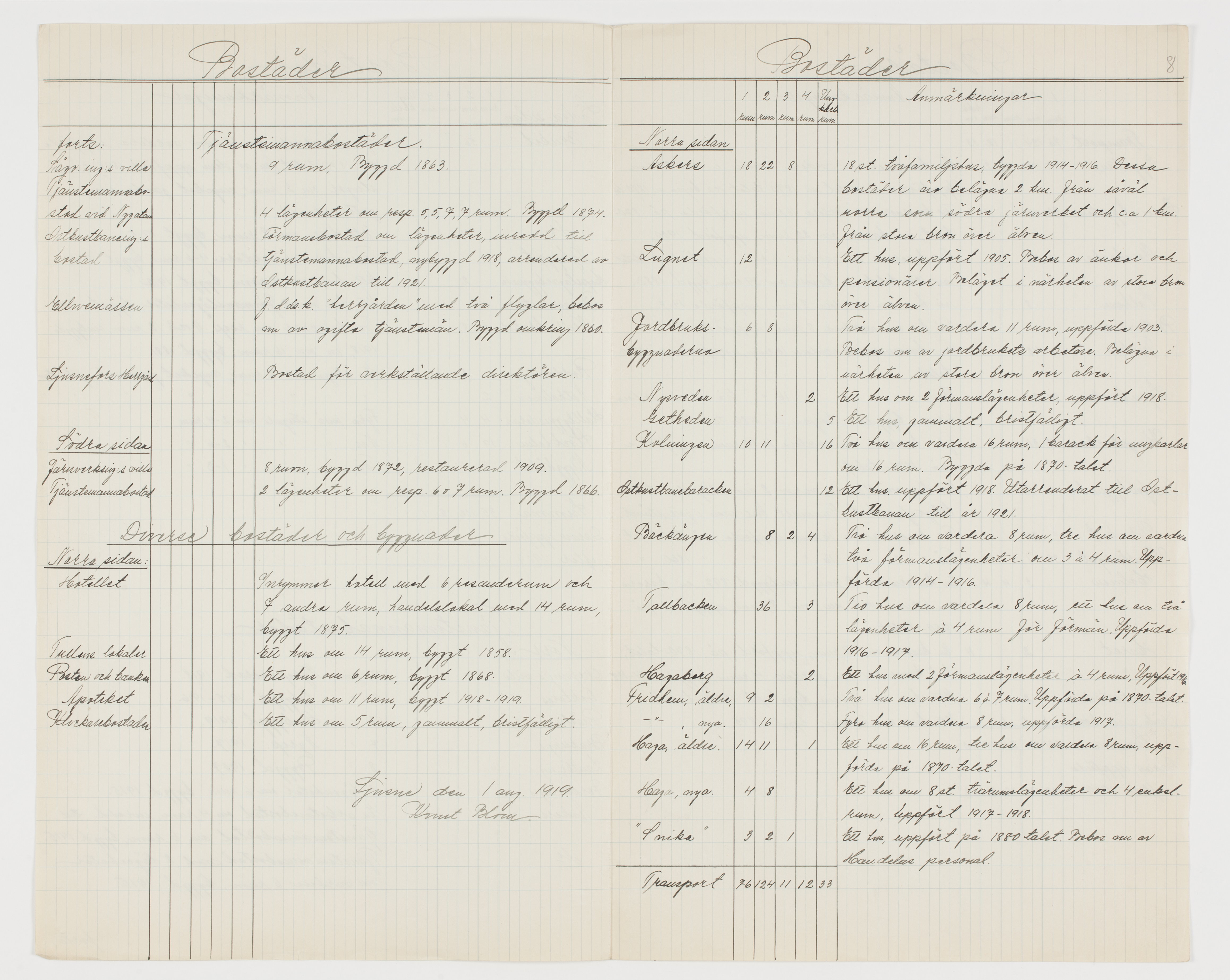 Bostäder Ljusne den 1 aug. 1919. Knut Blom.