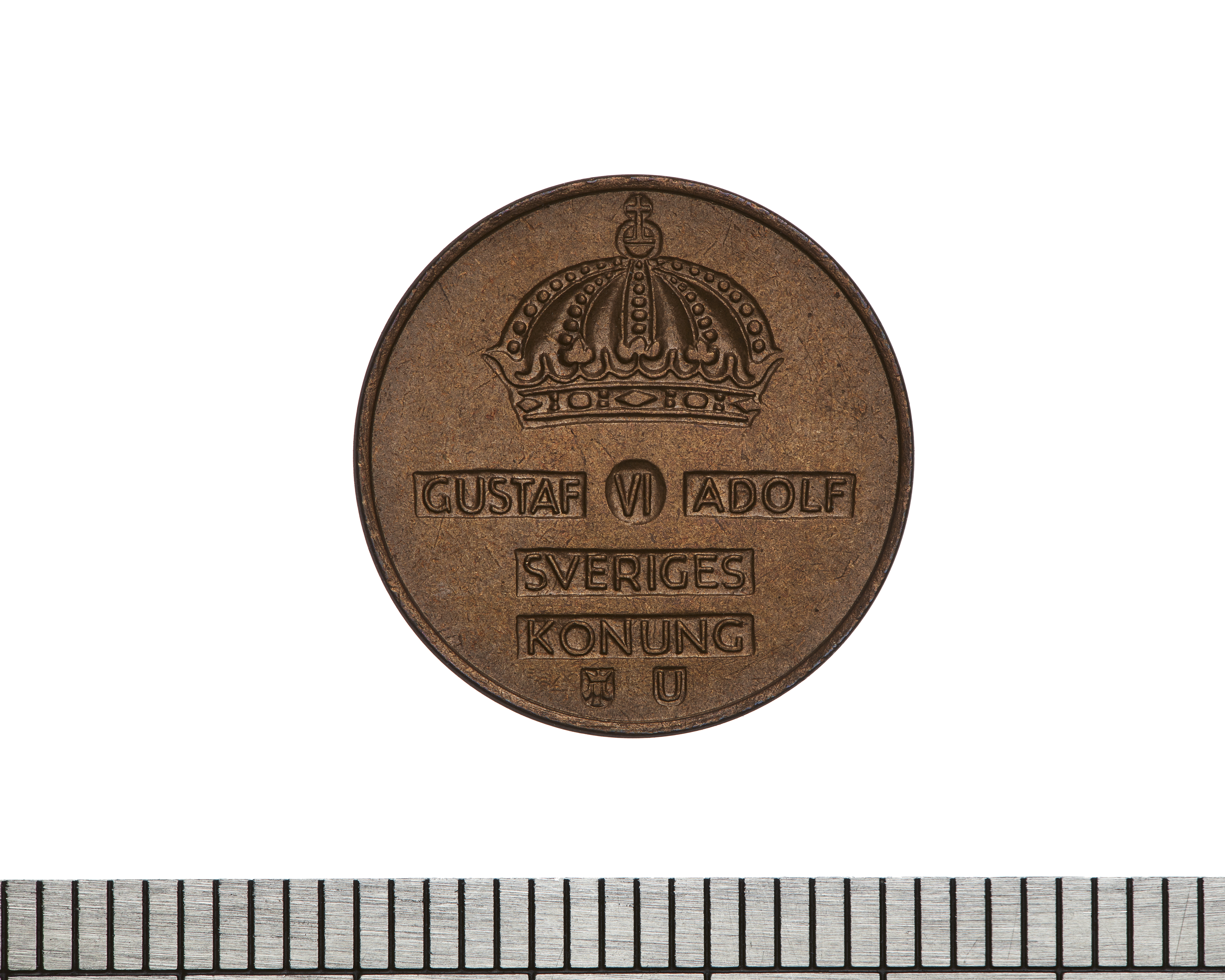 Upphov: Gustaf VI Adolf av Sverige. Media: Bonnevier, Helena. Ekonomiska museet - Kungliga myntkabinettet/SHM, (CC BY 4.0) Du får bearbeta och dela verket för alla ändamål, även kommersiella, så länge du anger upphovsperson och licensgivare.