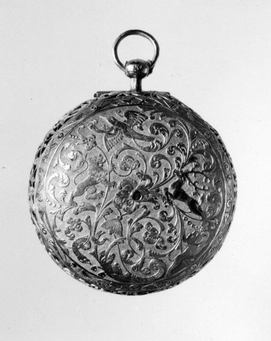 Boett till urverk nr 1120, möjligen tillverkat av boettmakaren (boxmaker) Nathaniel Delander, London, ca l680, den graverade dekoren möjligen utförd av gravören Abraham Martin, London.