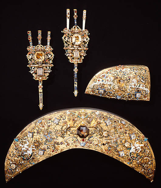 Plymhållare, s.k. ägrett, till Karl IX:s kröningshäst, tillverkad av guldsmeden Ruprecht Miller, Stockholm 1606-1607.
