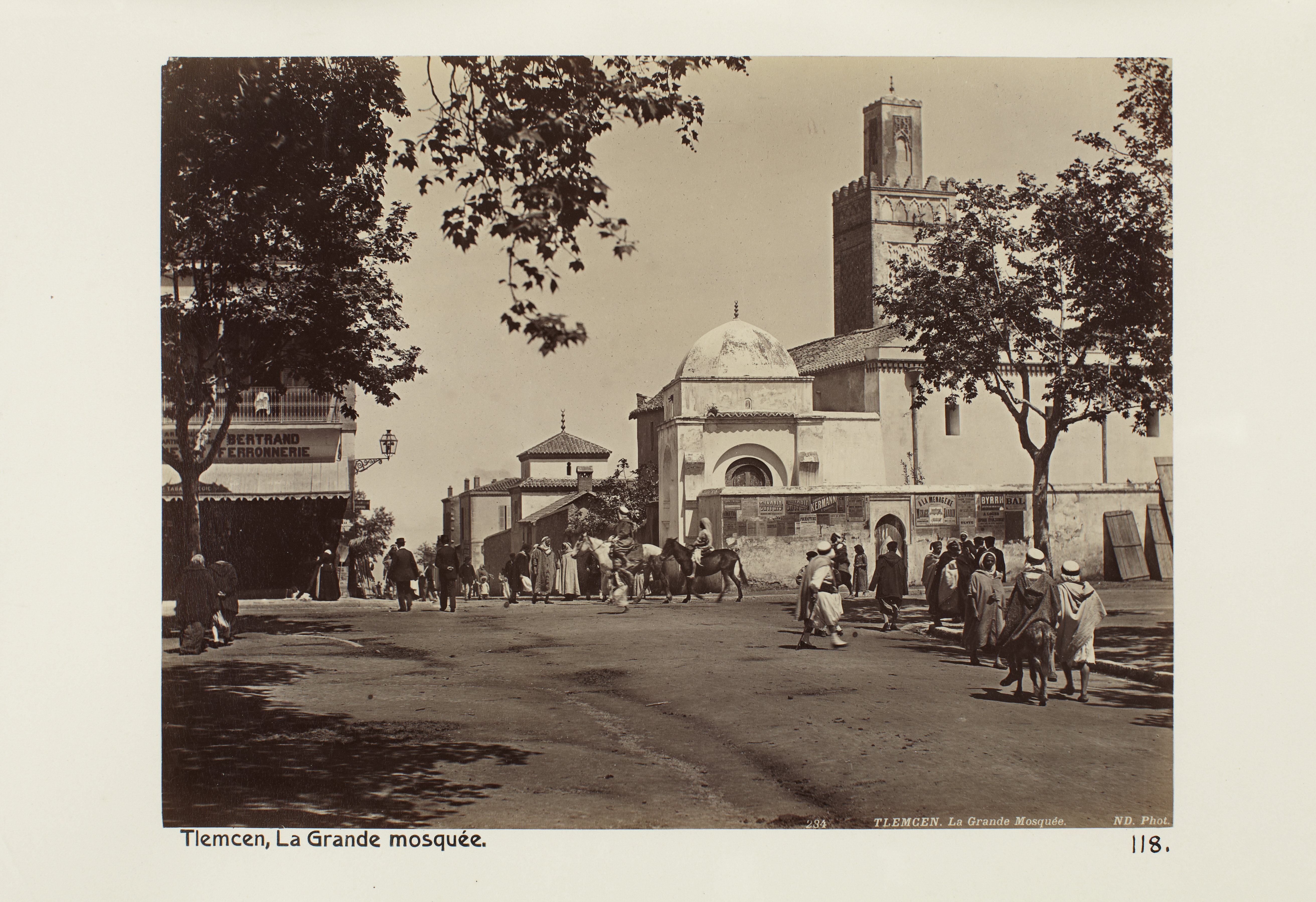 TLEMCEN, Algeriet. Den stora moskén. Foto från resa genom Algeriet och Tunisien samt åter över Schweiz, 11 februari - 19 maj 1889. Samtliga foton i gruppen LXVI:F. är inköpta av Wilhelmina von Hallwyl i Alger, Biskra, Tunis, Constantine, Oran och Blidah vid hennes vistelse i nämnda städer tillsammans med sin make, Walther von Hallwyl, sin mor, Johanna Kempe, f. Wallis, dottern Irma samt fröknarna Caroline Pflaum och Ida Uhse. Uppgifterna kommer från fröken Ida Uhses reseanteckningar.