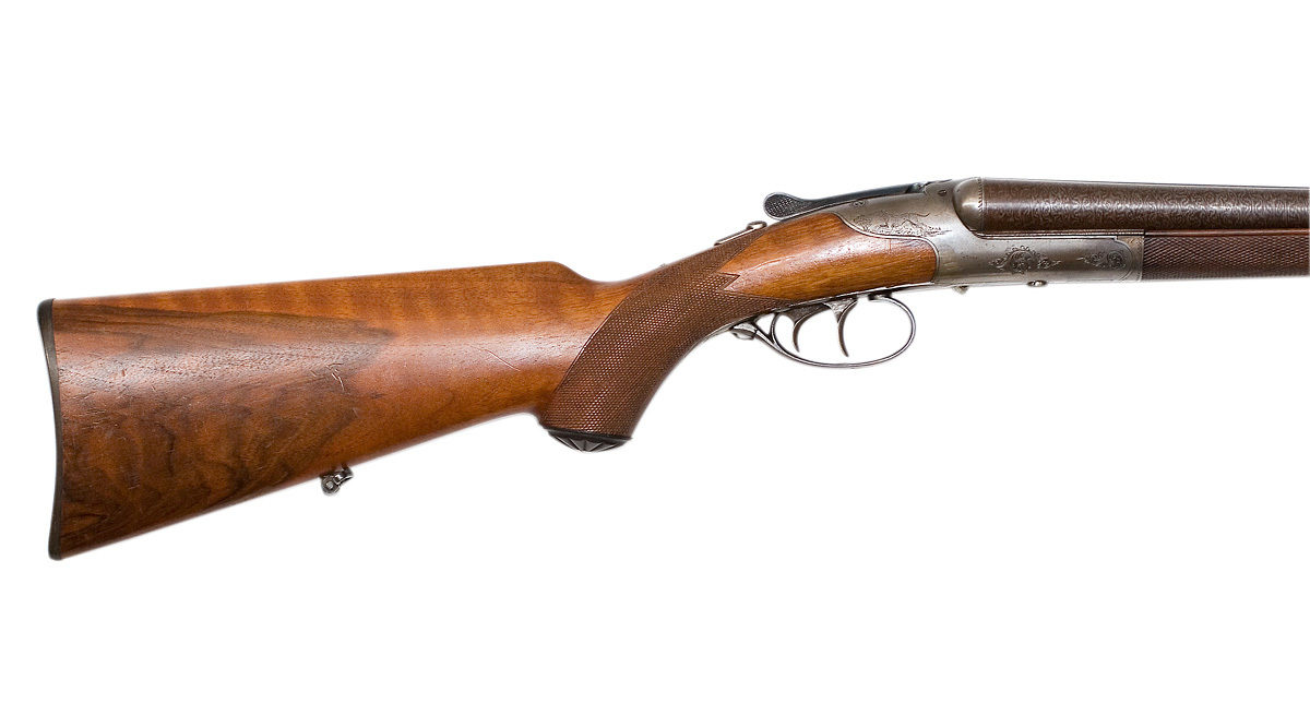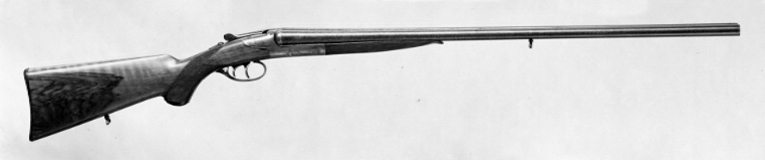 Dubbelbössa med invändigt lås, slutning med toppnyckel, C H Blomstrand, Eskilstuna ca 1880.