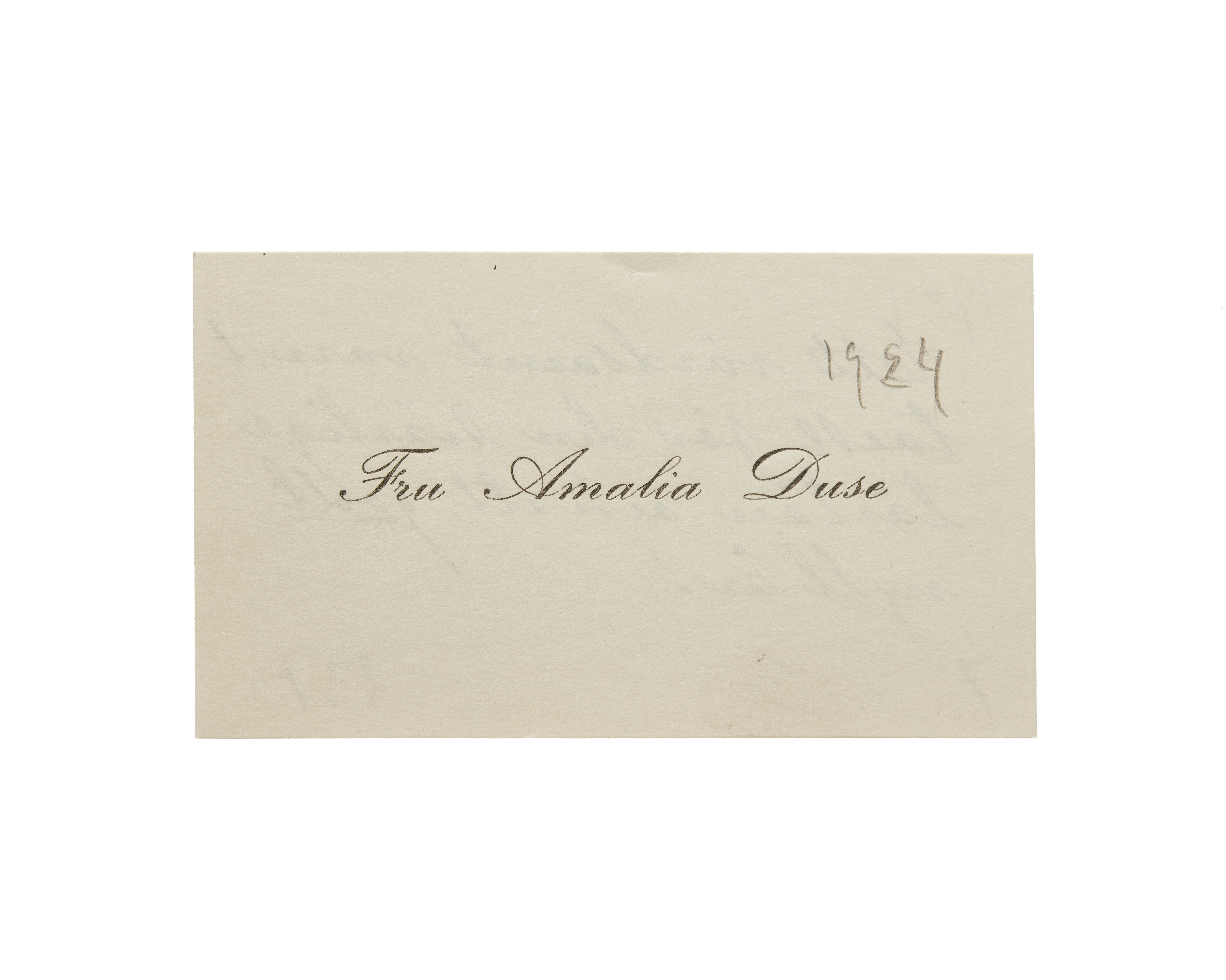 Visitkort från Amalia Duse f. Hansen.