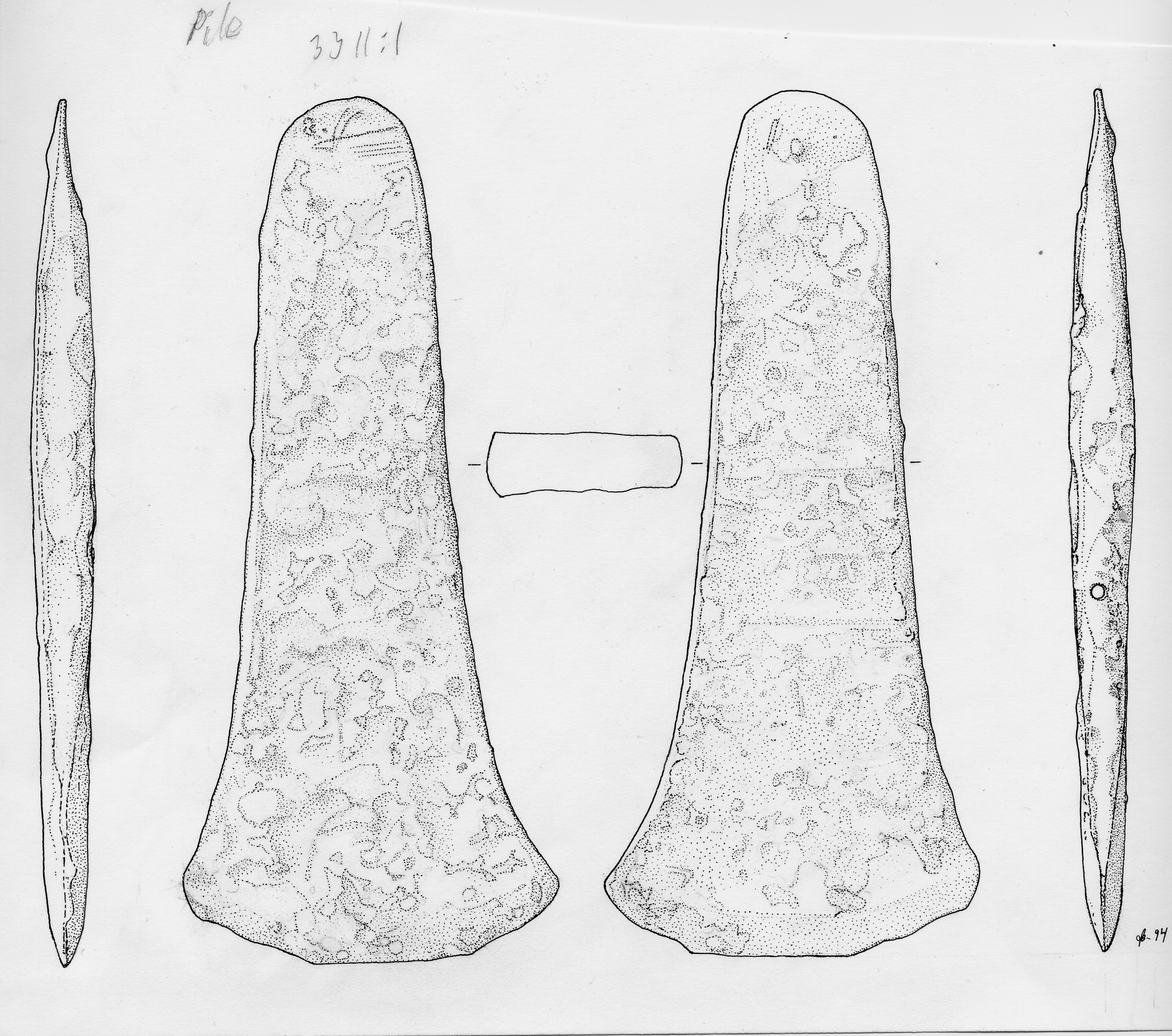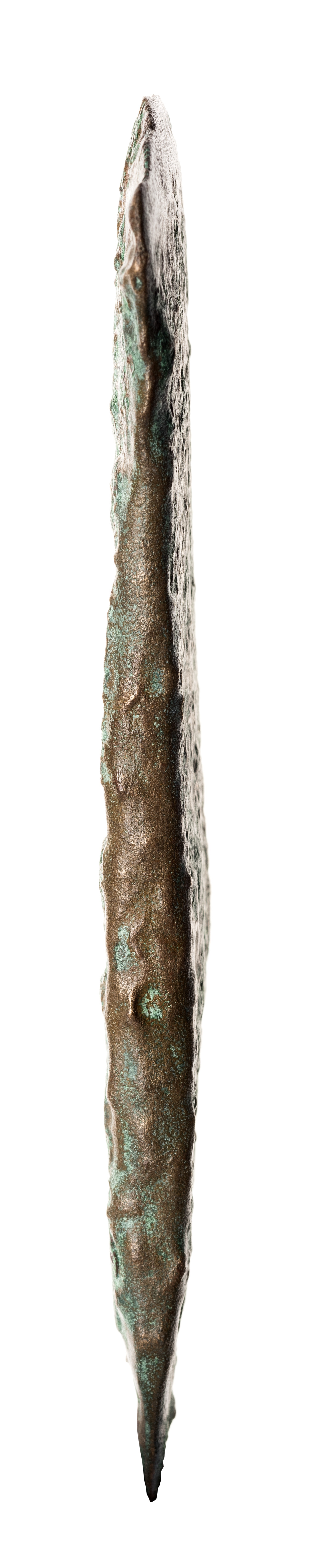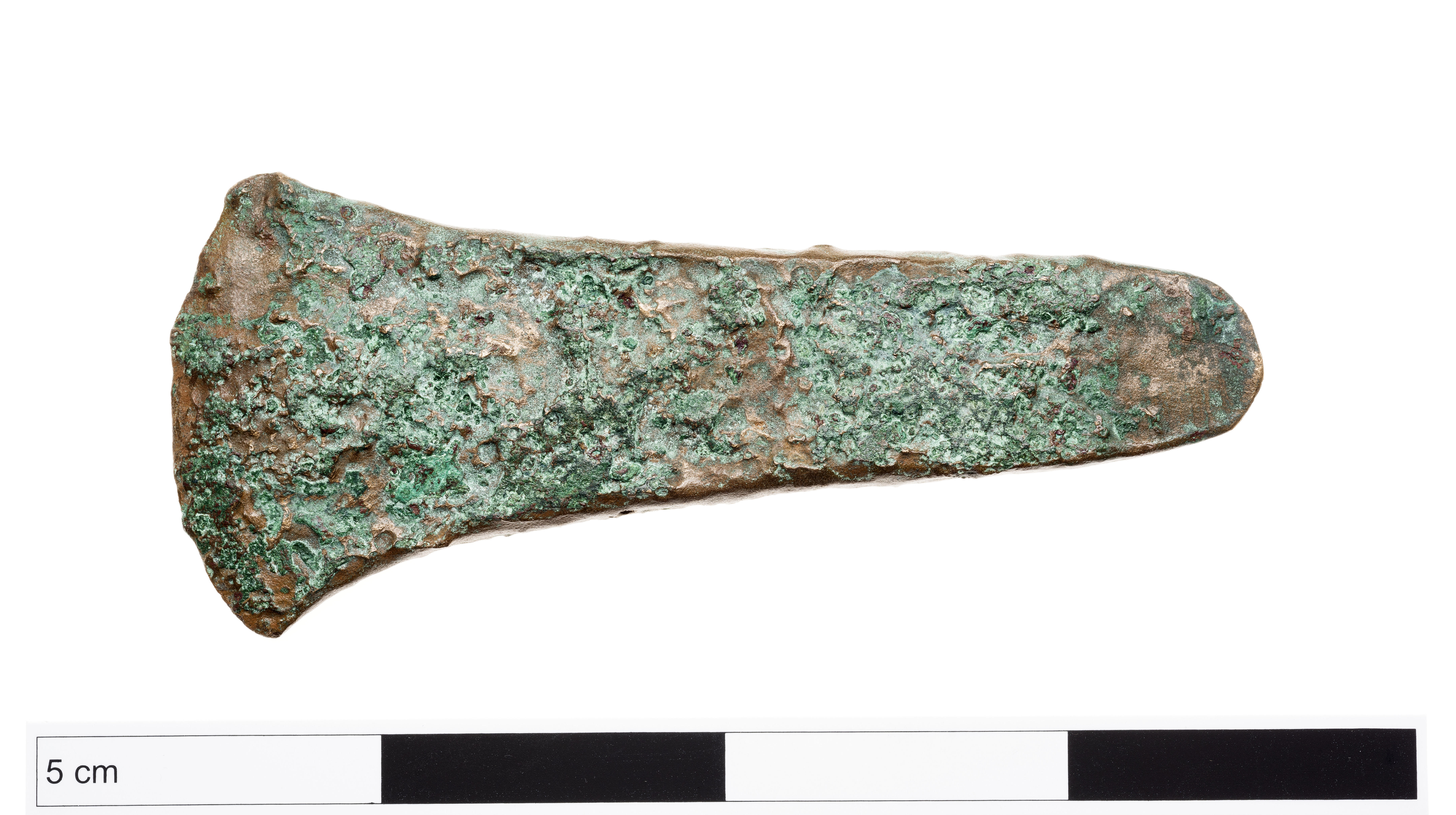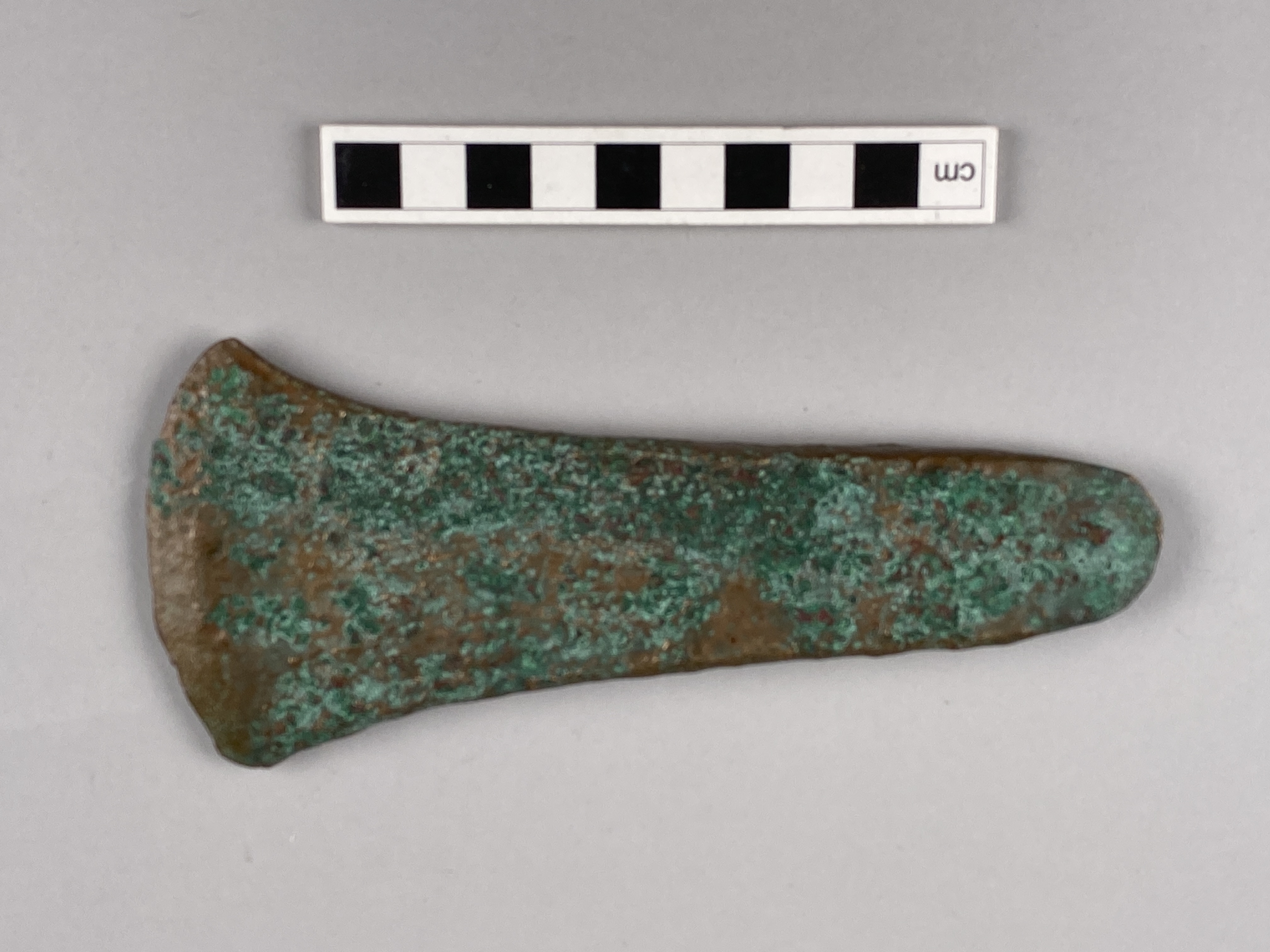 Flatyxa av brons med svaga antydningar till kanter.