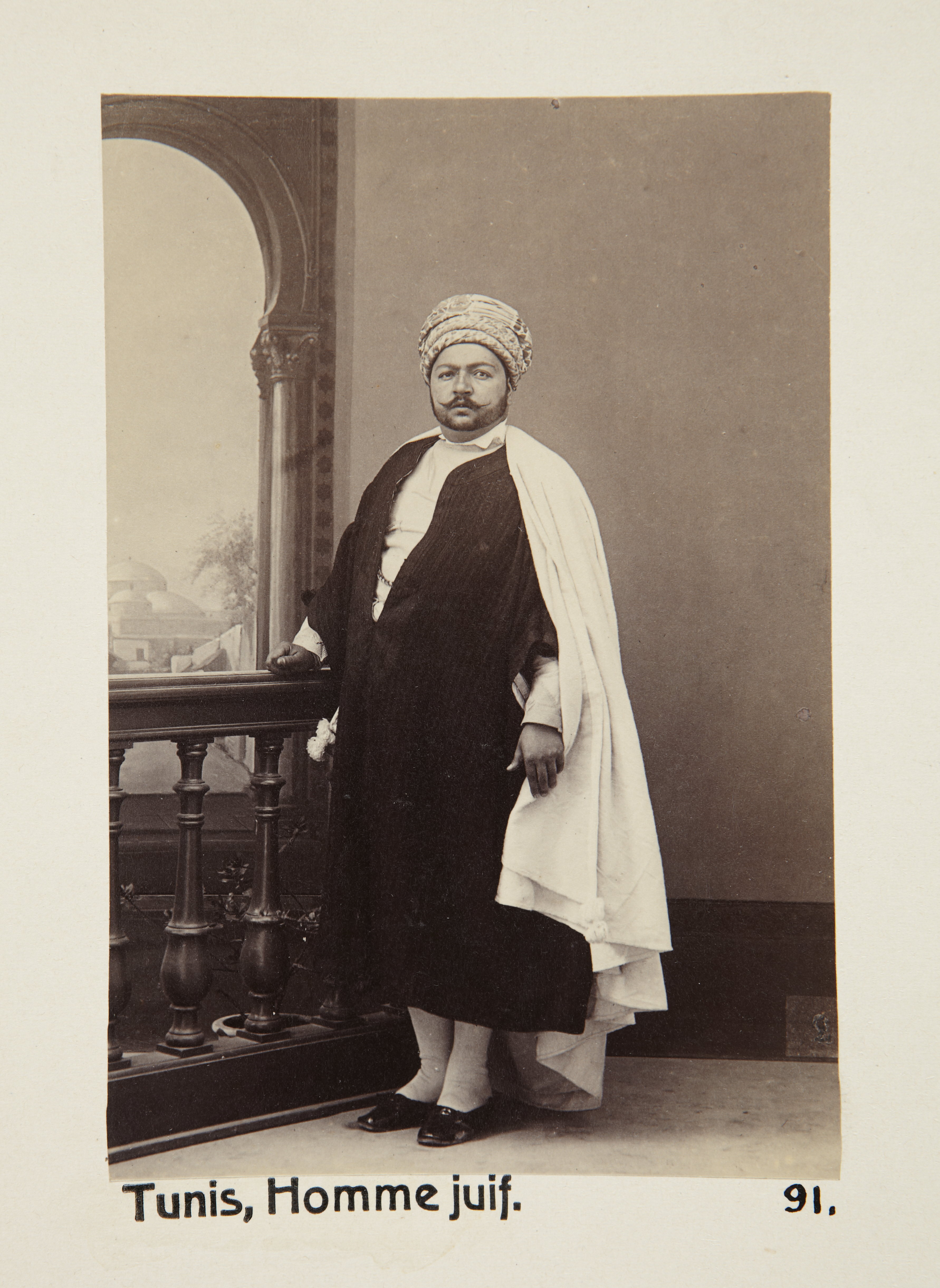 TUNIS, Tunisien. Judisk man. Foto från resa genom Algeriet och Tunisien samt åter över Schweiz, 11 februari - 19 maj 1889. Samtliga foton i gruppen LXVI:F. är inköpta av Wilhelmina von Hallwyl i Alger, Biskra, Tunis, Constantine, Oran och Blidah vid hennes vistelse i nämnda städer tillsammans med sin make, Walther von Hallwyl, sin mor, Johanna Kempe, f. Wallis, dottern Irma samt fröknarna Caroline Pflaum och Ida Uhse. Uppgifterna kommer från fröken Ida Uhses reseanteckningar.