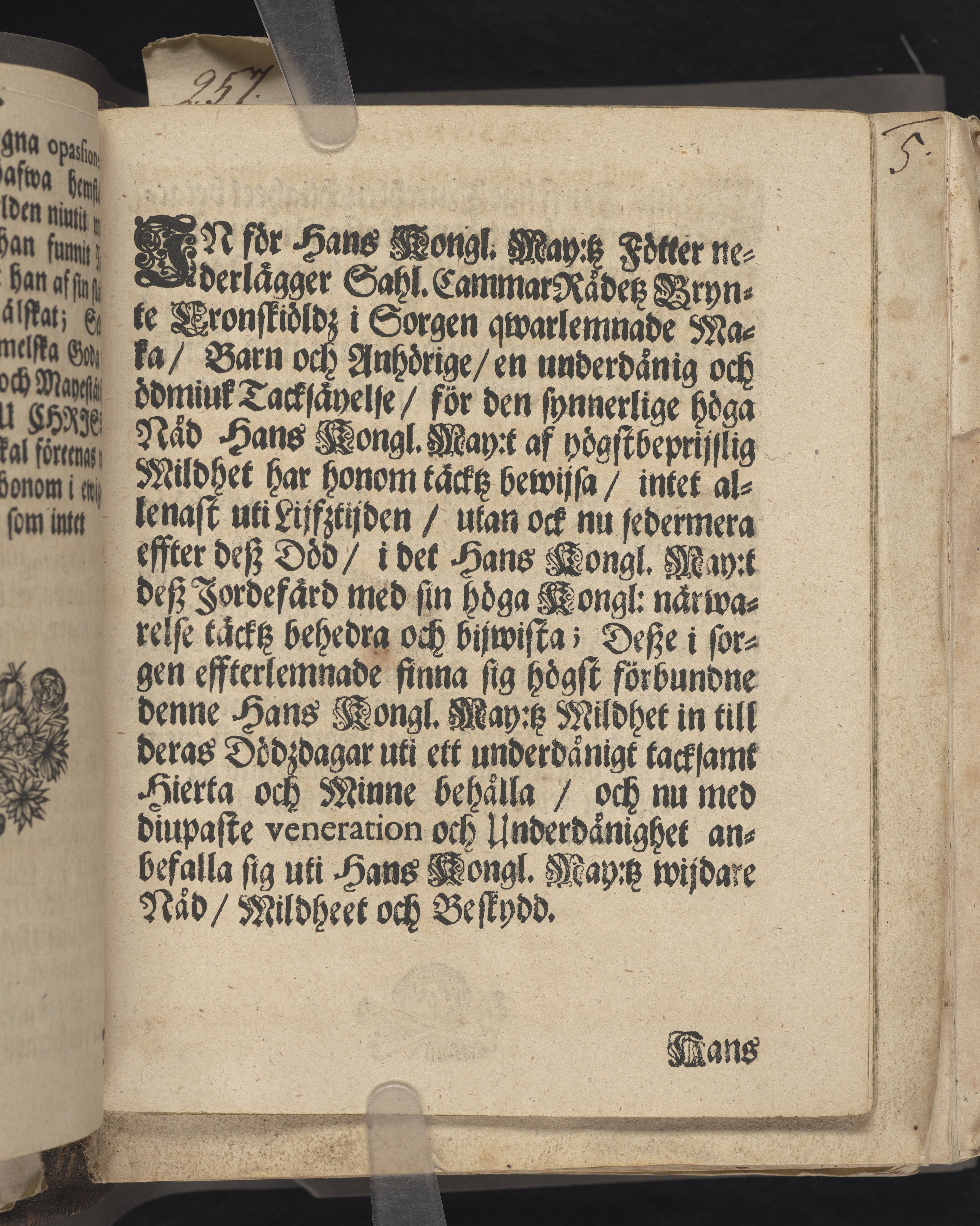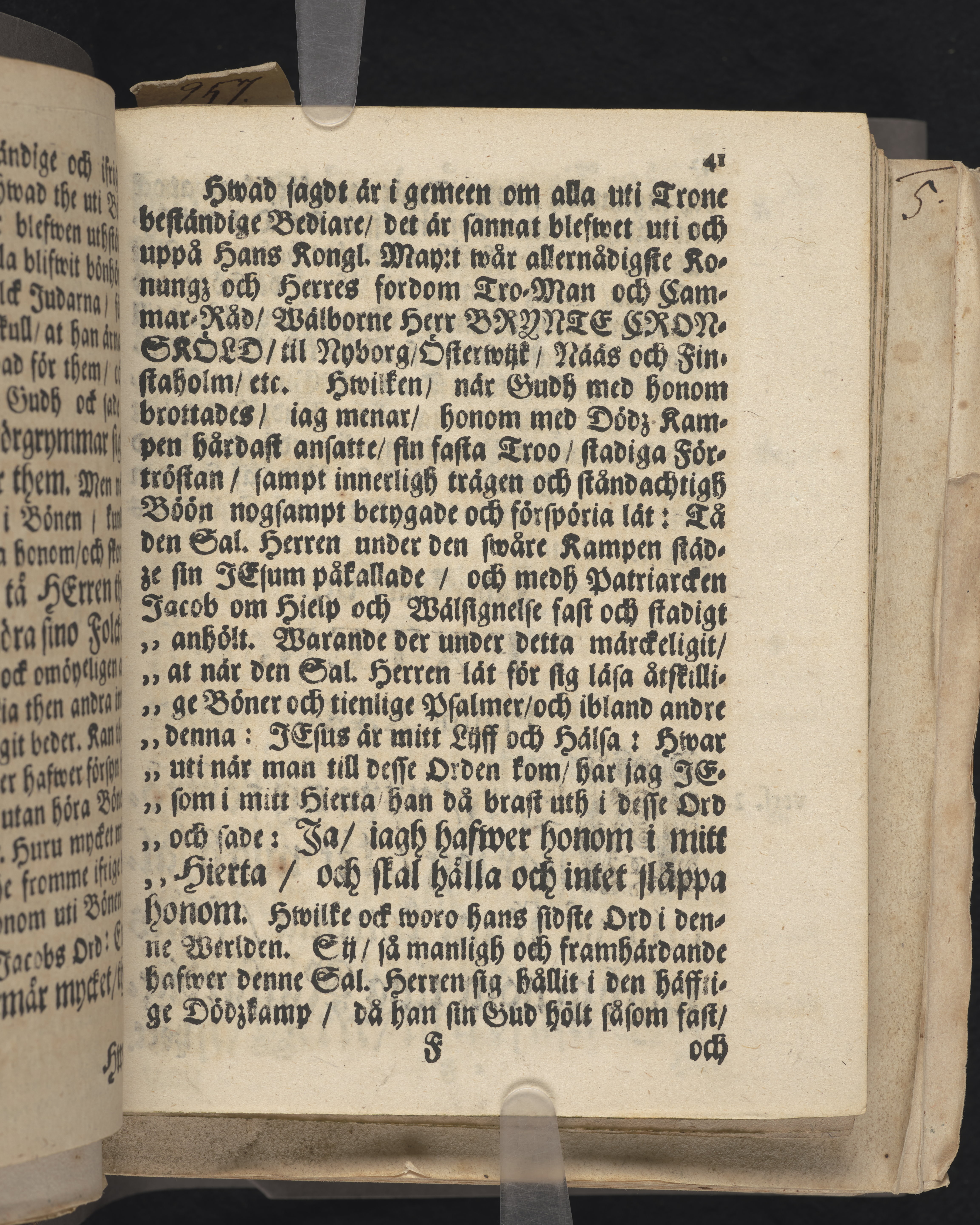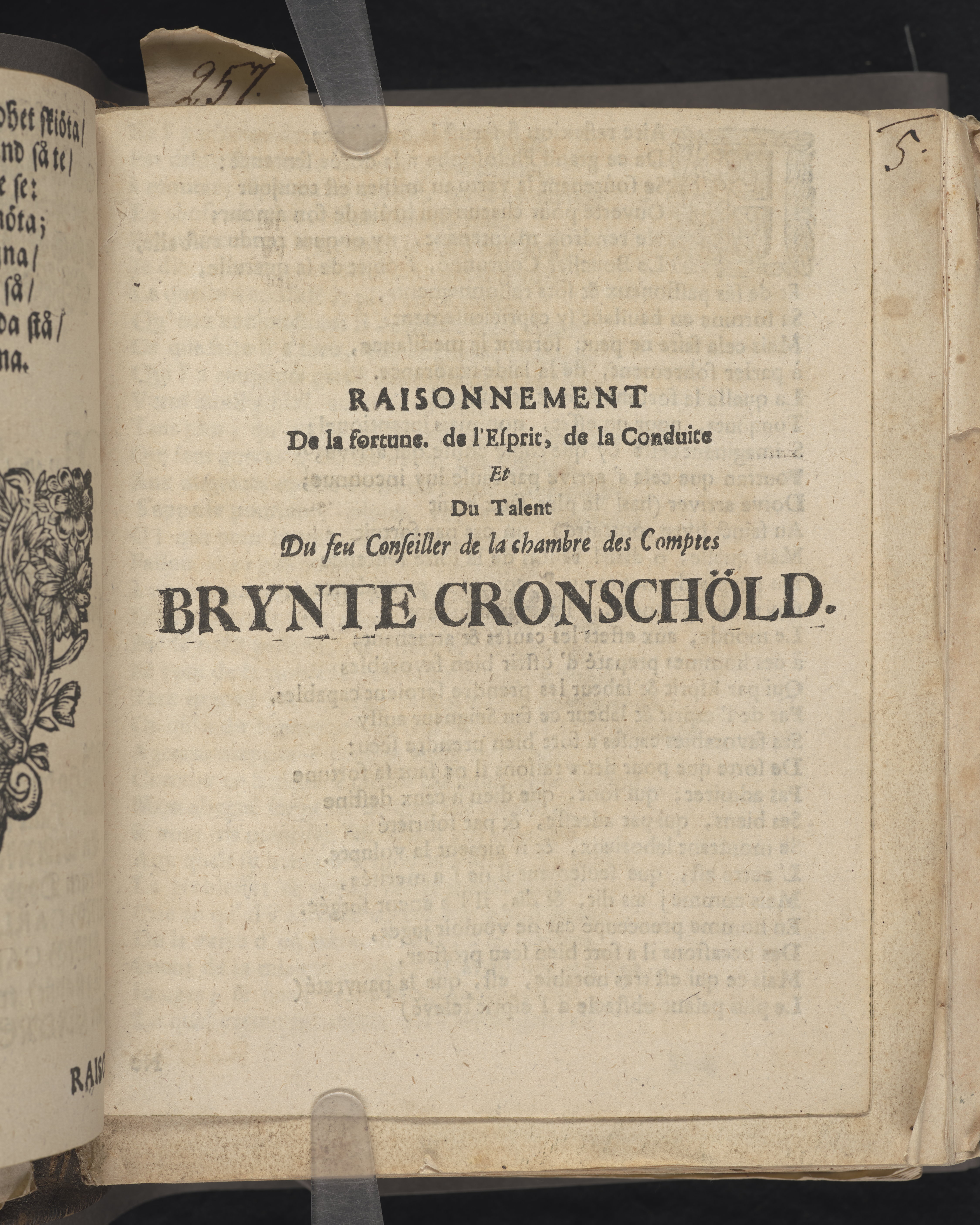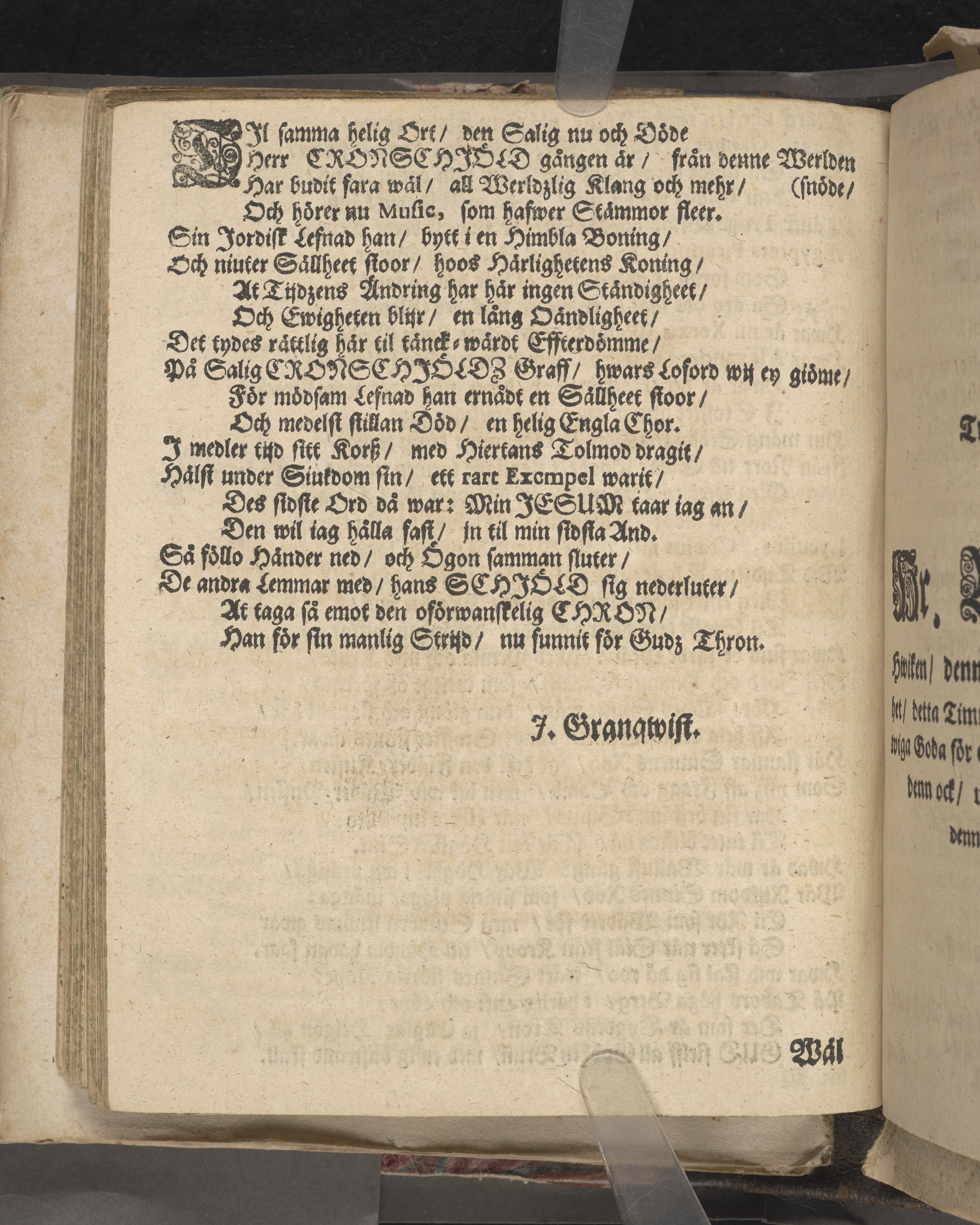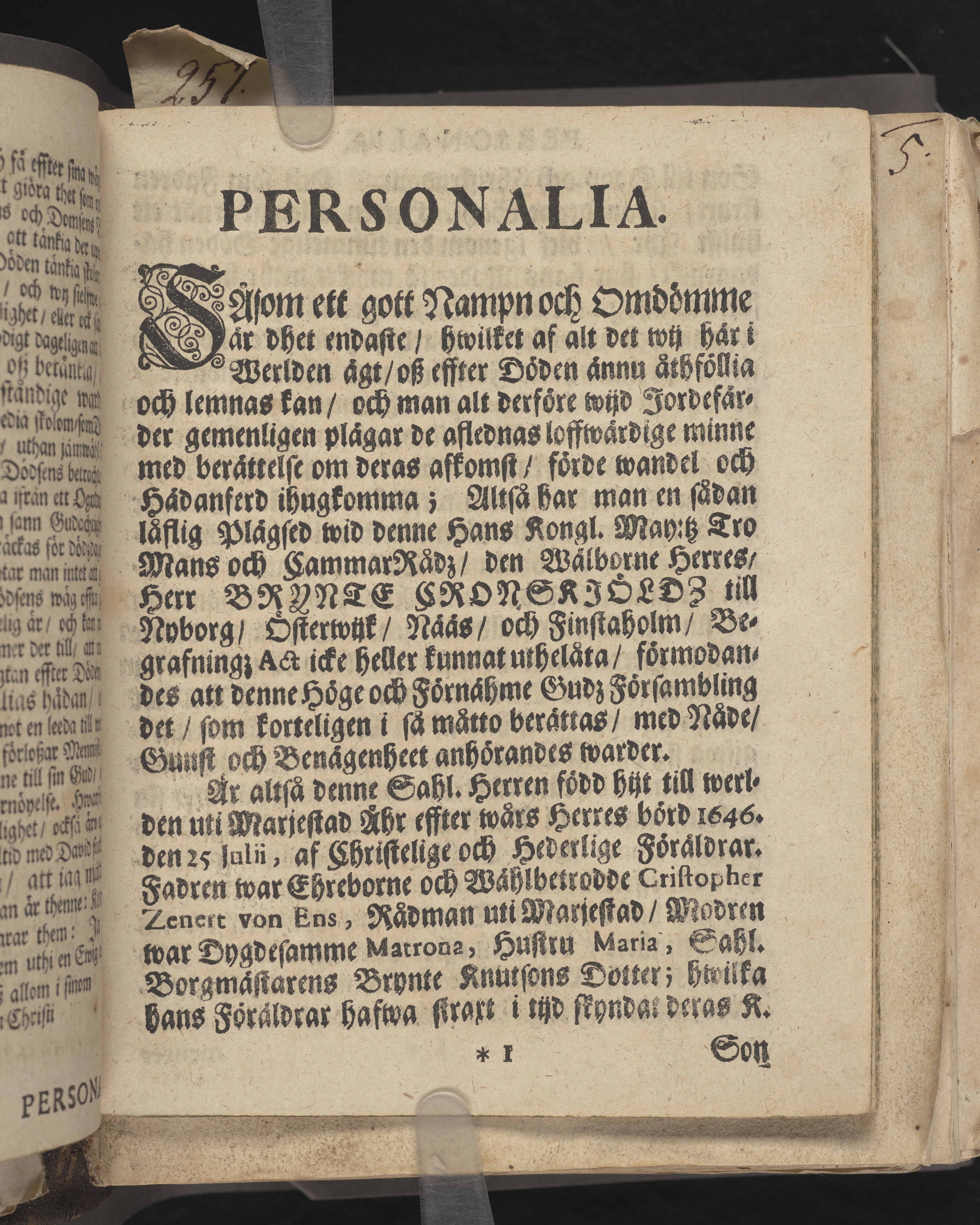 Gudz barnas wandring till döden ... förestält uti en christelig lijkpredikan, då ... Hr. Brynte Cronskiöld, til Nyborg, Österwijk ... blef beledsagat till sitt hwilorum, uthi St. Jacobs kyrkia i Stockholm den 31 maji, åhr 1689. Af Samuele Wirænio ep. Wex. Tryckt i Kongl. booktryckarens sal: Niclas Wankijfs tryckerij.