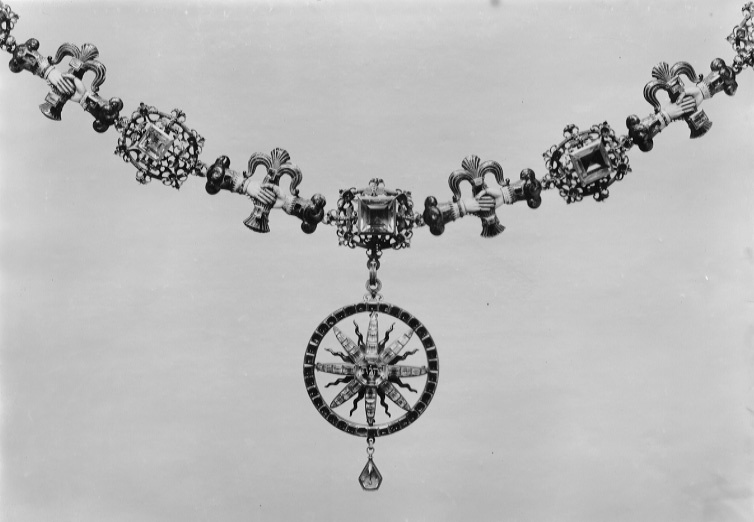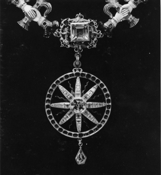 Ordenstecken, klenod, Jehovaorden, Sverige, tillverkad av Antonij Groot d.ä., Stockholm 1606, Troligen buren av Karl IX vid kröningen i Uppsala 1607-03-15.