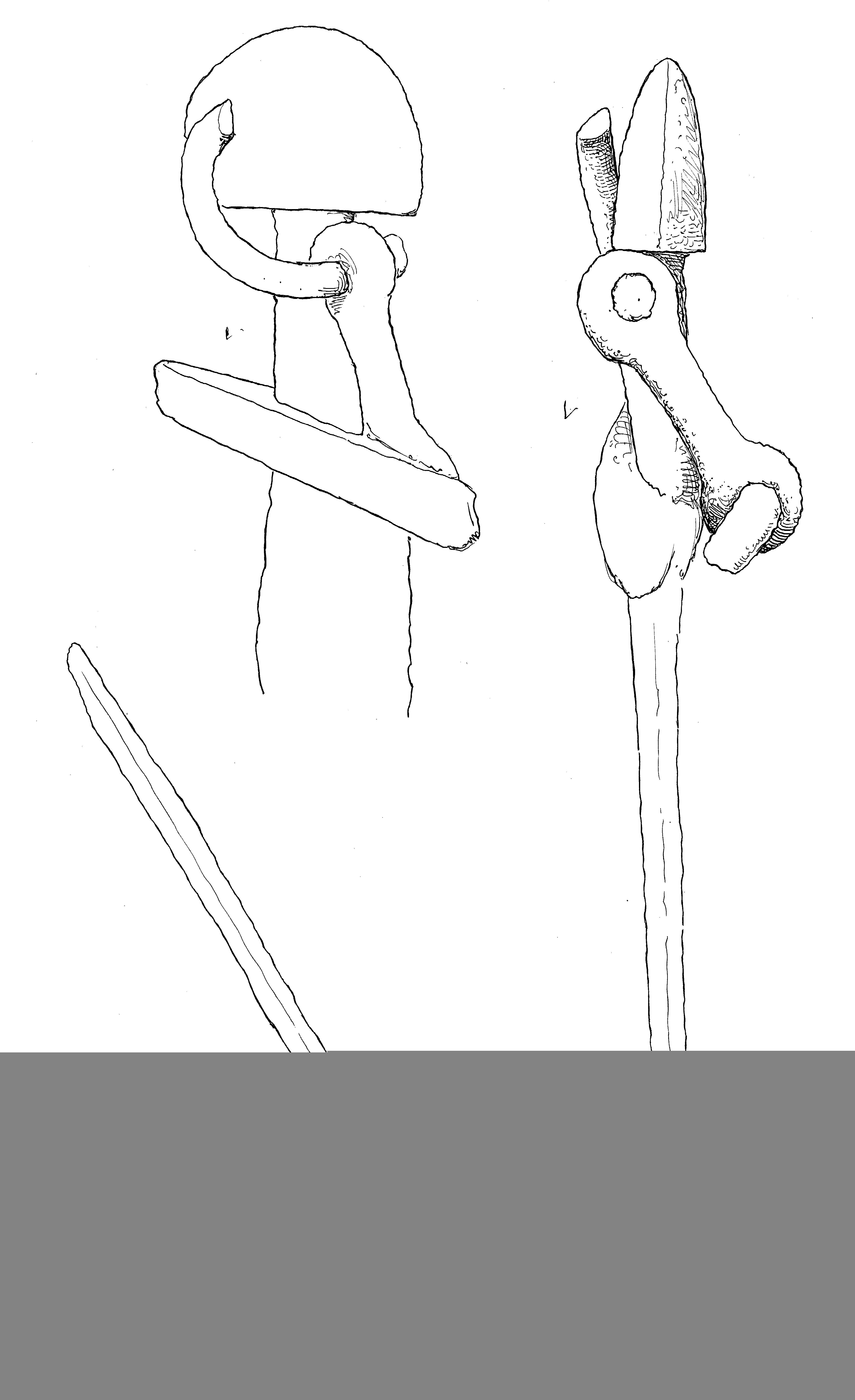 Svärdet böjt på ett ställe. Svärdsknappen avbruten från fästet.