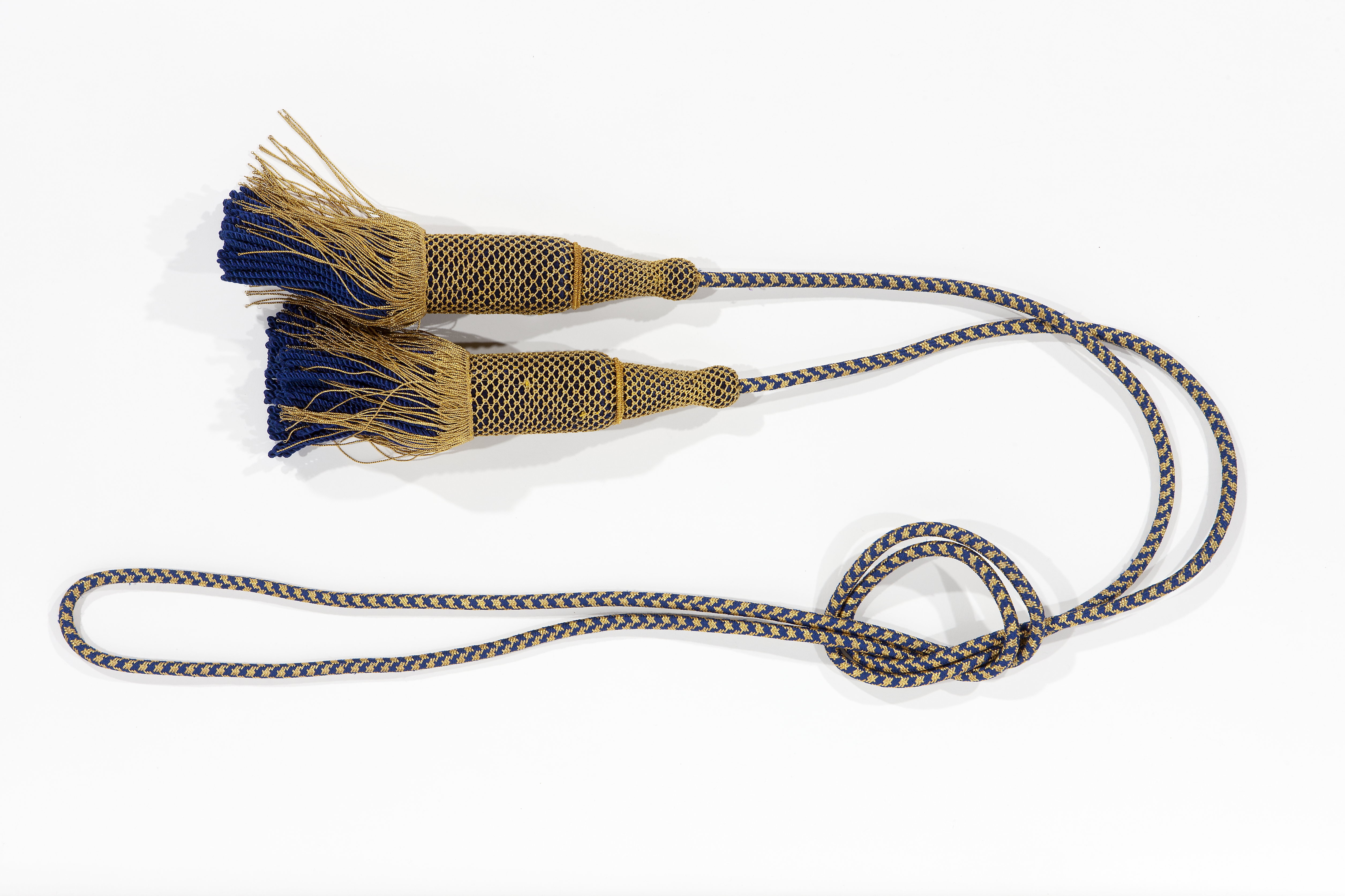 Kordong i form av snodd med runt tvärsnitt av blått silke och guldtråd. Avslutat i båda ändar med pomponger av blått silke överspunna med nät av guldtråd samt med öppna tofsar av grovt silke, blått med ett yttre lager av tunn tvinnad guldtråd. Oscar II erhöll denna värdighet 1881-05-17 av drottning Victoria på slottet i Windsor.