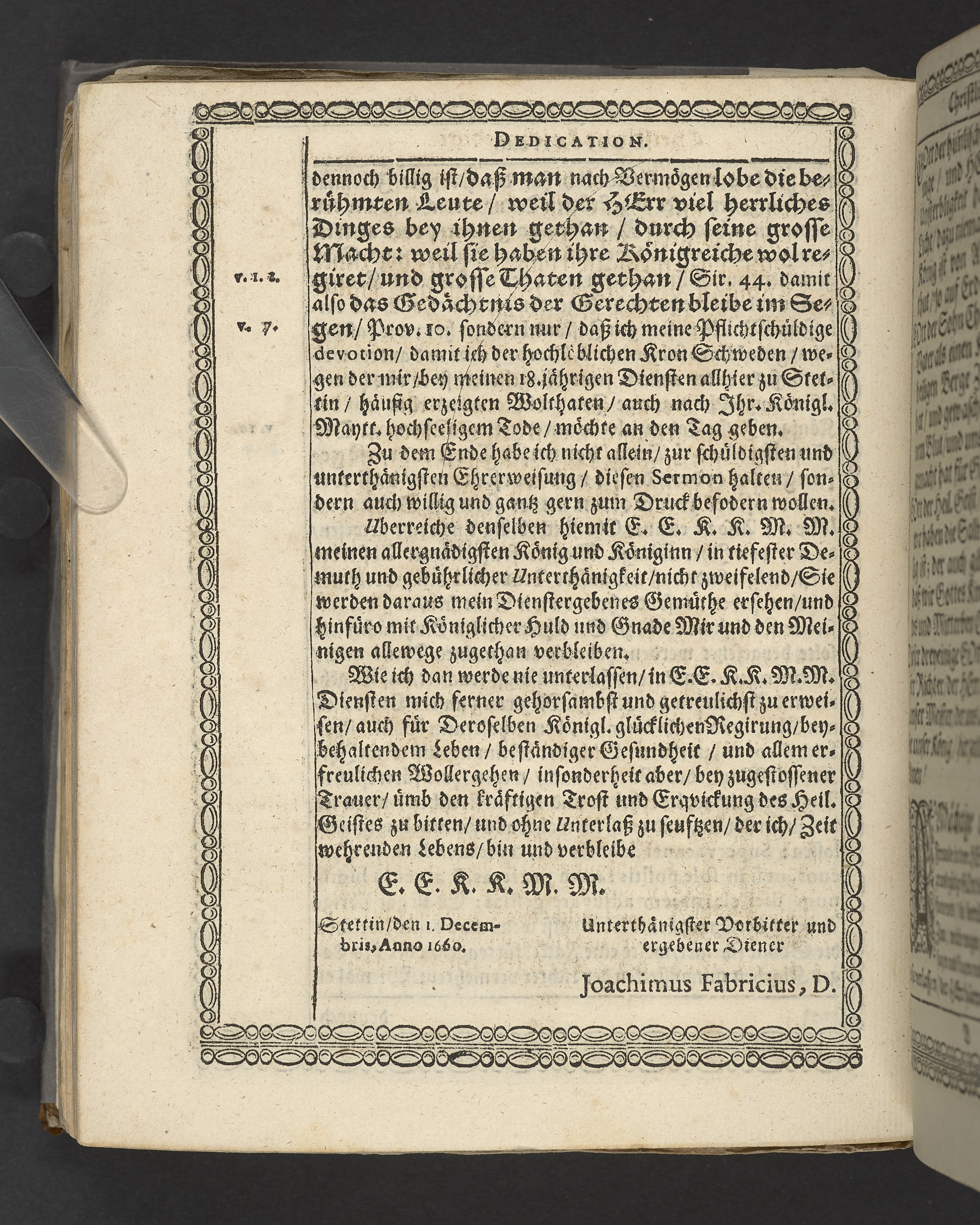 Imperterritus leonis animus, der unerschrockene Löwenmuth, am Tage der ... Leichbestätigung, des ... Herrn Carl Gustav, der Schweden, Gothen und Wenden Königes ... in S. Marien Stifts-Kirchen zu Alten-Stettin, in ... Leich-Predigt zu betrachten fürgestellet von Joachim Fabricio ... Gedruckt zu Alten Stettin, bey Georg Götzken ... 1660.