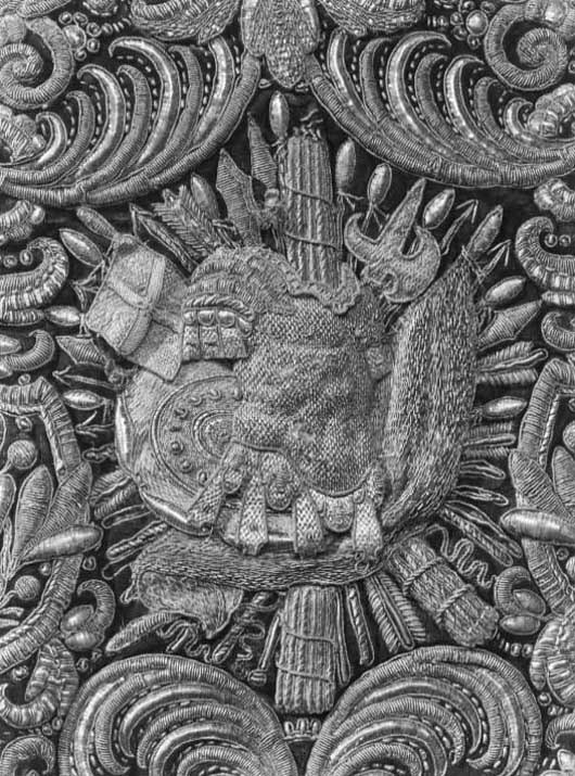 Ett av två utstlag (6048-6049) till drottning Kristinas kröningskaross med trofémotiv, Paris 1650.