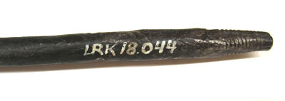 1900-tal. Ur bössmakare Johan Rings verkstad. Av mörkt stål. Långsmal rundsmidd stång, bakre änden svagt konisk och räfflad, L 14 mm. Främre änden formad till skålad borr, L 65 mm.