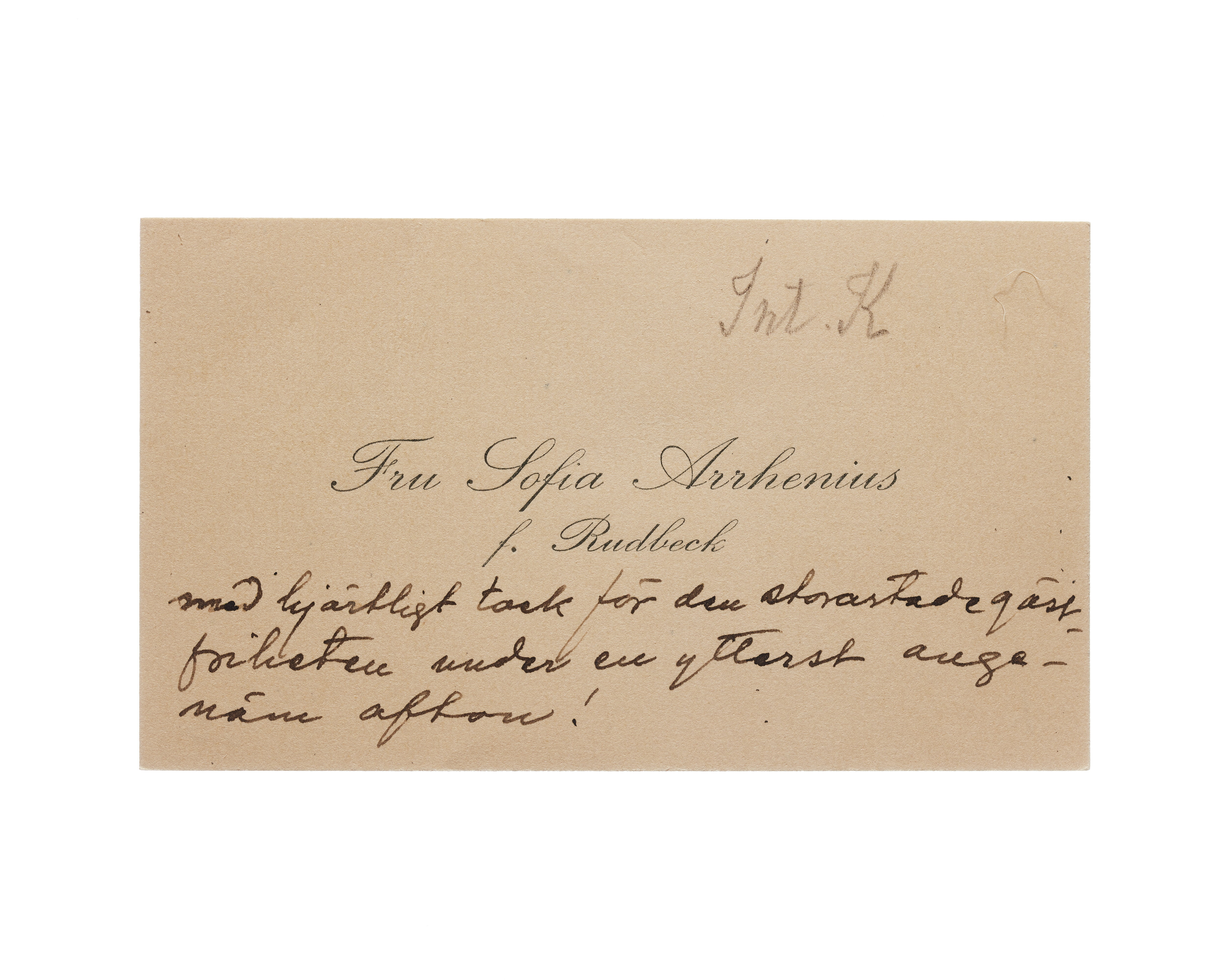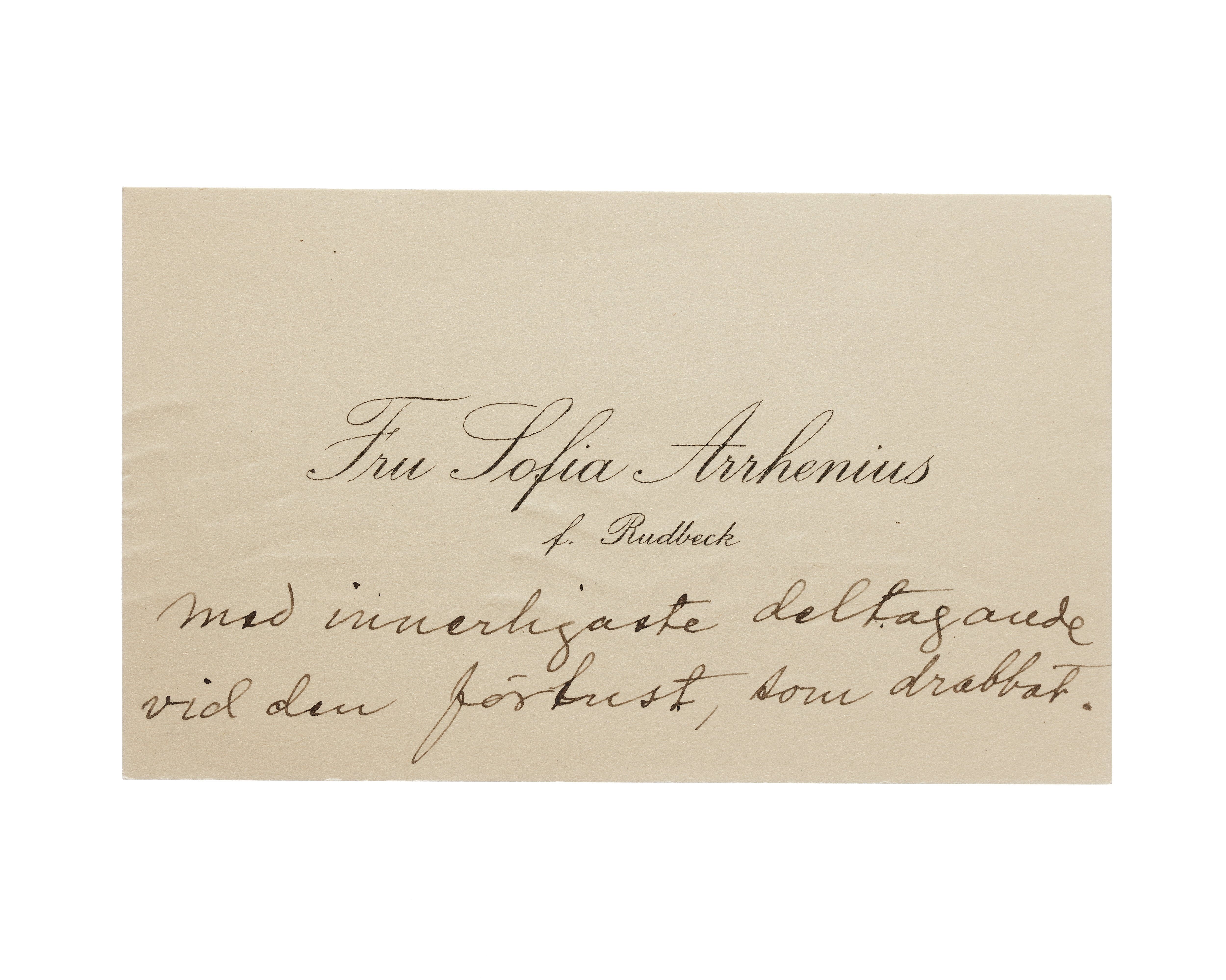 Visitkort från fru Sofia Arrhenius född Rudbeck.