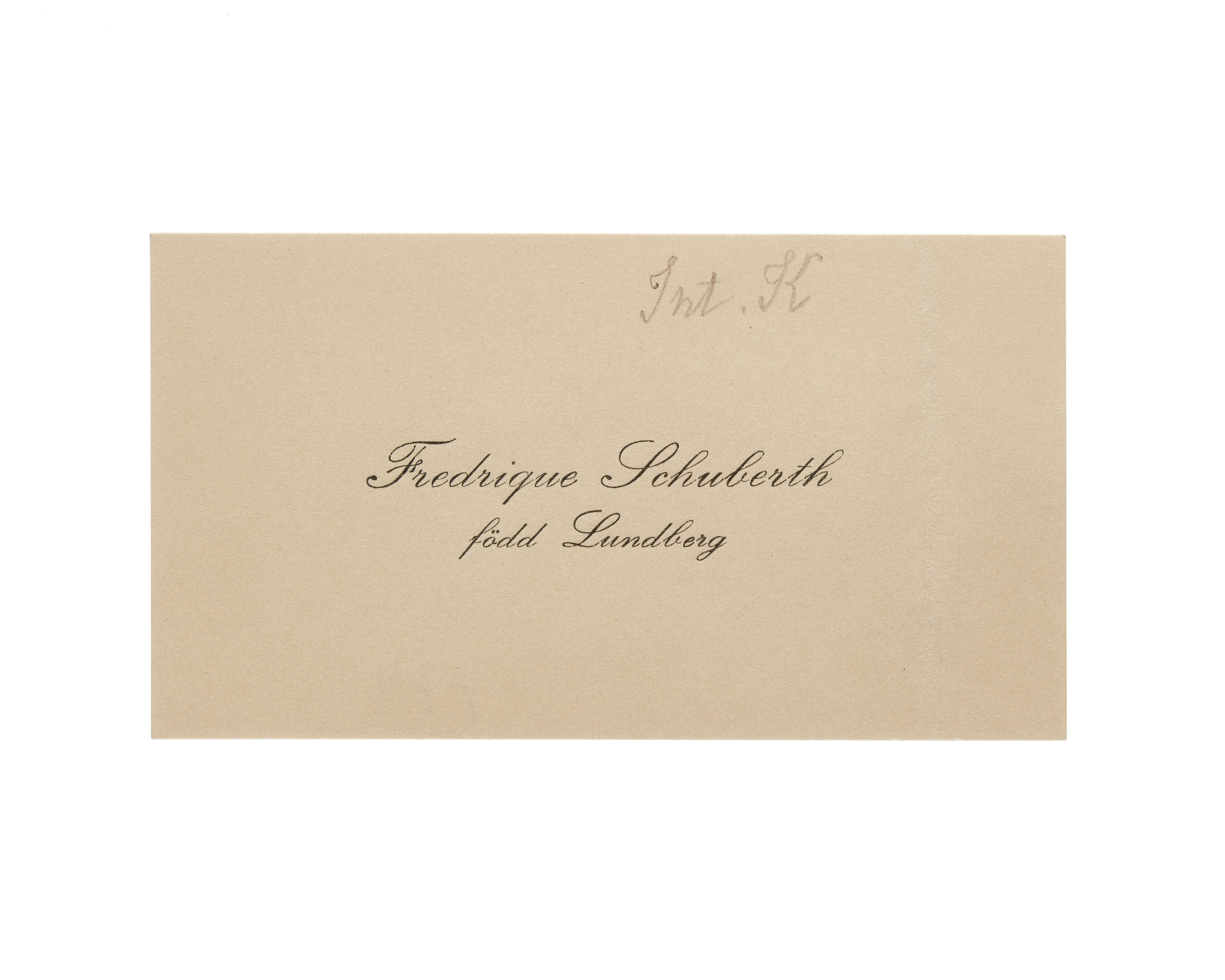 Visitkort från Fredrique Schuberth, f. Lundberg.