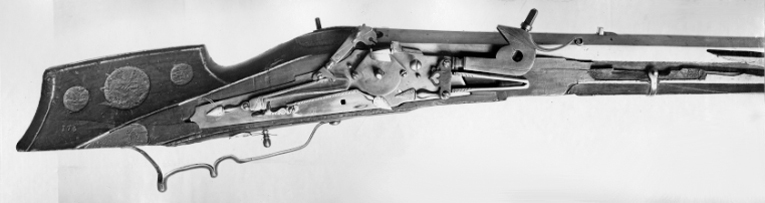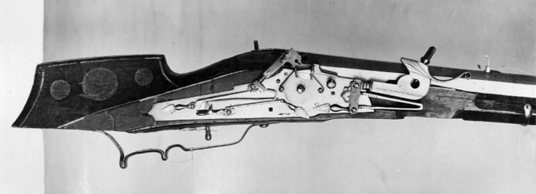 Luntlås-hjullåsmusköt, västeuropeisk typ, daterad 1600.