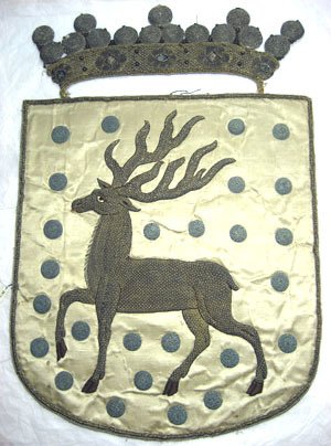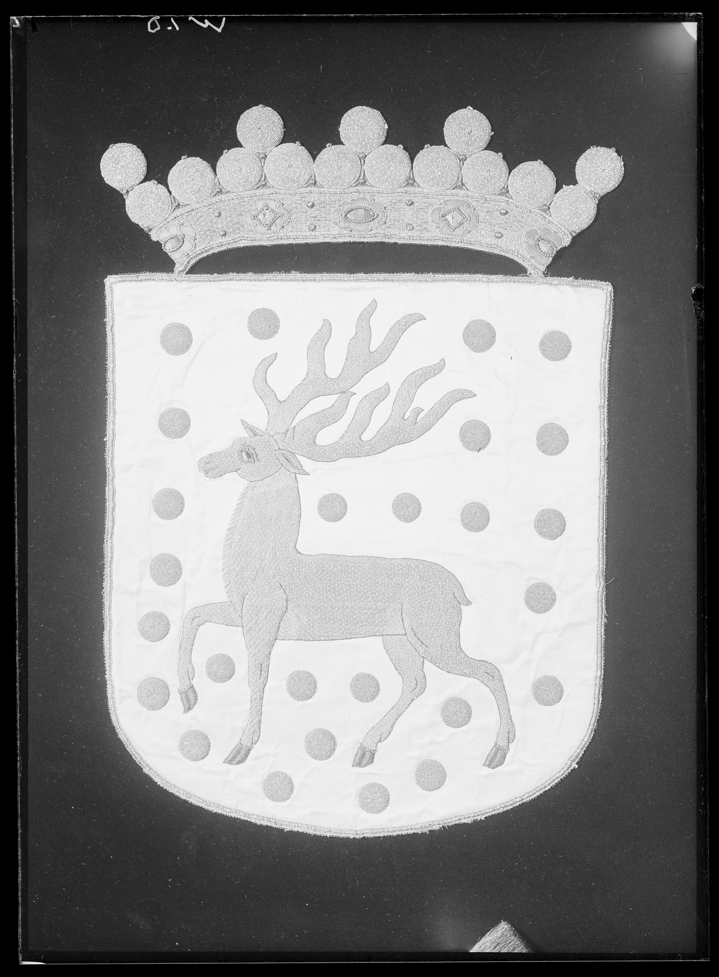 Gästriklands vapen, broderat för hästtäcke buret vid Karl X Gustavs begravning den 4 november 1660.