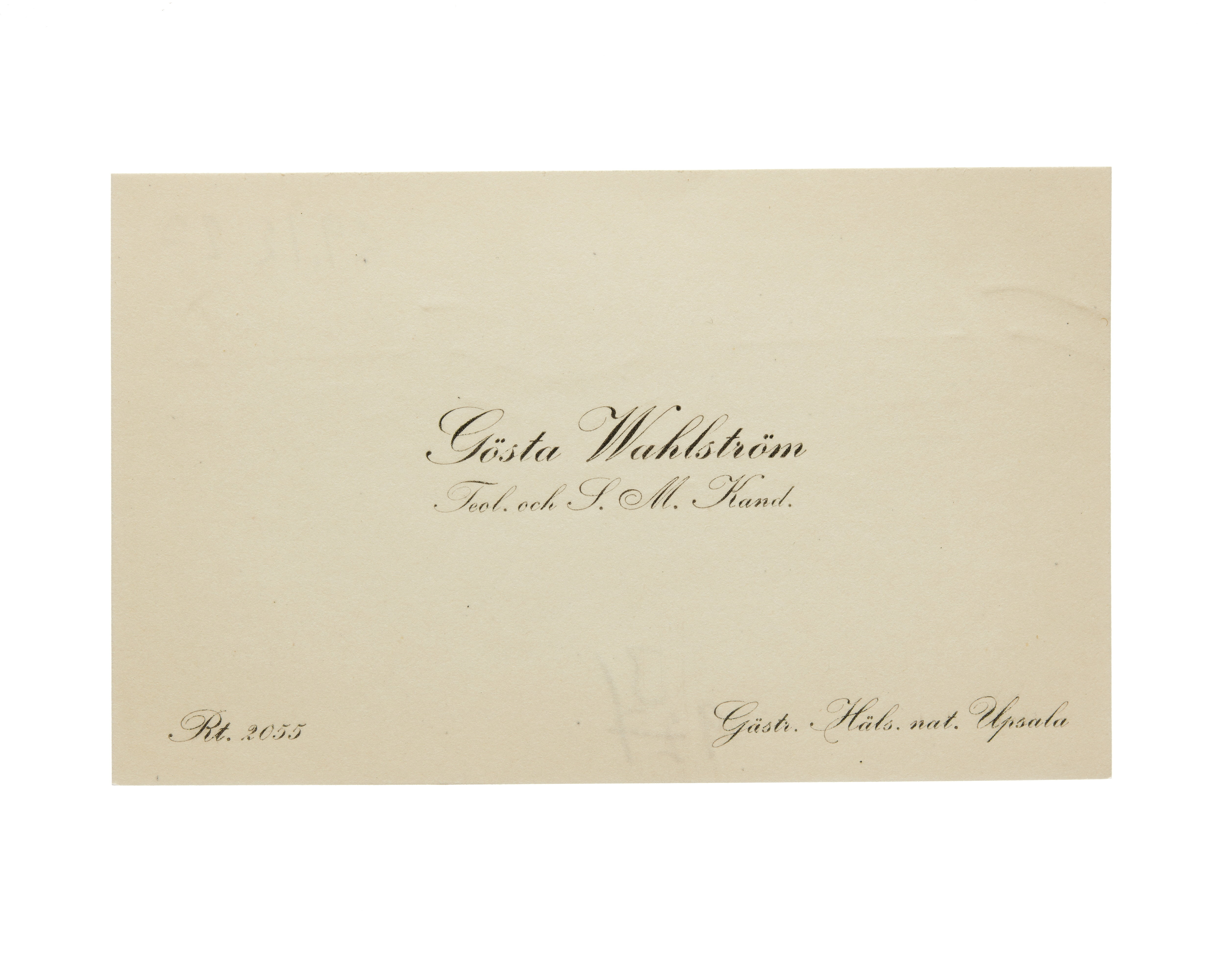 Visitkort från Gösta Wahlström, teol. och S. M. kand.