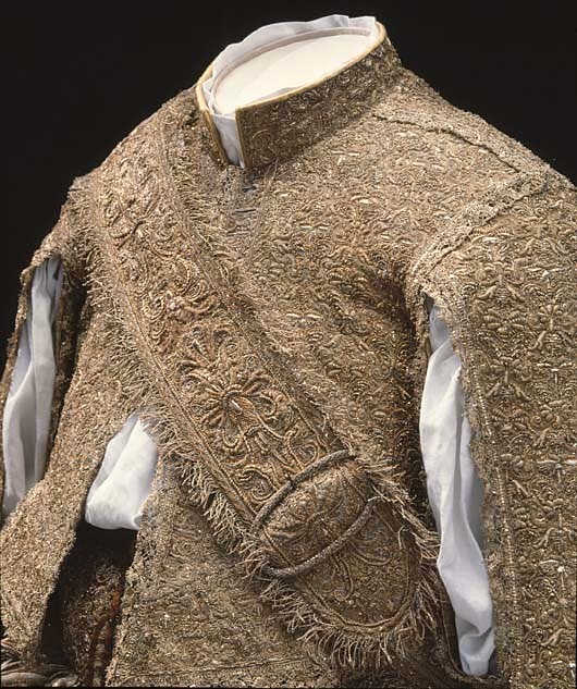Tröja av guldlamé helt täckt av guldbroderi, buren av Karl X Gustav (1622-1660) i samband med kröningen.