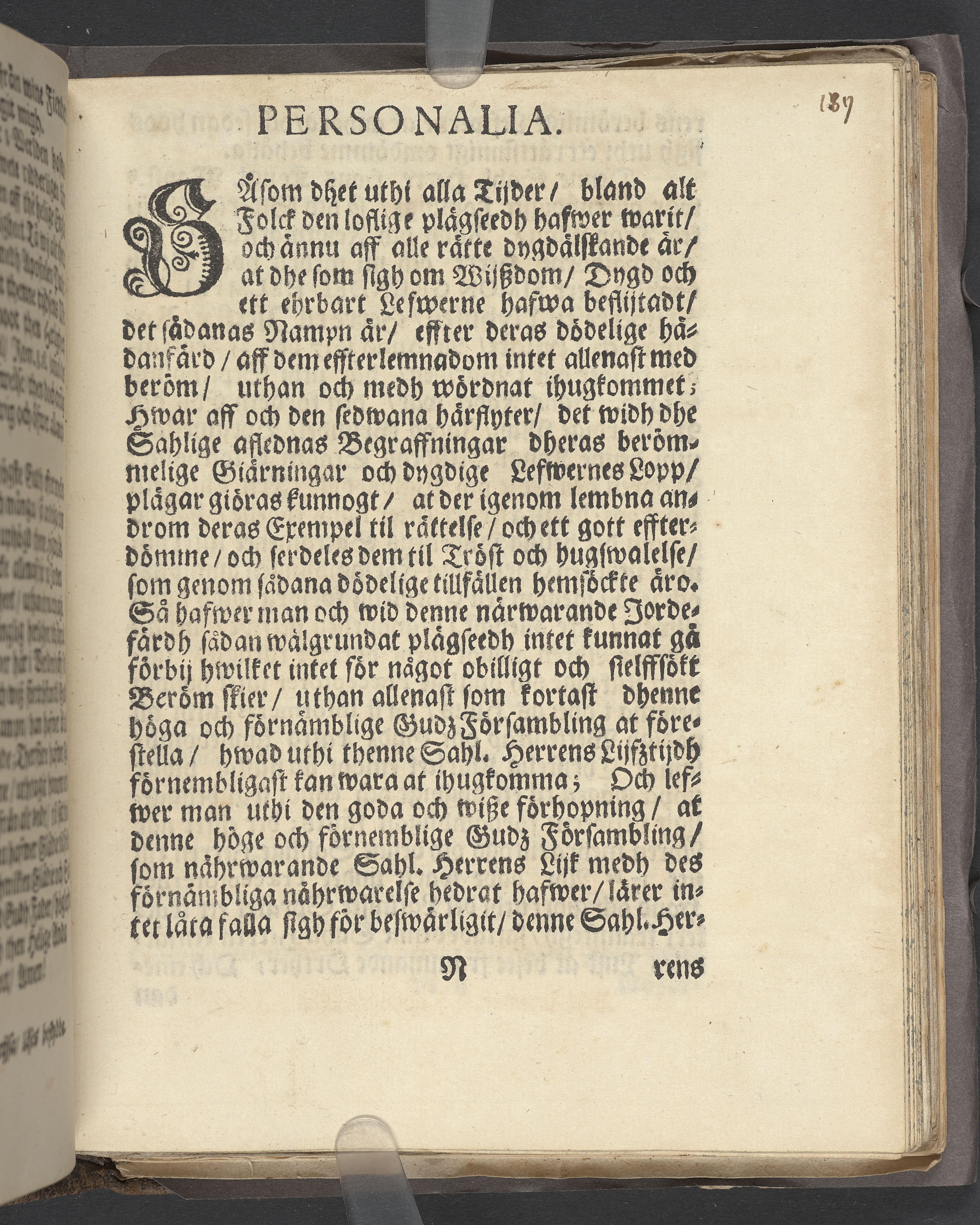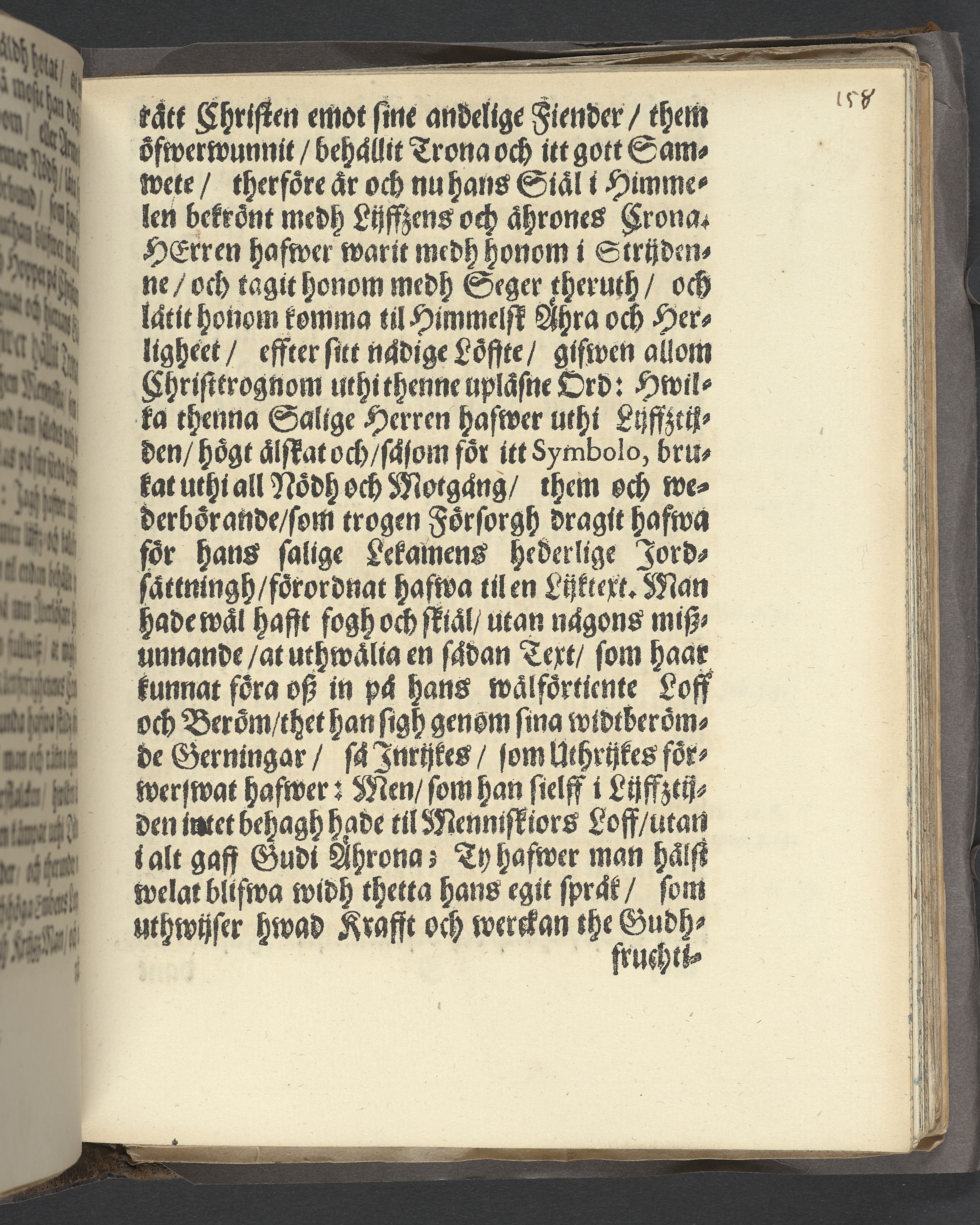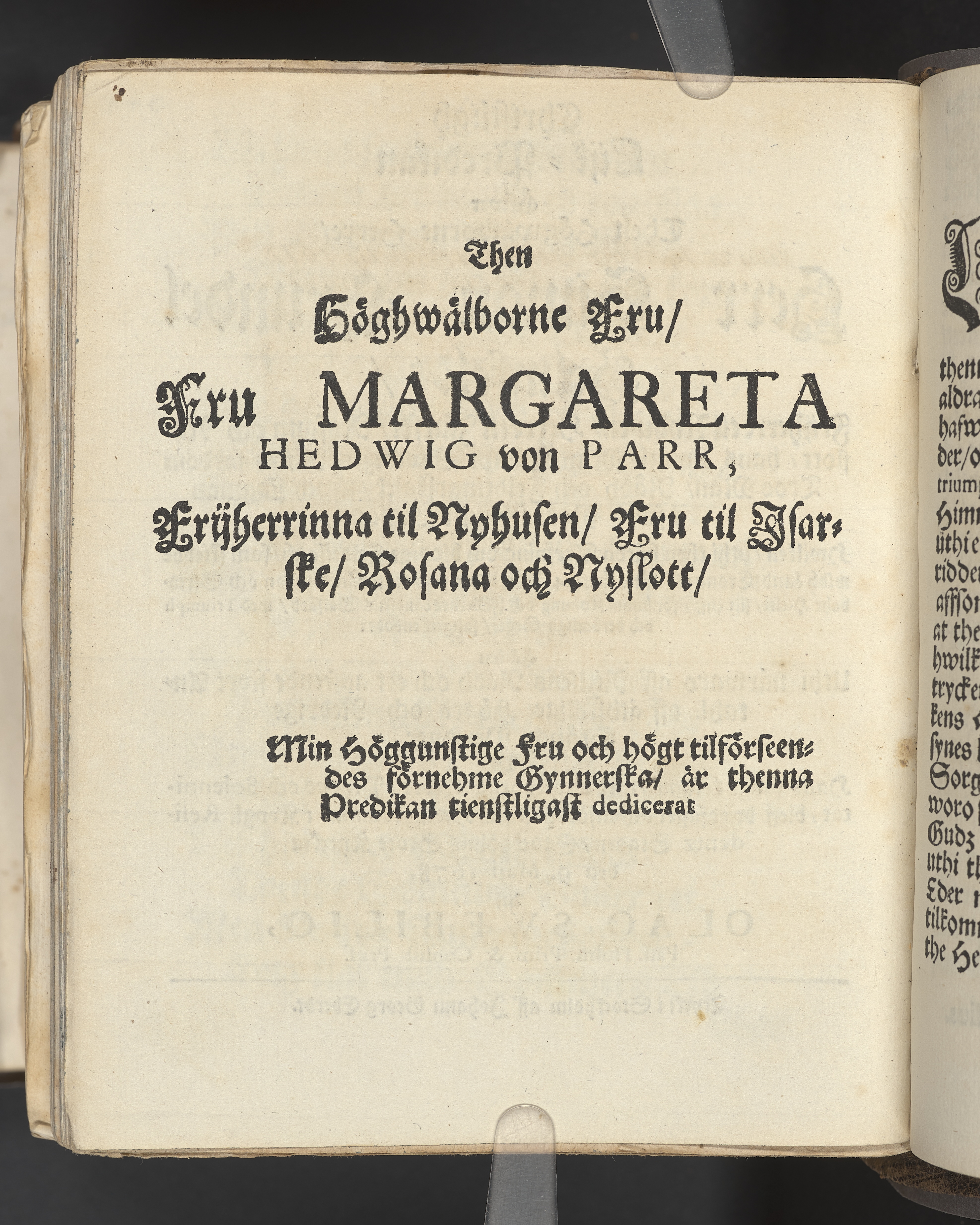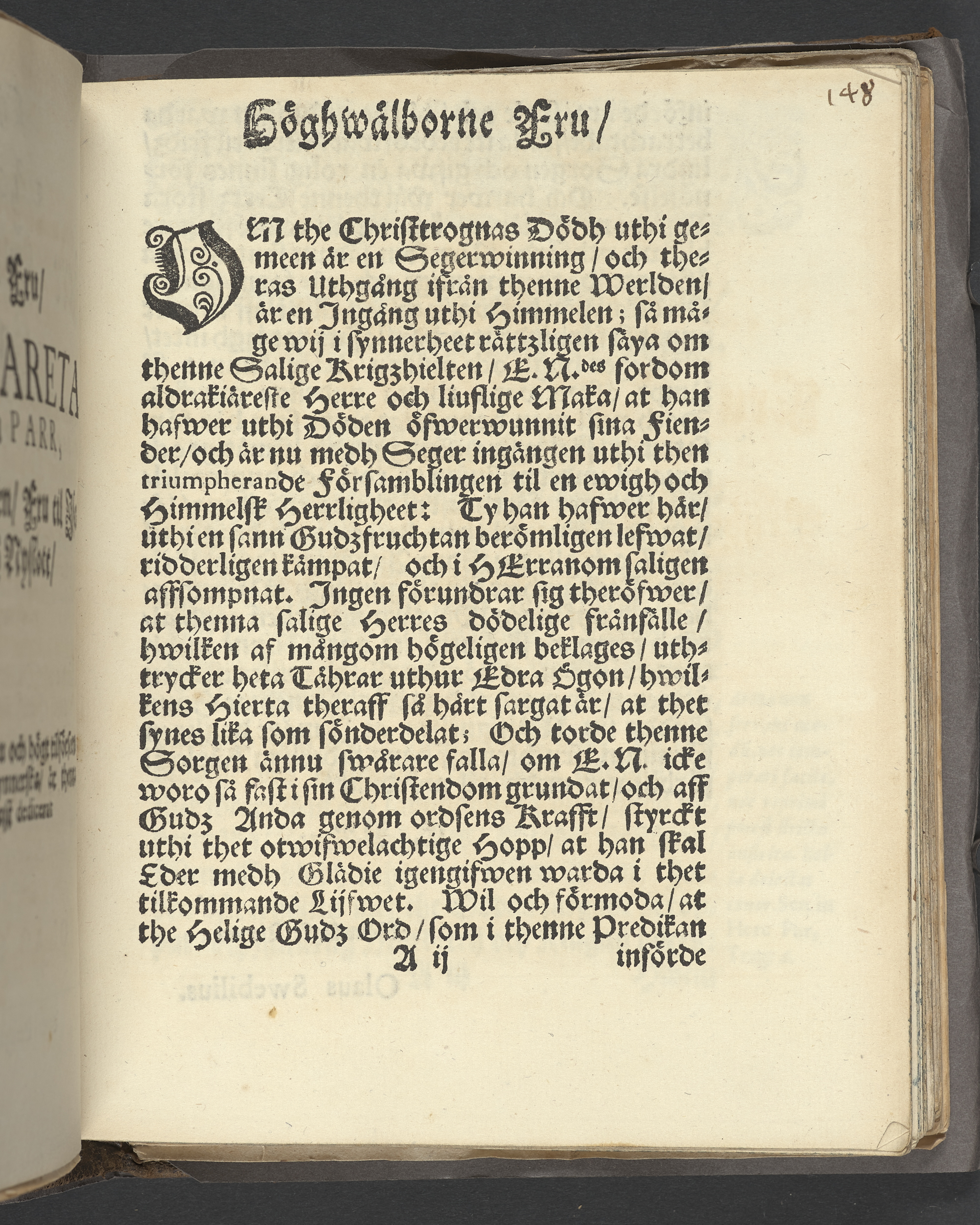 Christeligh lijk-predikan öfwer then högwälborne Herre, herr Simon Grundel Helmfeldt, frijherre til Nyhusen ... Swerikes rijkes ... rådh och feldtmarskalk, så och lagman öfwer Norre Finne lagsagu, hwilken, uthi then hårda trefning ... widh LandzCrona i Skåne then 14 Julij ... sitt ... lijff ... saligen endade: Hållen ... tå hans salige lekamen ... bleff ... infördh til sin hwijlokammar i kongl. residentz staden, Stockholms store kyrckia den 9. Maji 1678. Aff Olao Swebilio, past. Holm. prim. & consist. praes. Tryckt i Stockholm aff Johann Georg Eberdt.