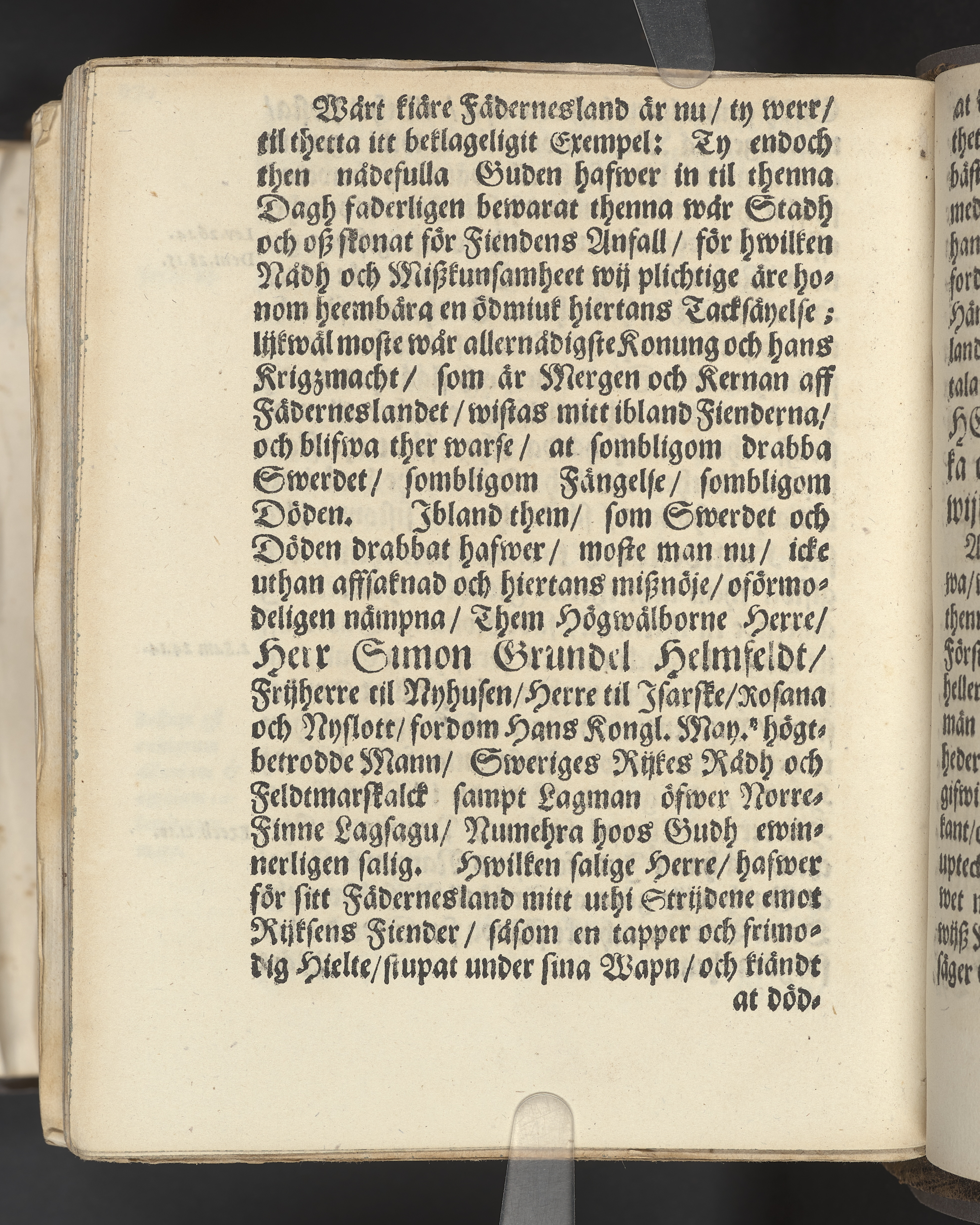 Begravningen av Simon Grundel-Helmfelt (Omnämnd på/i)