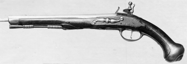 Flintlåspistol m: 1717 för Livskvadronen, Sverige (avkortad), tillverkad i Örebro,