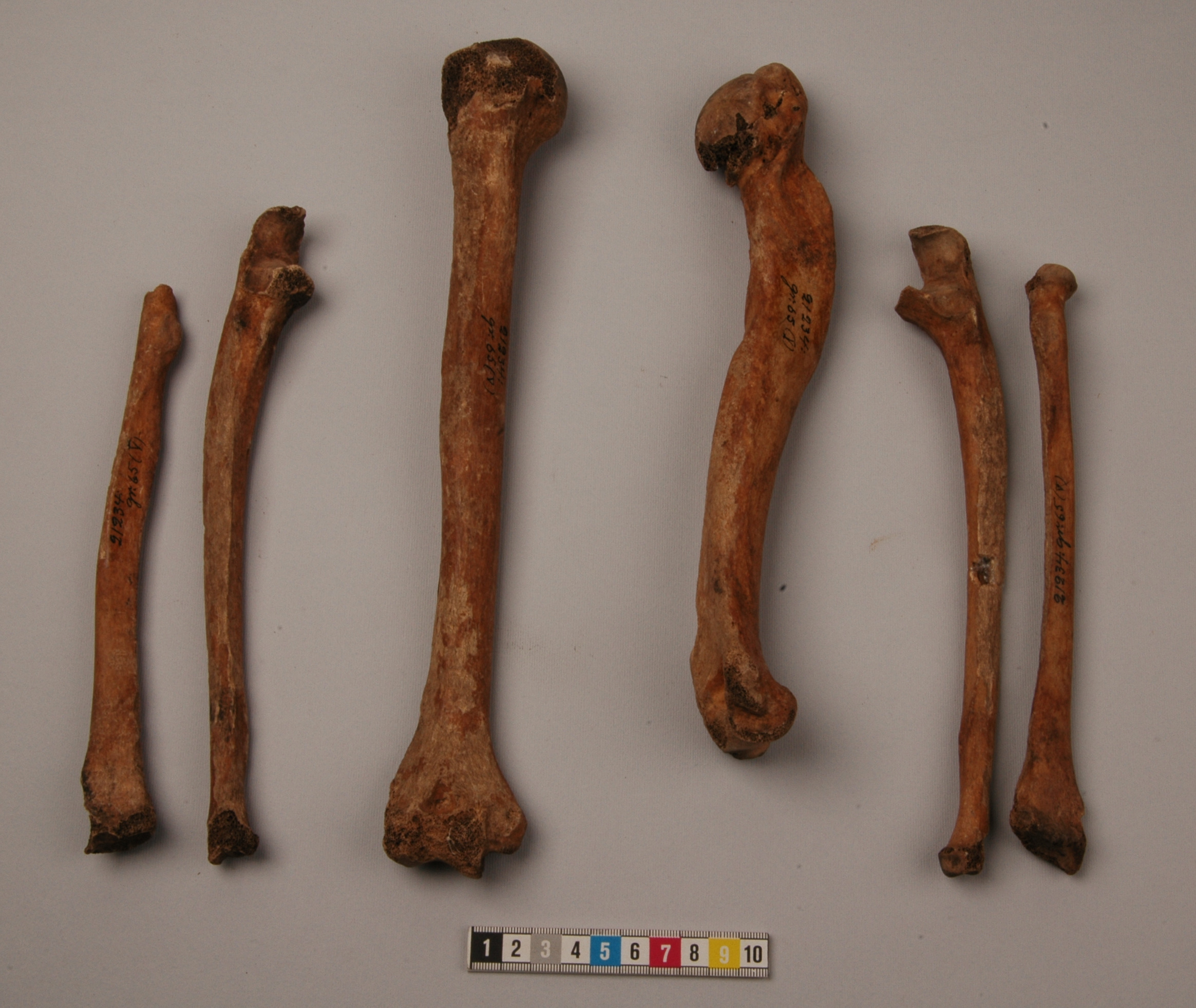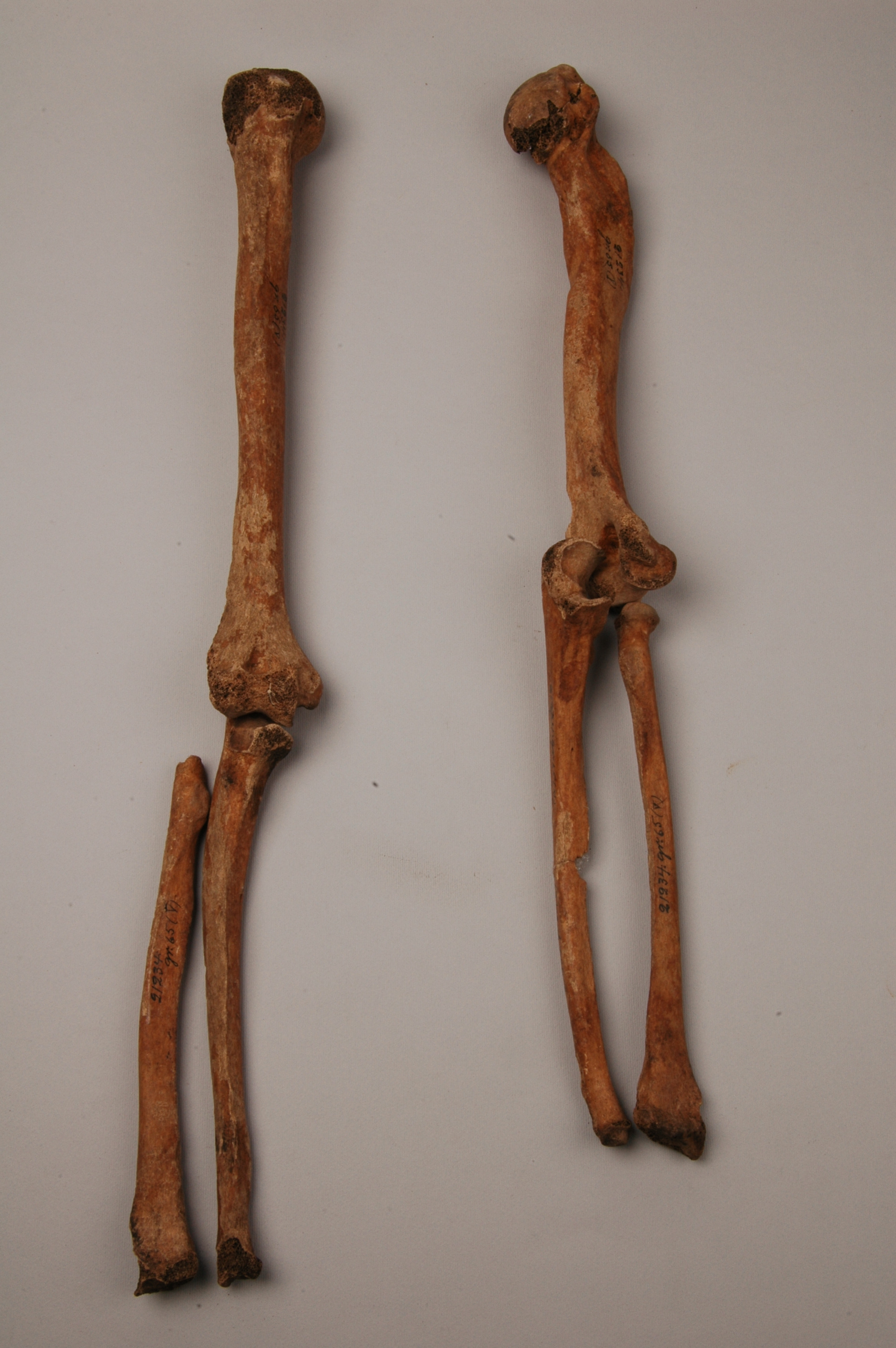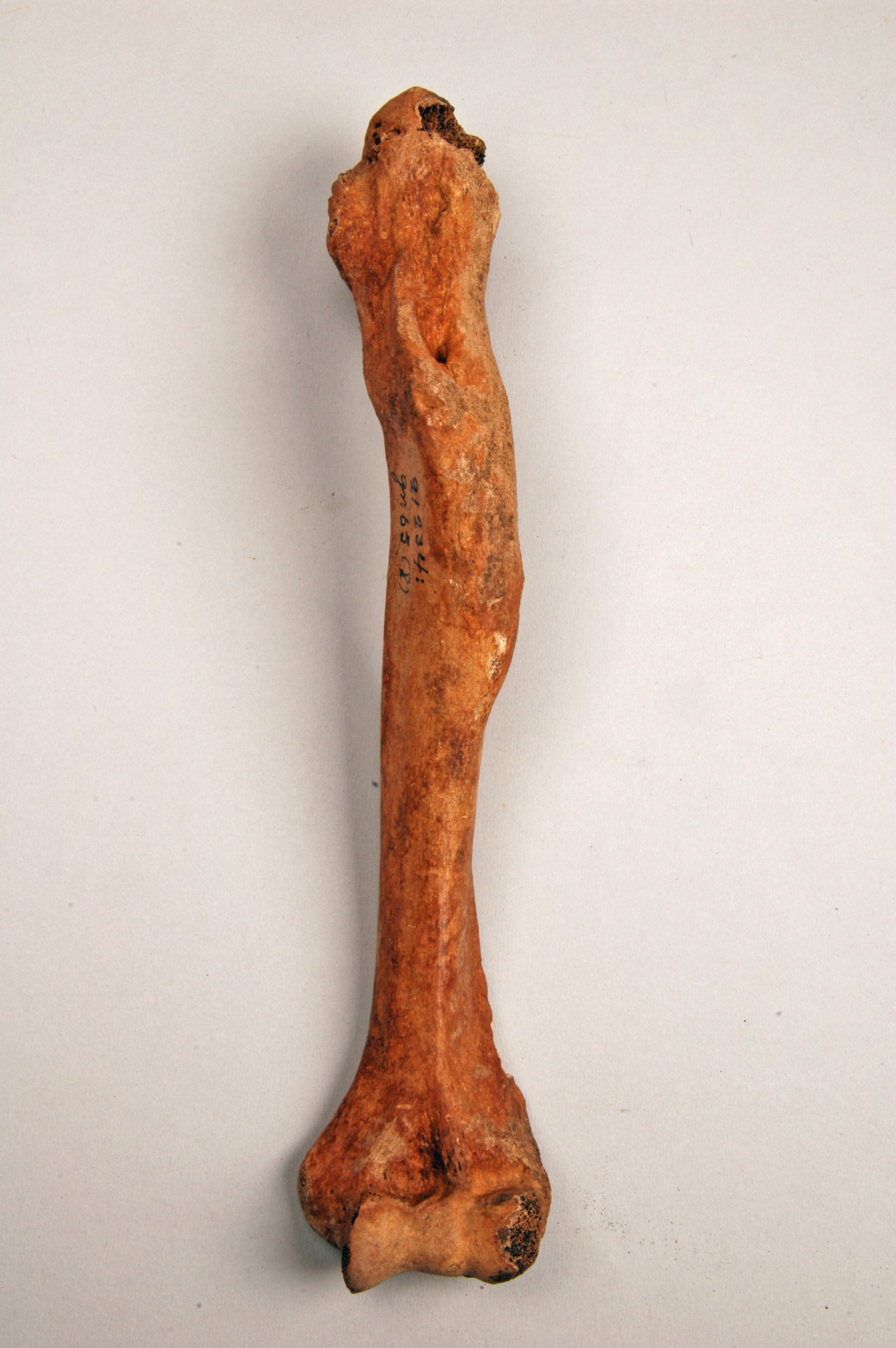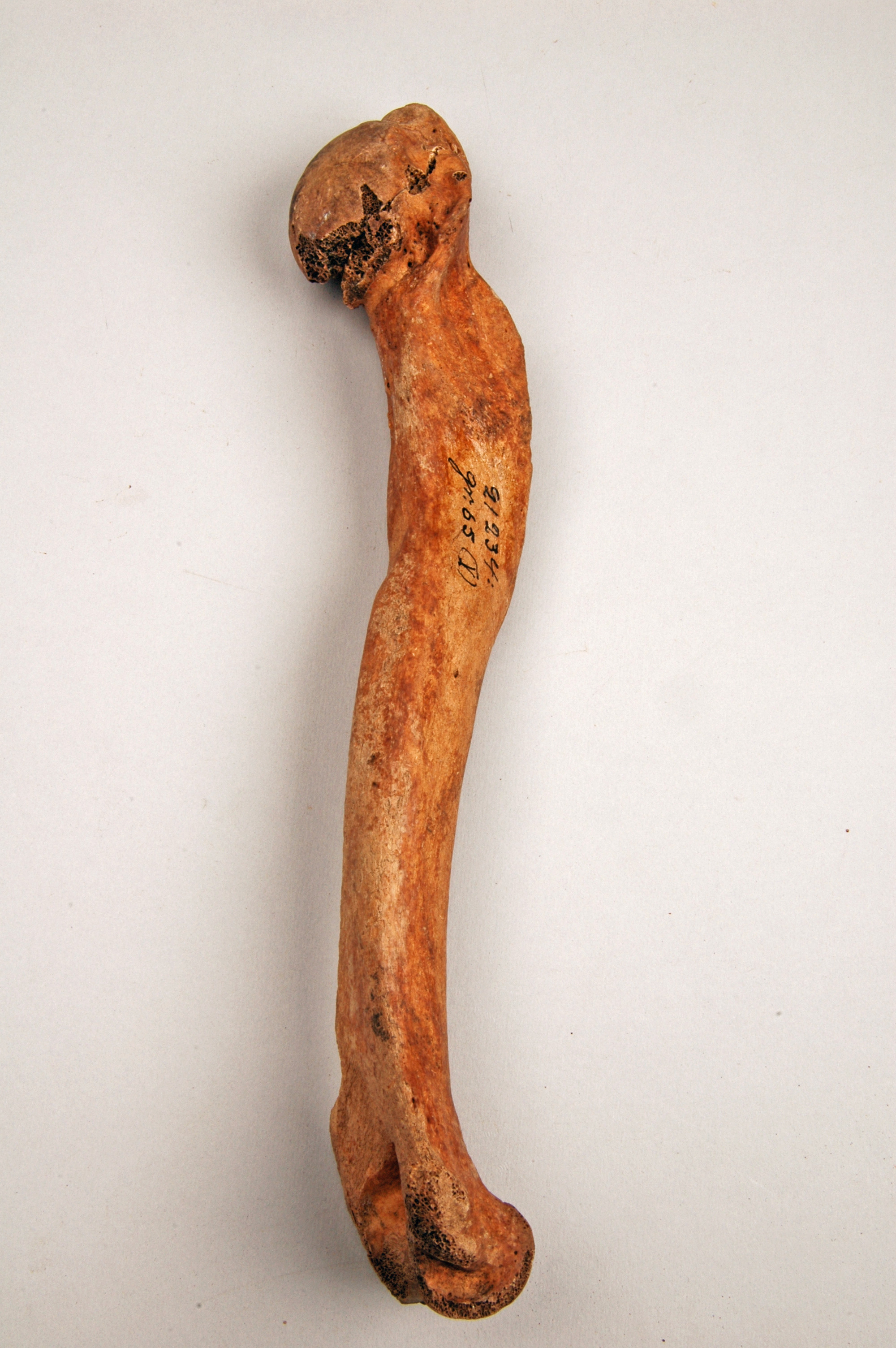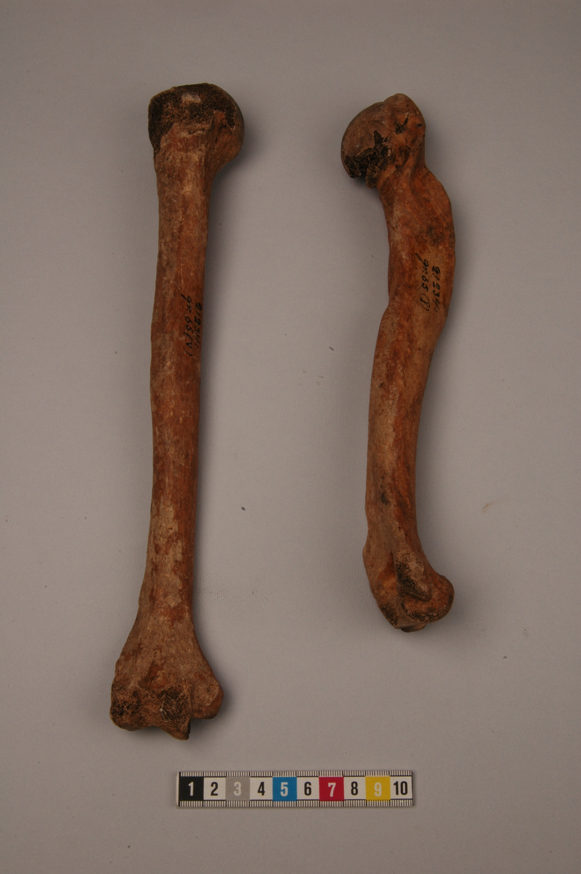 Vuxen man. Vänster överarmsben med läkt fraktur på övre delen av diafysen.
