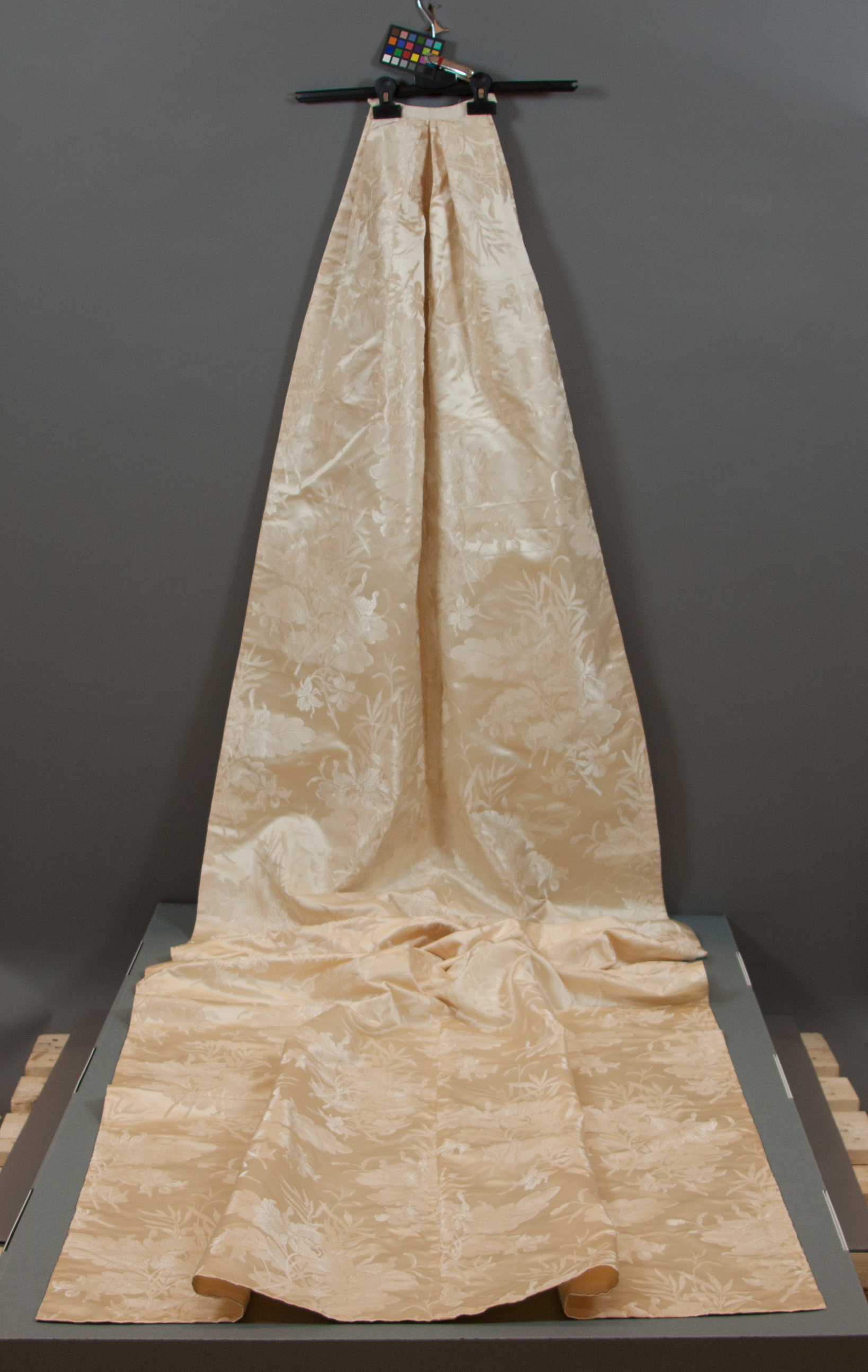 Släp i gräddvitt blommigt siden (?) till hovklänning