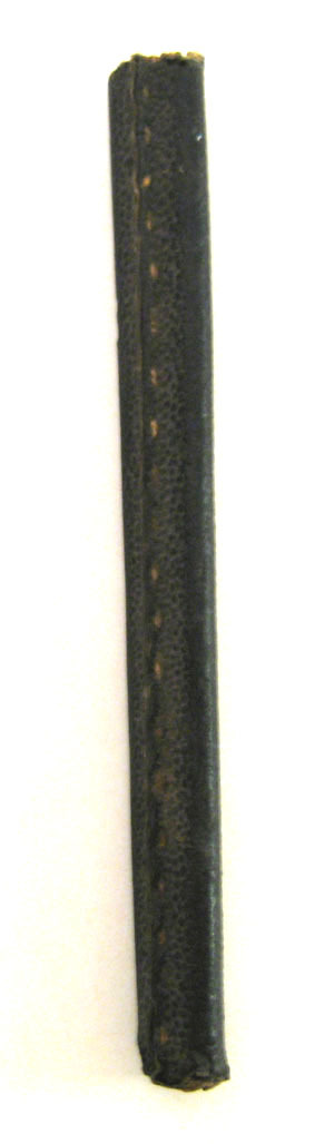 Stomme av trä överdragen med svart skinn. Långsmal med triangulärt tvärsnitt.