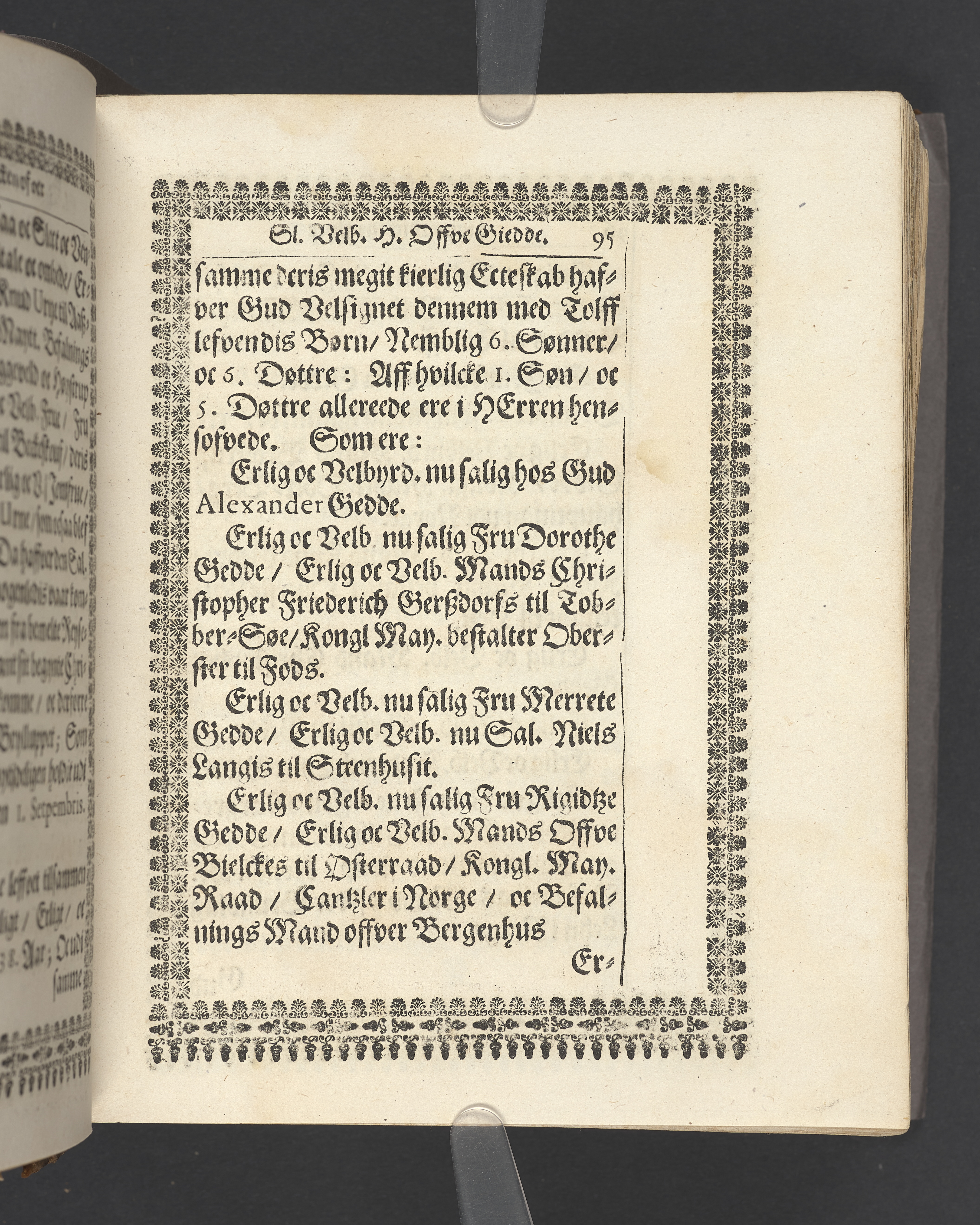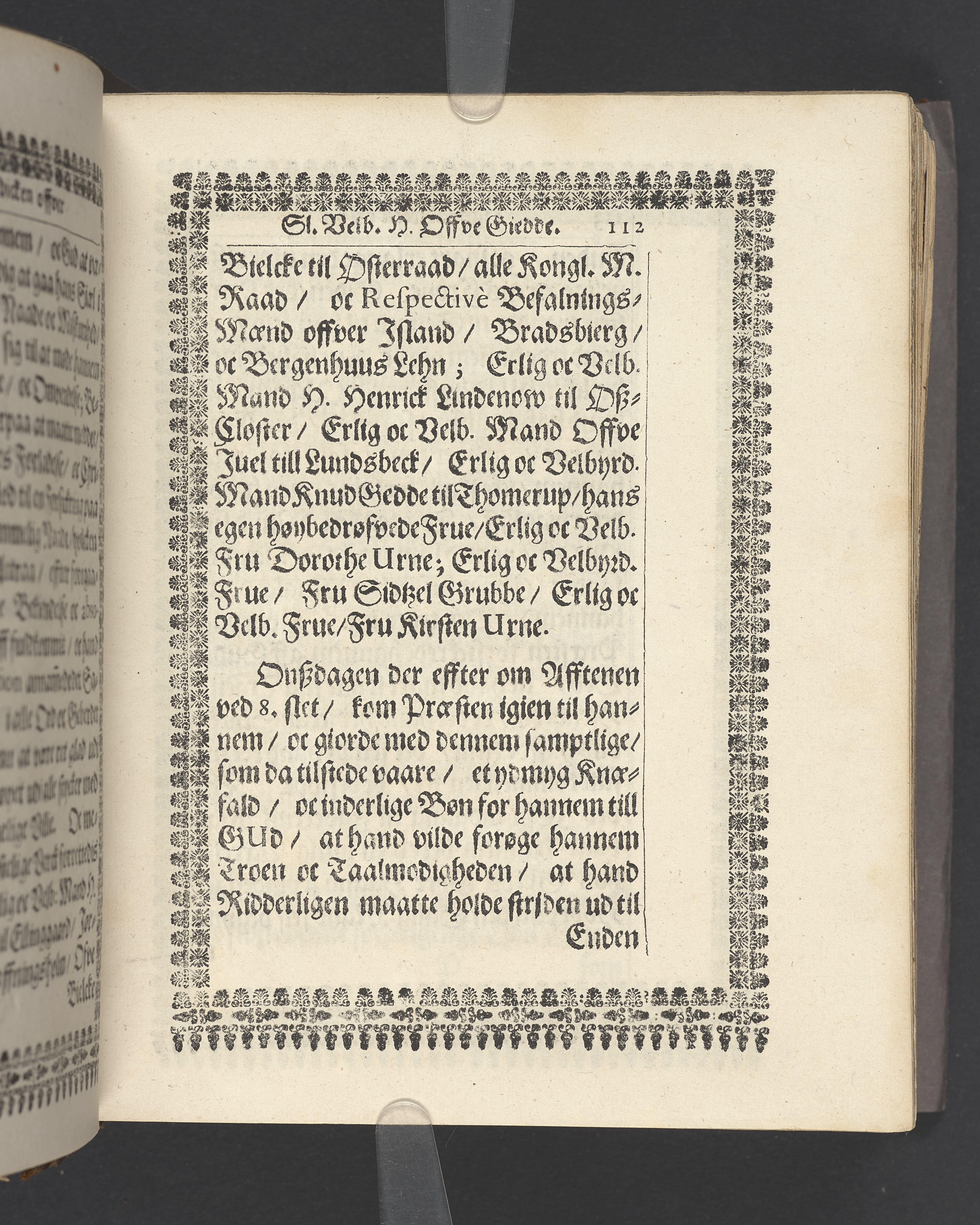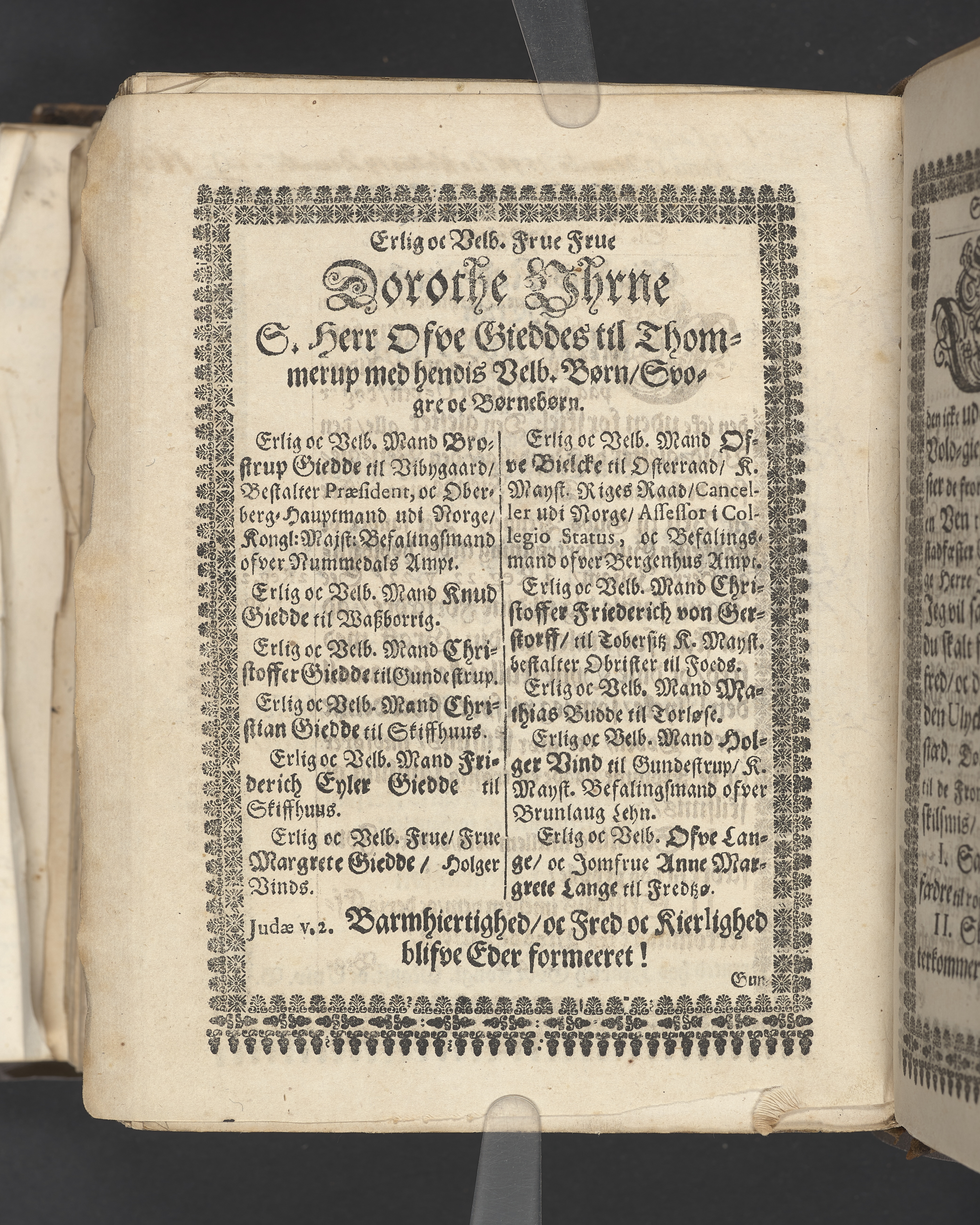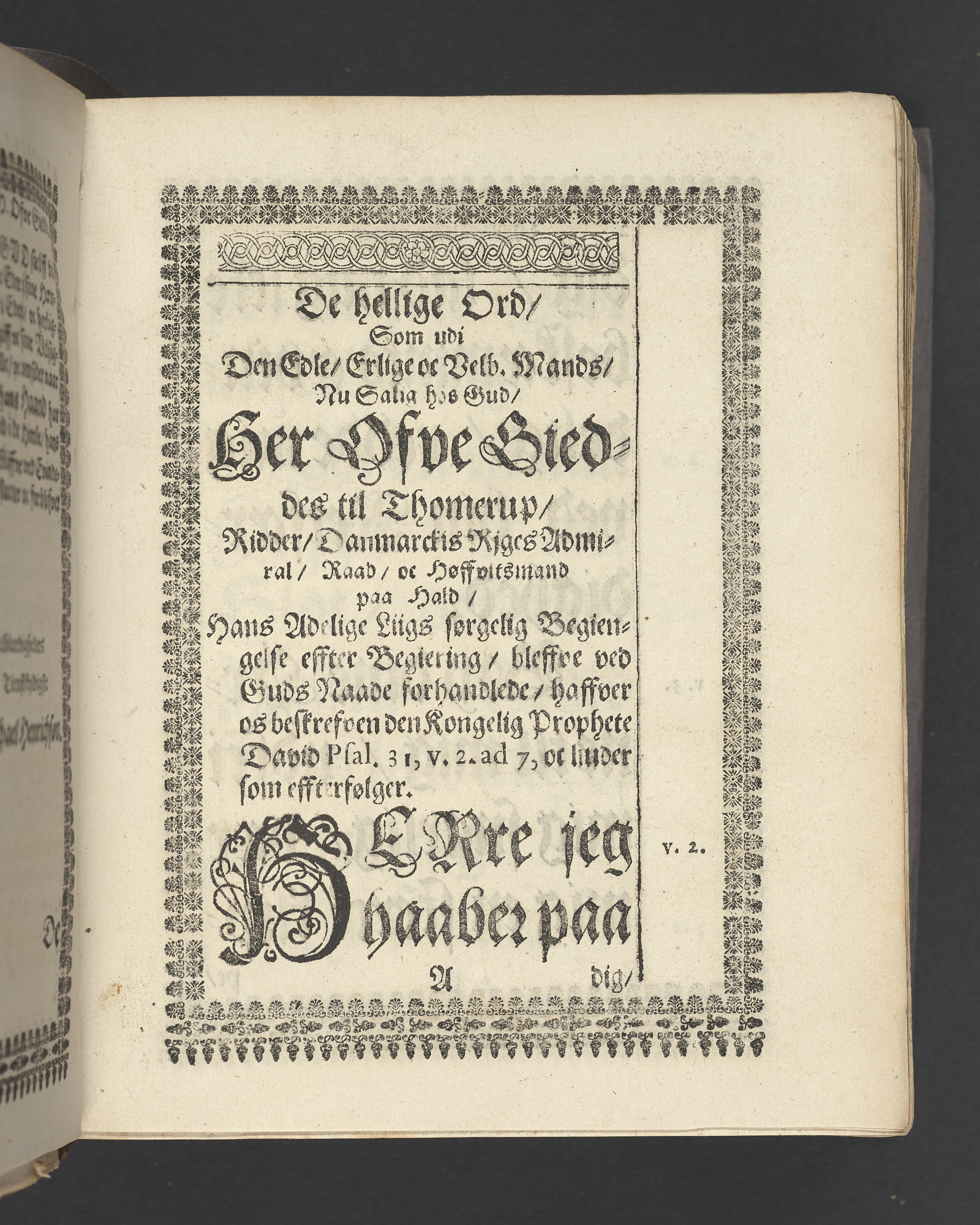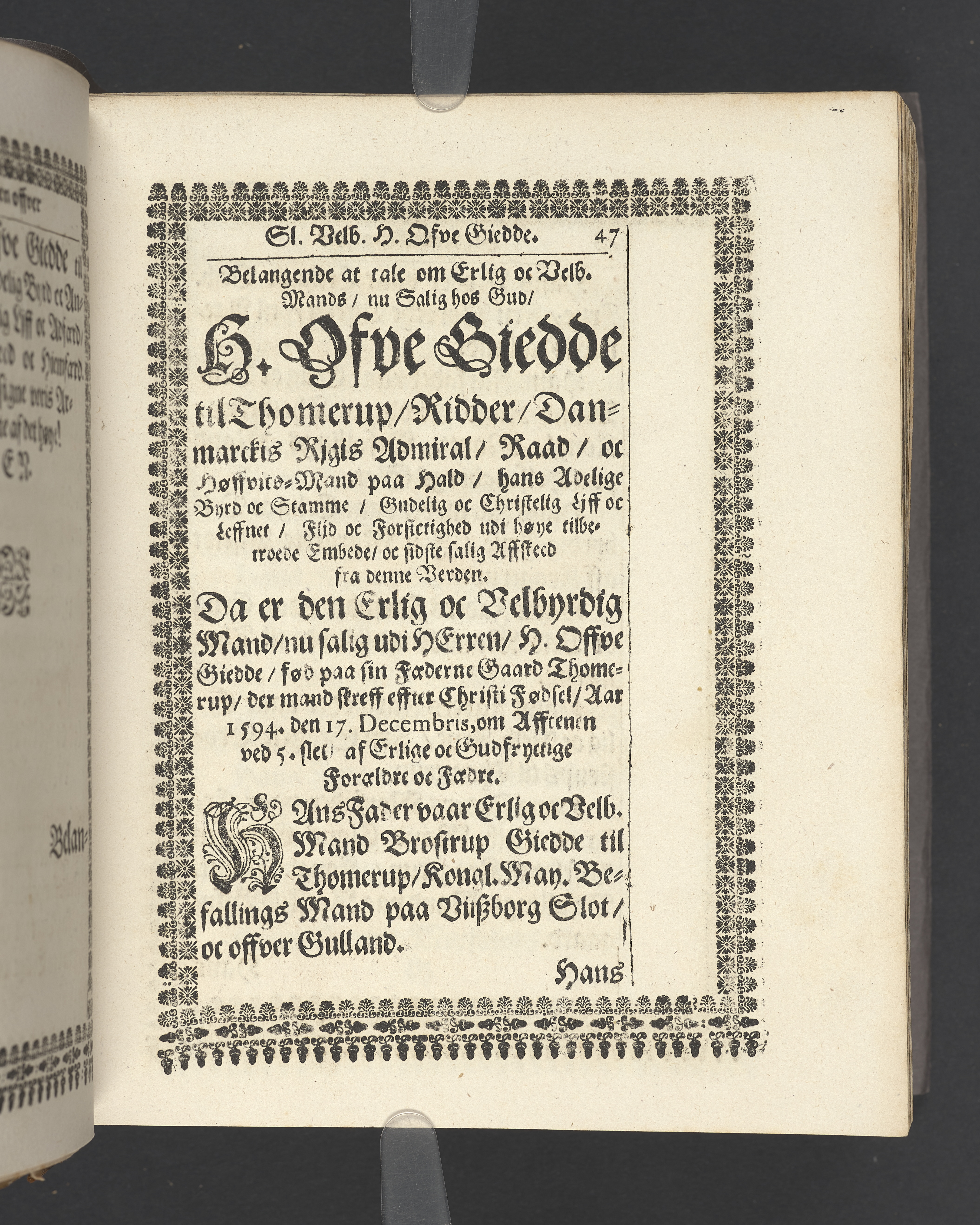 Haabet Siælens Nød-Anckere, Herren Siælens Nød-Hafn ... som udi ... Herr Ofve Gieddes til Thommerup, ridder, Danmarckes Rigis Admiral ... hans adelige Liigs sørgelig Begiengelse, blefve den 5 Februar 1661. udi S. kircke i Kiøbenhafn ... fremsatte oc forhandlede aff Michael Henrichsøn ... Kiøbenhafn, prented hos Henrich Göde ...